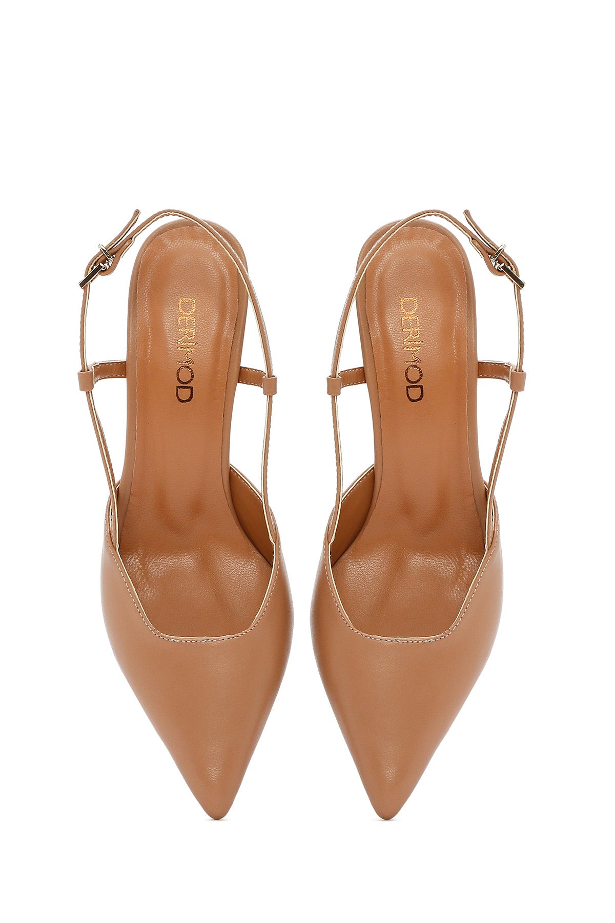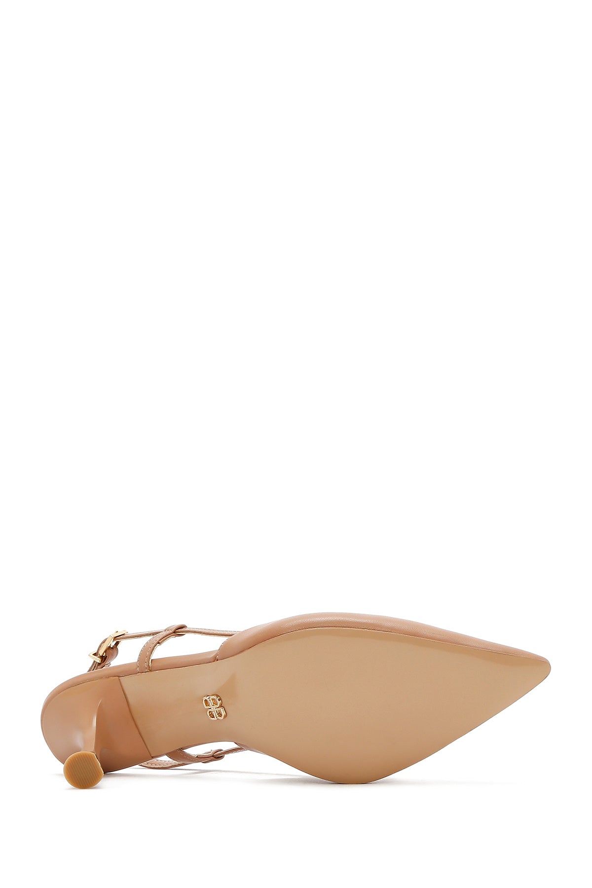Kadın Pembe Arkası Açık Topuklu Deri Ayakkabı