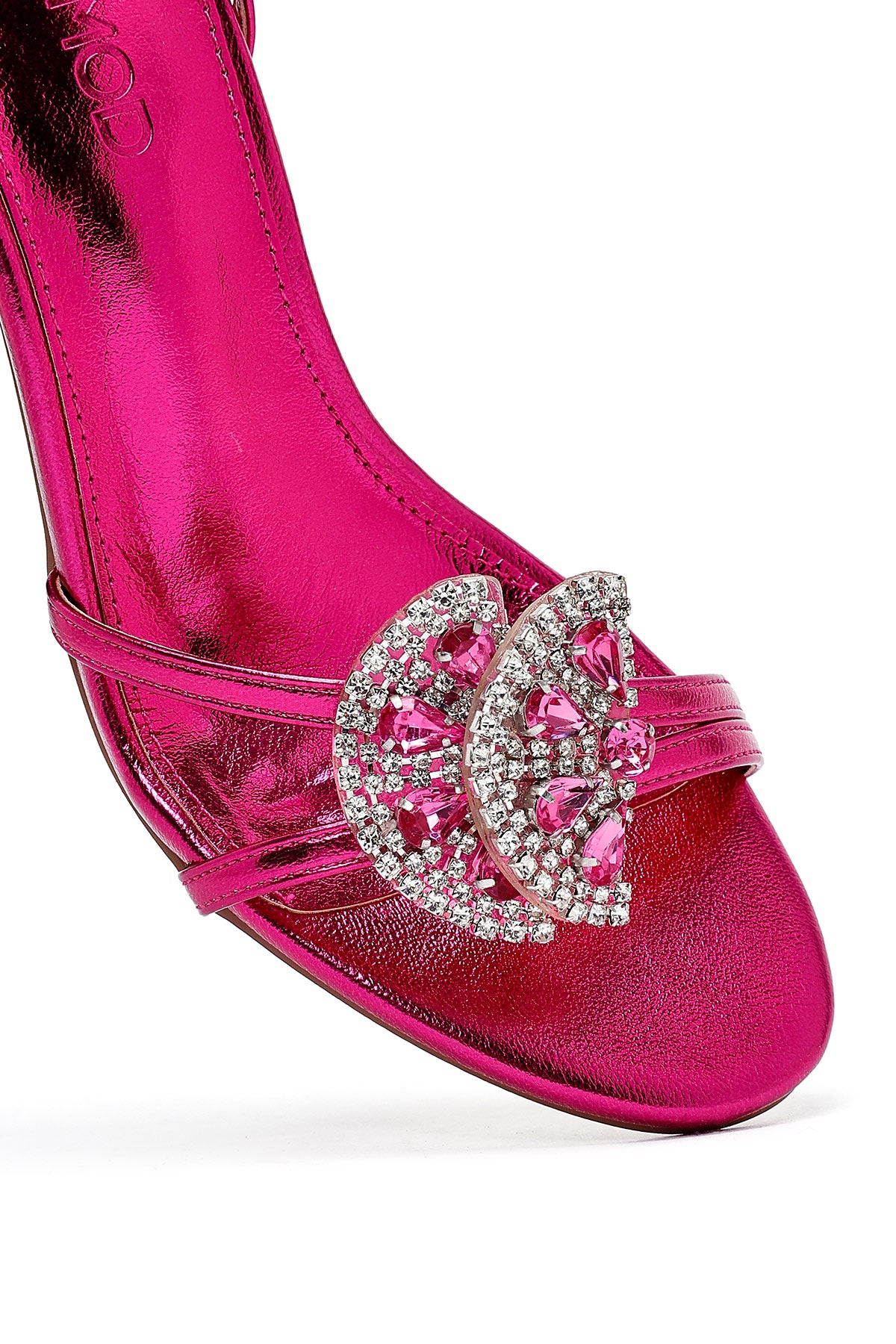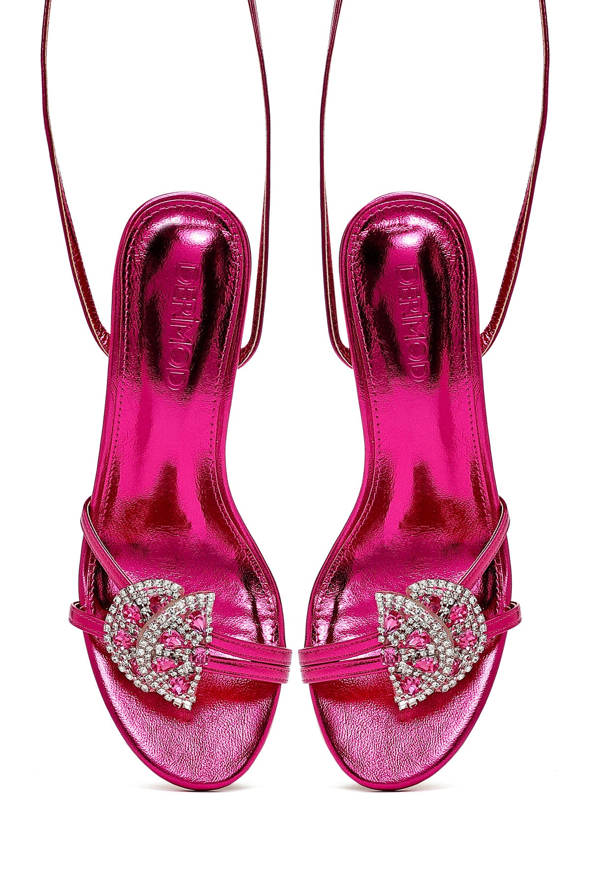 Derimod's elegance and style together Woman Show off your style with these Pink Ankle Buckle, Stoned, Thin Heeled Sandals. Product code: 25SFE481932 N2