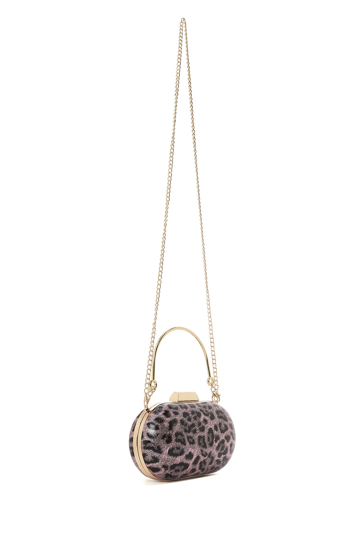 Women's Pink Leopard Pattern Long Strap Mini Clutch Evening Bag
