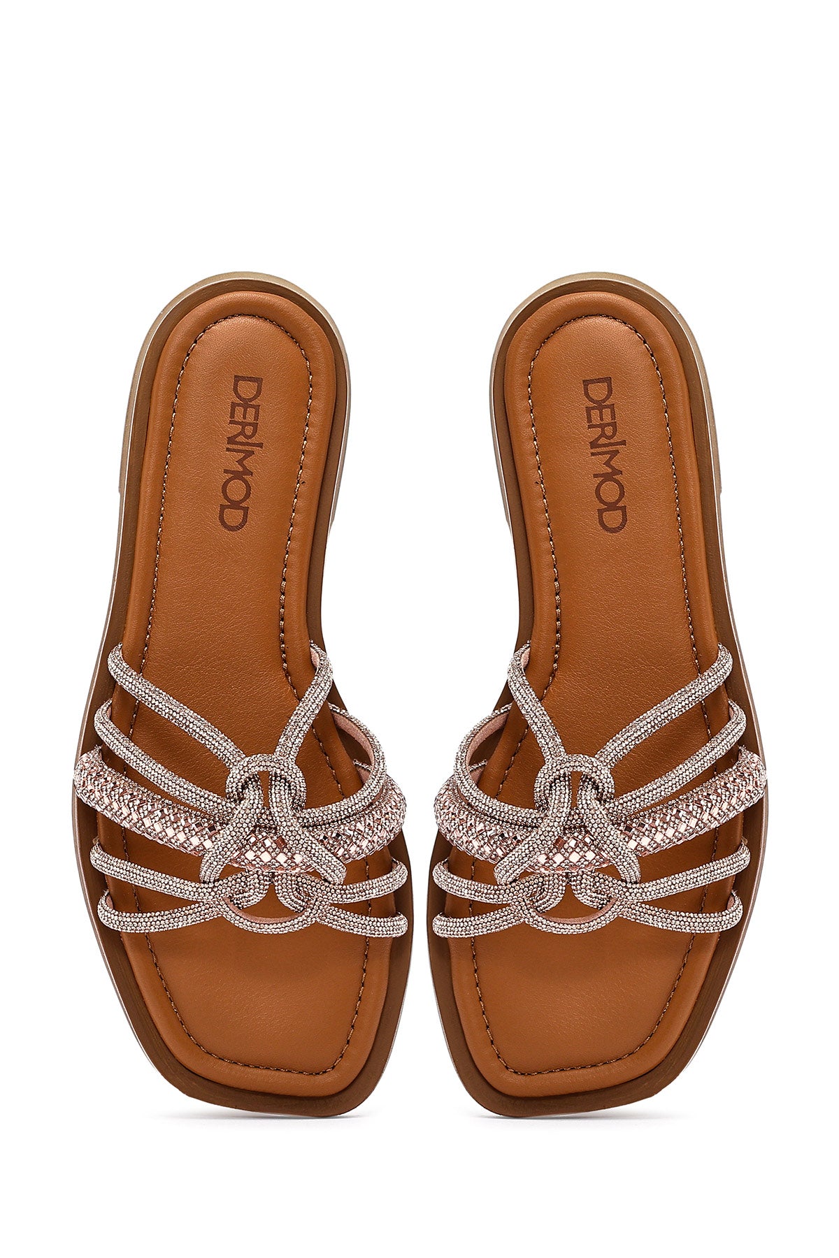 Derimod's elegance and style together Woman Pink Stone Leather Show off your style with slippers. Product code: 25SFD1829TS ZD