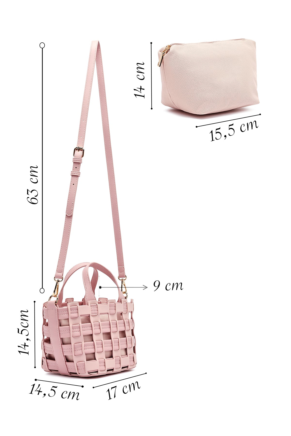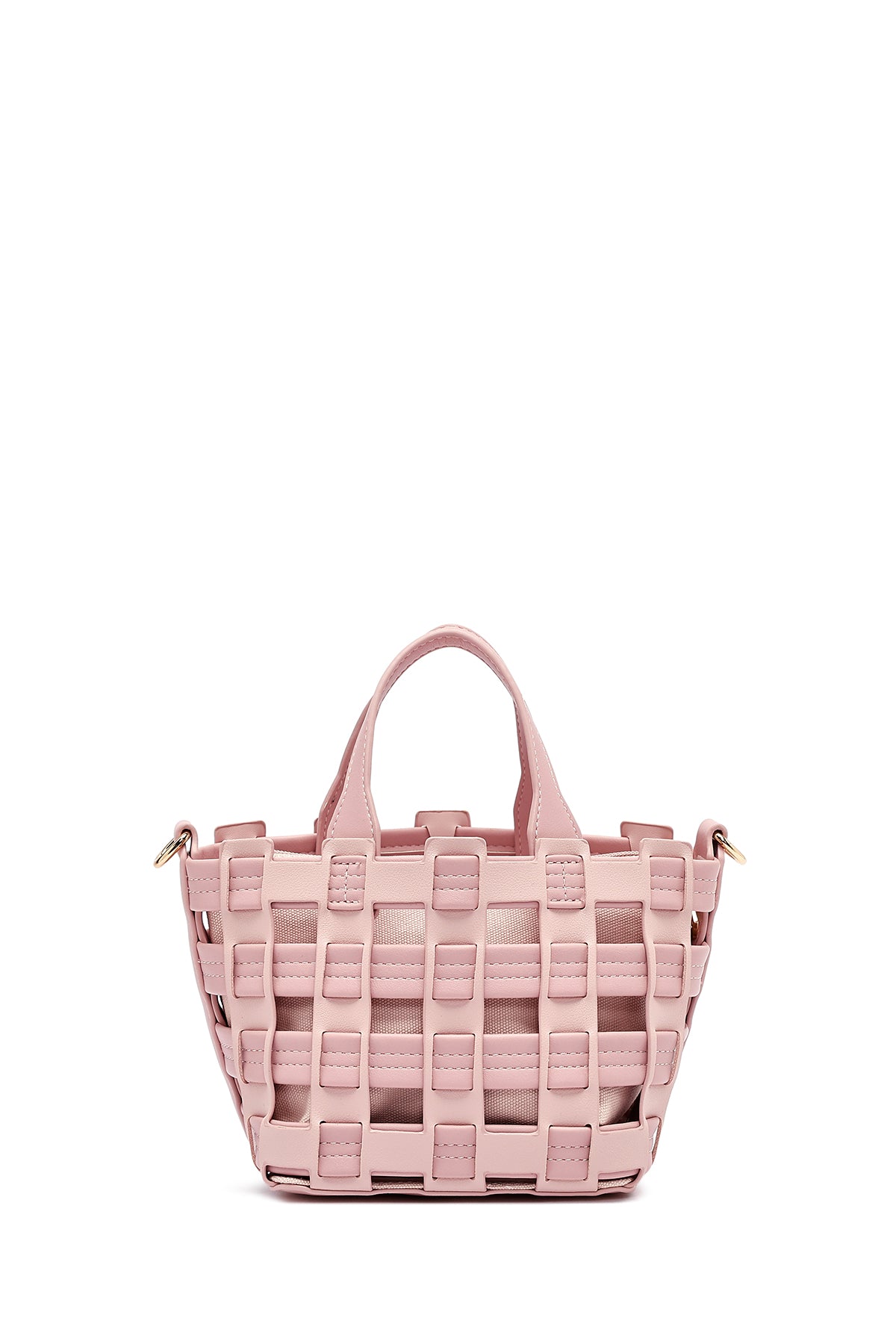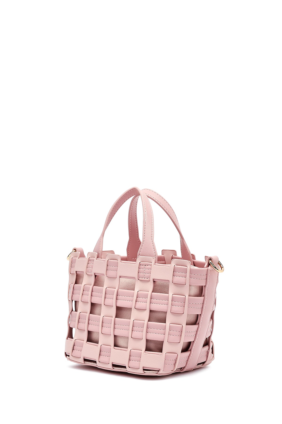 Woman Pink Long Strap Knitted Shoulder Bag