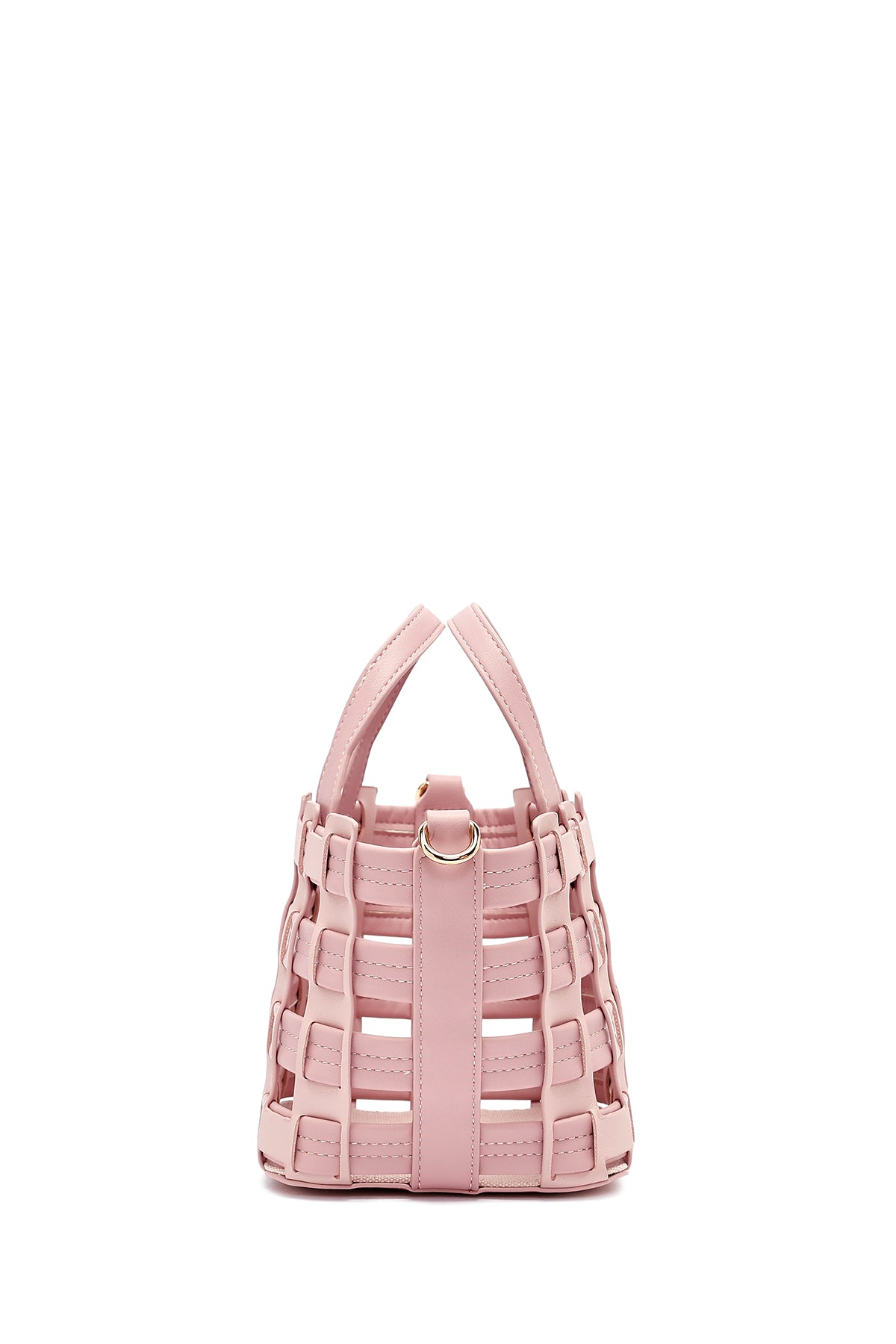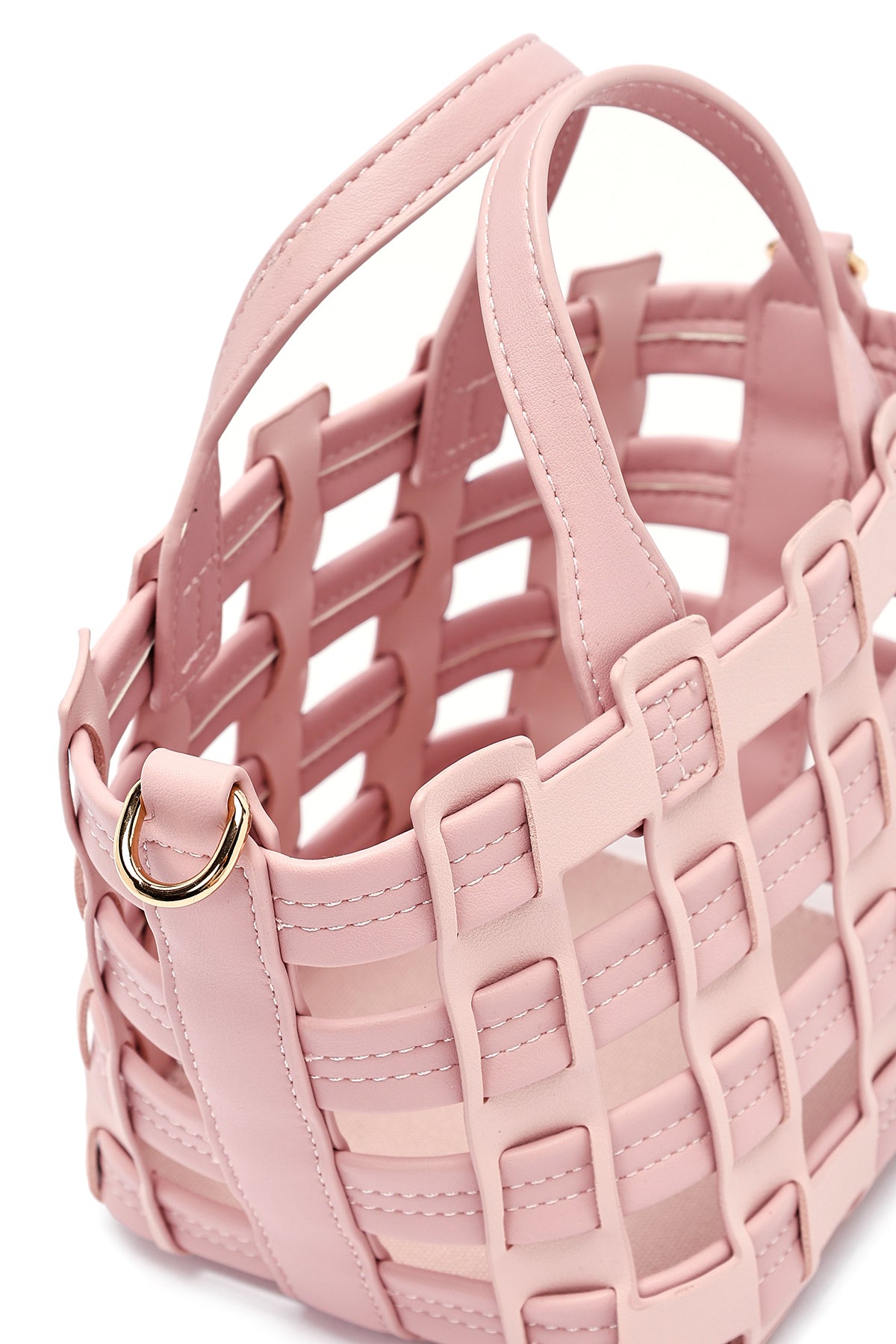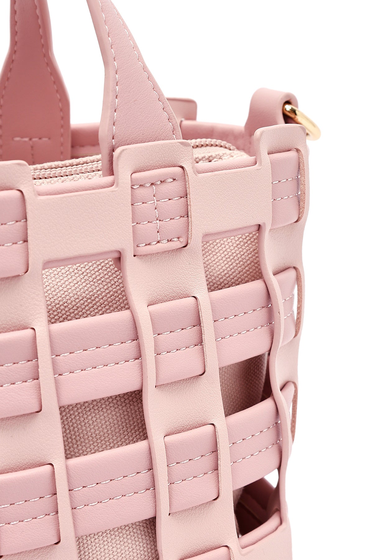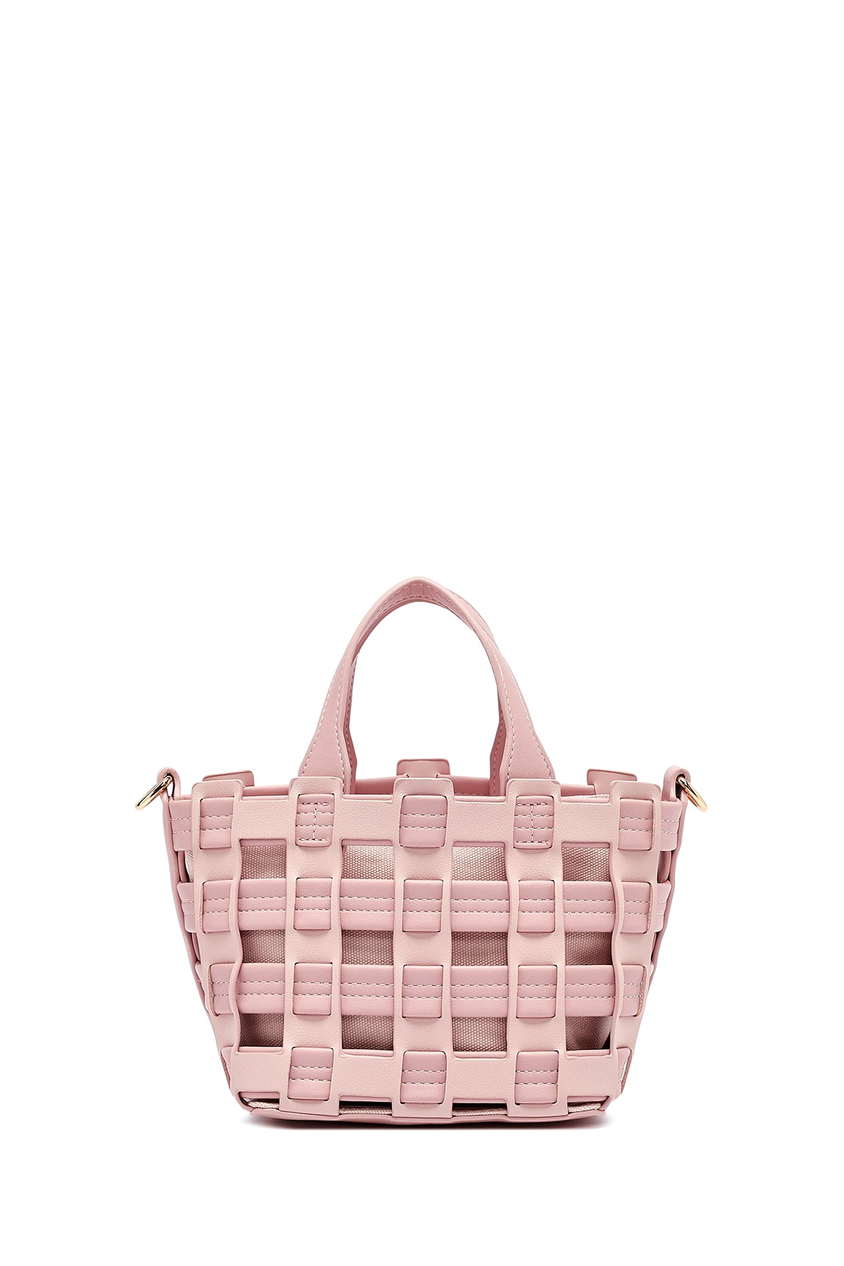 Woman Pink Long Strap Knitted Shoulder Bag