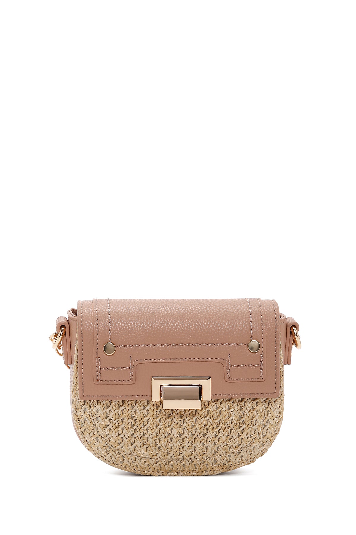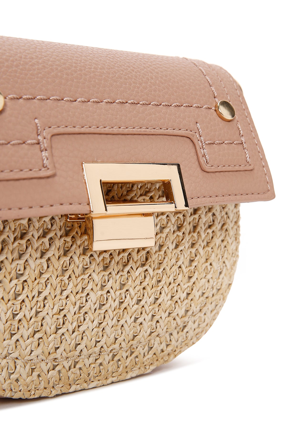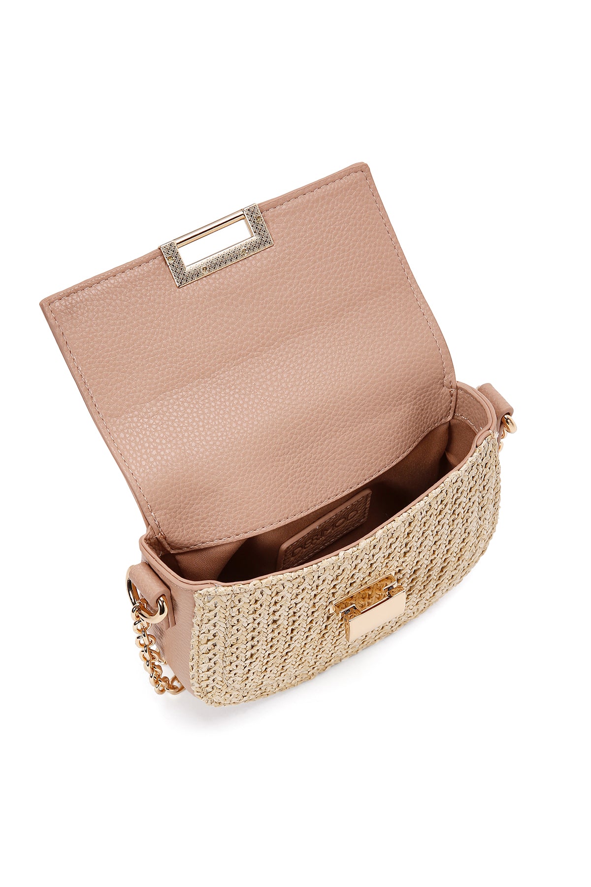 Women's Pink Long Chain Strap Straw Crossbody Bag