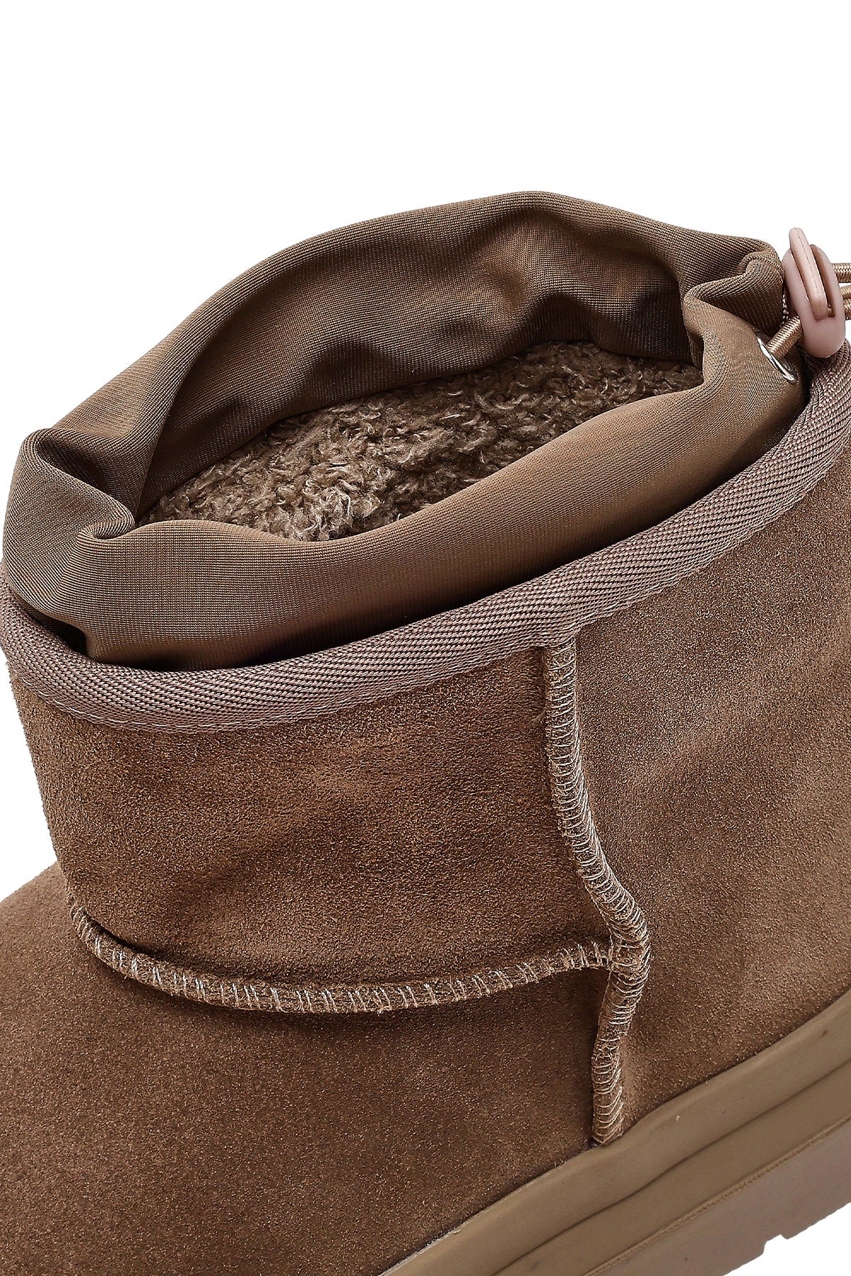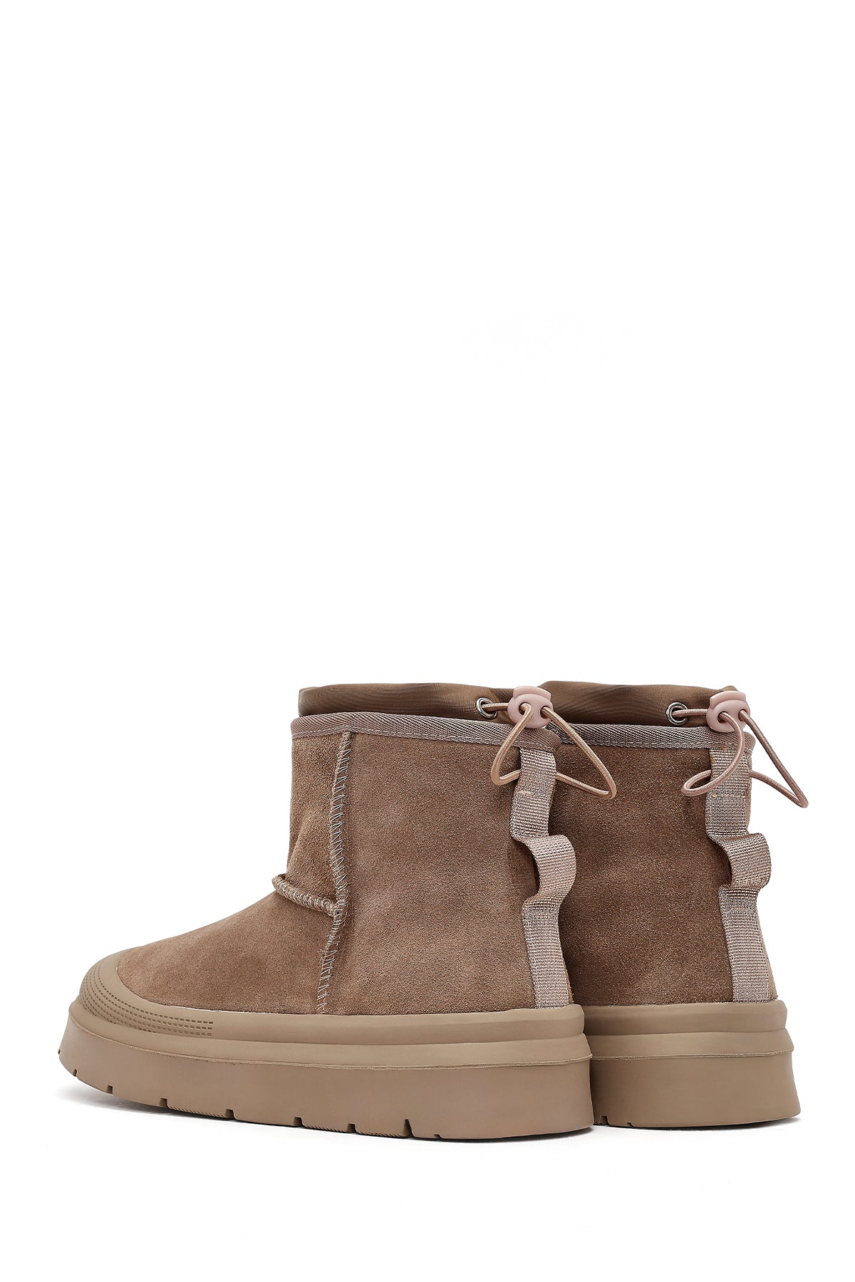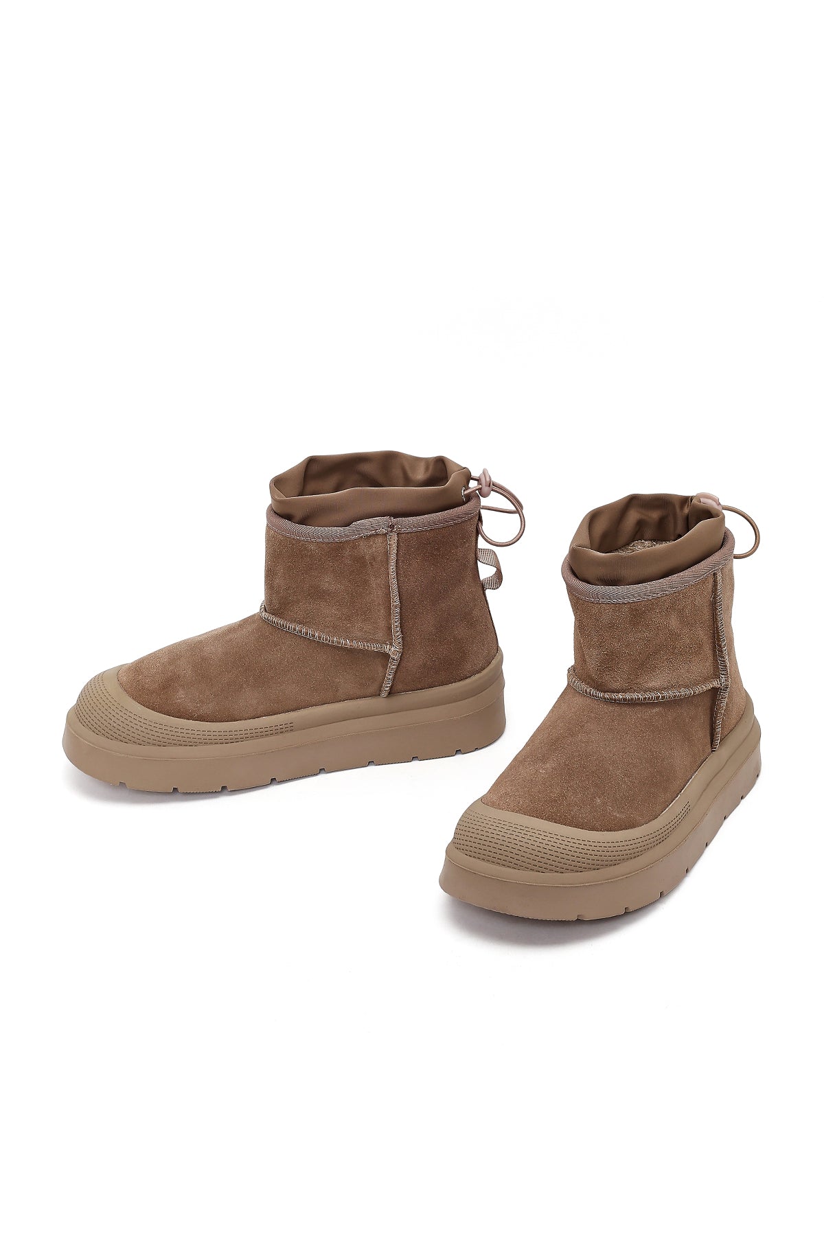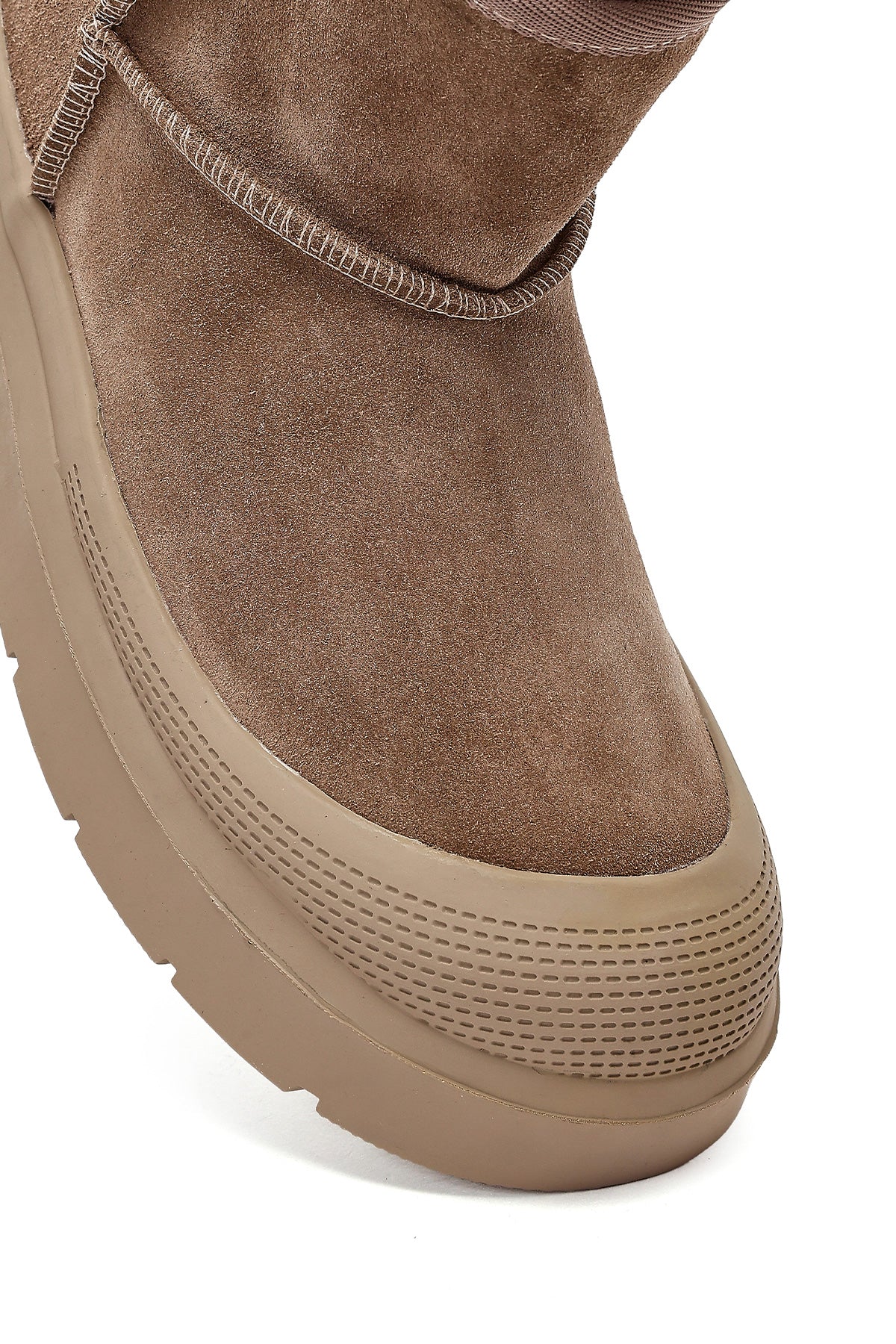 Kadın Pudra Kalın Tabanlı Süet Deri Teddy Bot