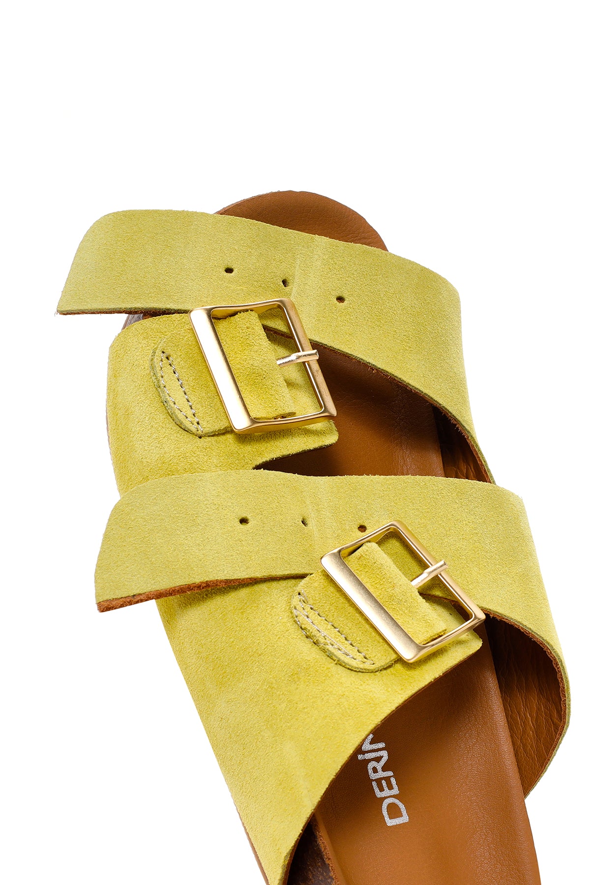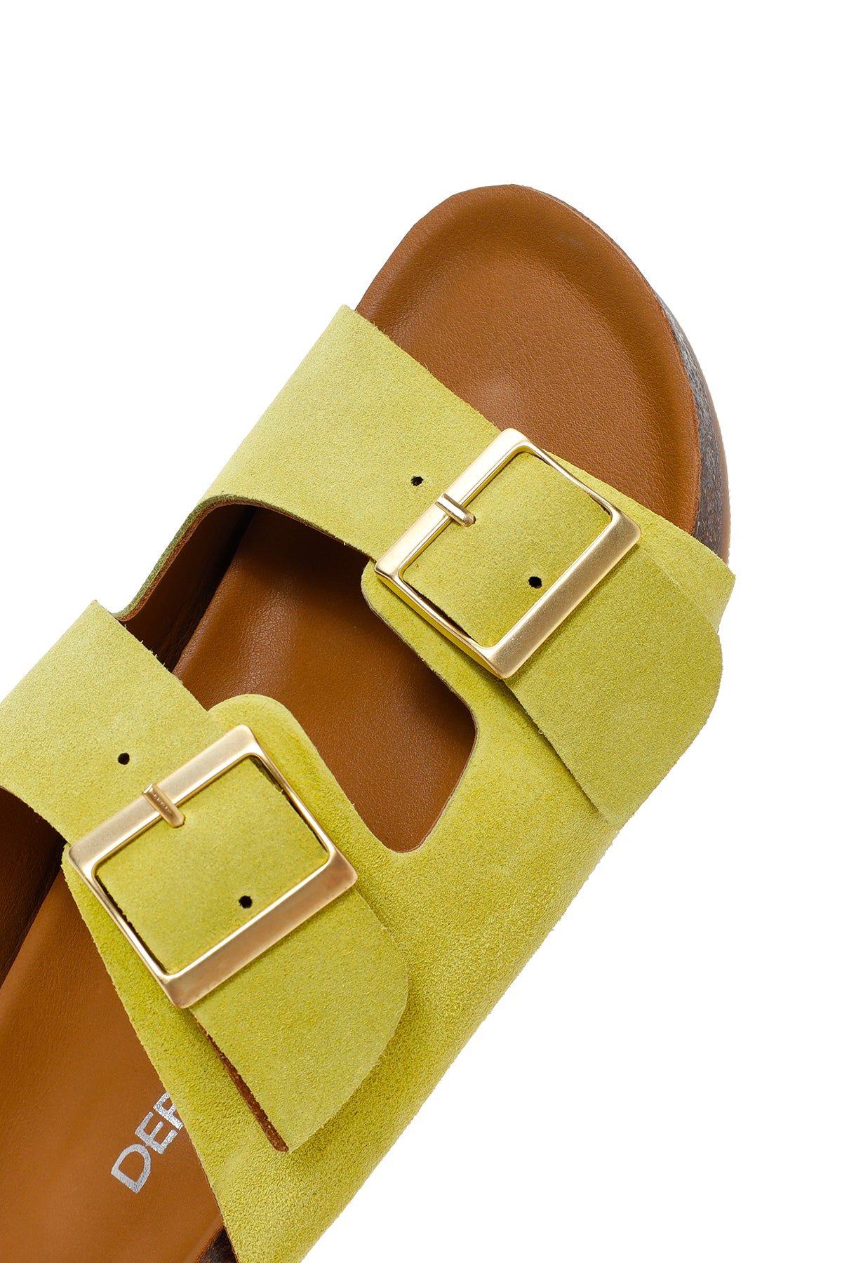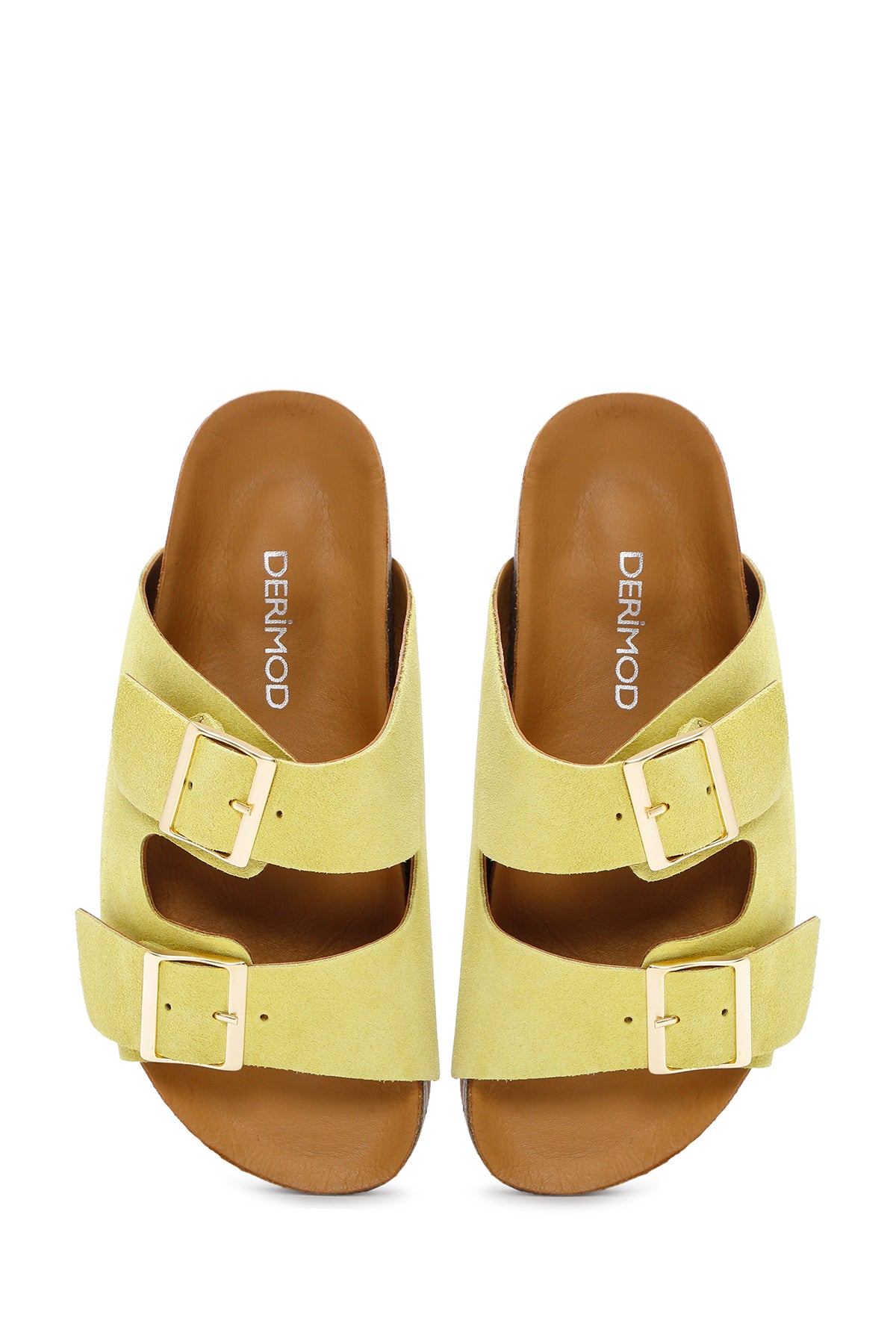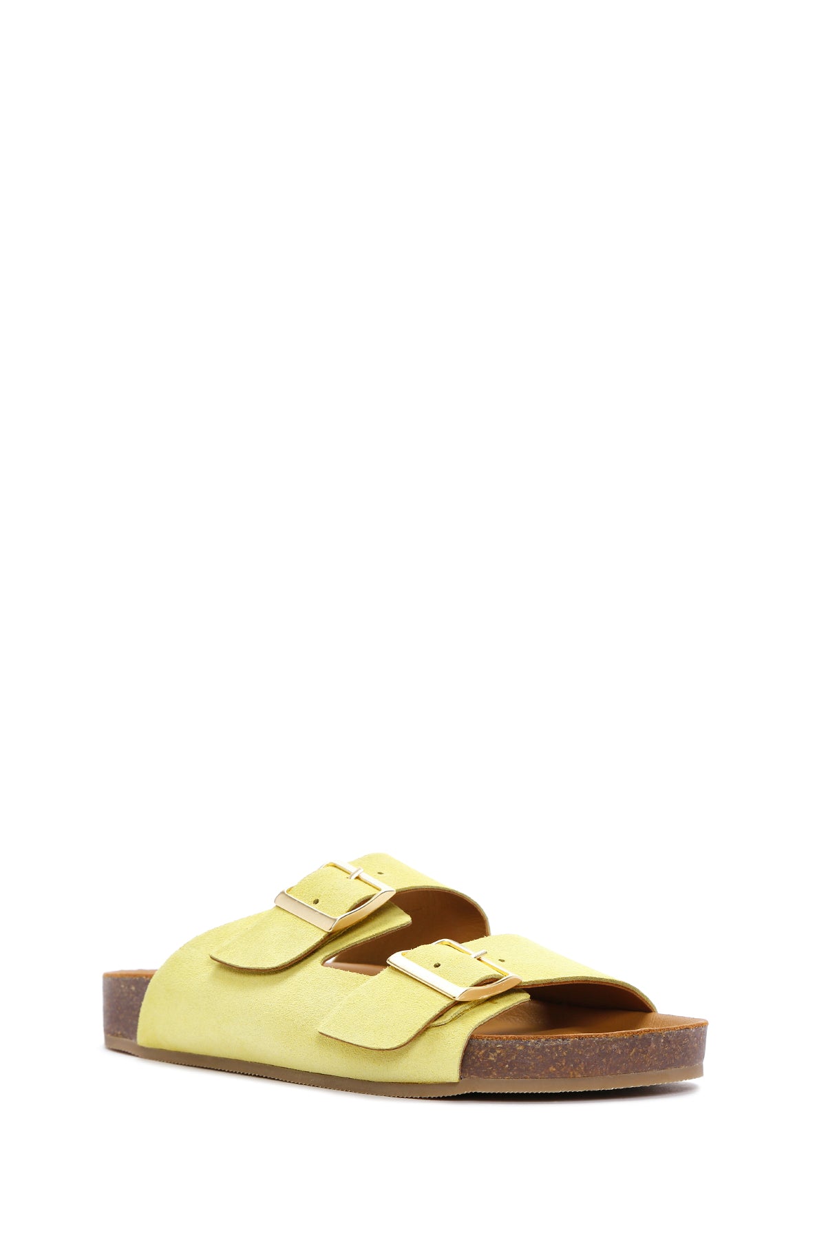 Show off your style with Derimod's Women's Yellow Buckle Suede Leather Slippers, which offer style and elegance together. Product code: 24SFD151710 LO