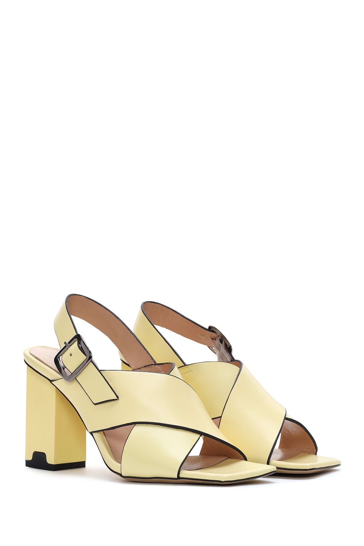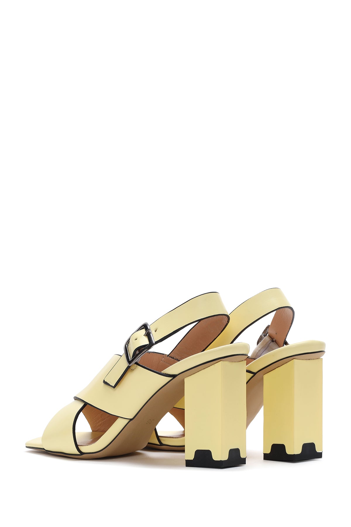 Show off your style with Derimod's Women's Yellow Leather Thick Heeled Sandals, which offer elegance and elegance together. Product code: 23SFD132718 75