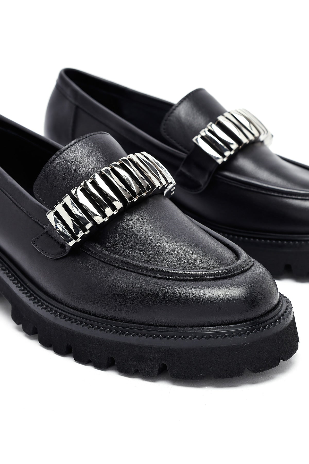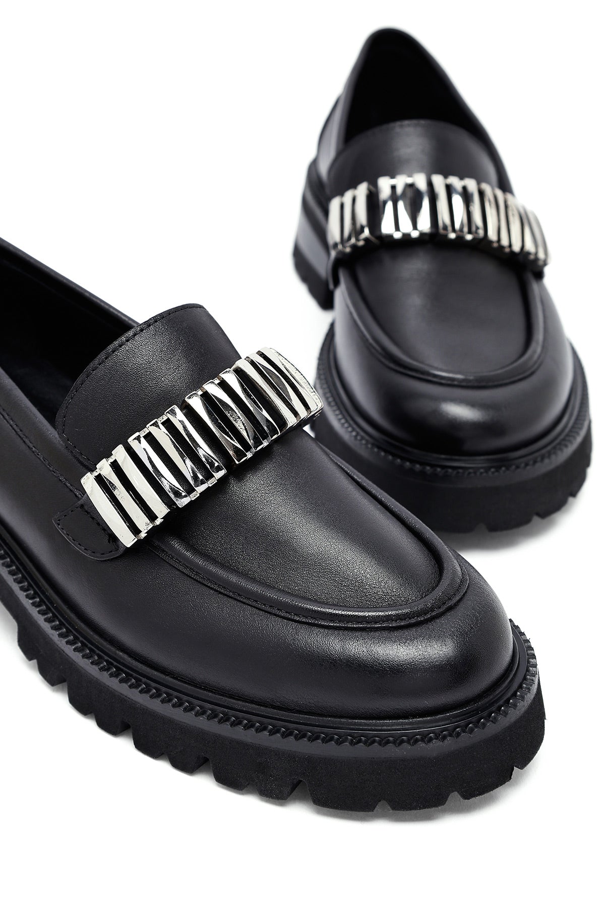 Express your style with the Women's Black Accessorized Leather Masculine Loafer that combines Derimod's elegance and sophistication. Product code: 25AFD270418 11