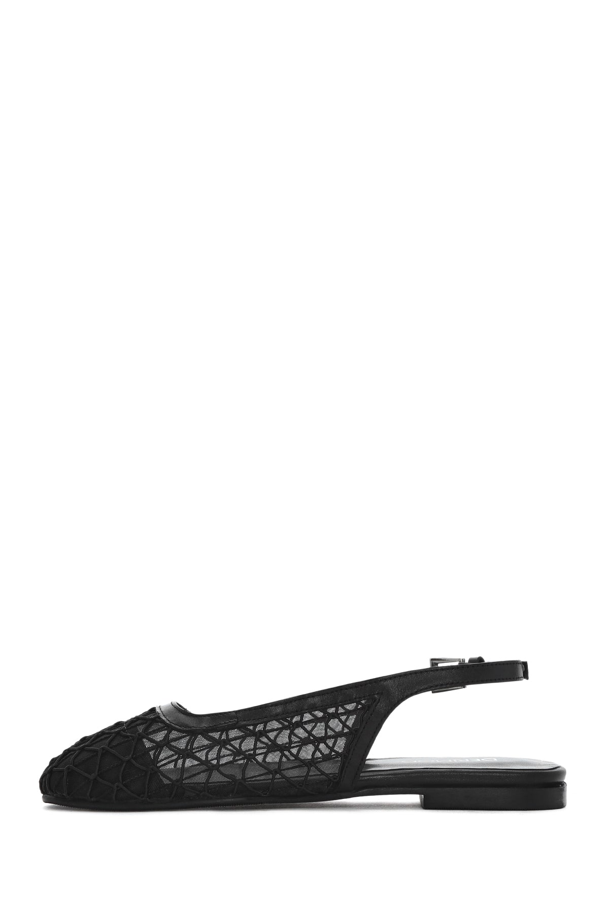 From Derimod's summer collection, the black ballet flat model designed using geometric patterned fabric offers a design suitable for daily use with its 1 cm high sole. The model, which features an open back structure and a triangular patterned knit texture, presents a modern look and keeps your foot comfortable thanks to its textile inner lining. With its stylish design, it offers a wide range of use from dresses to skirts, from pants to shorts. It can be worn at any time of the day during spring and summer seasons. Product code: 25SFD18146F