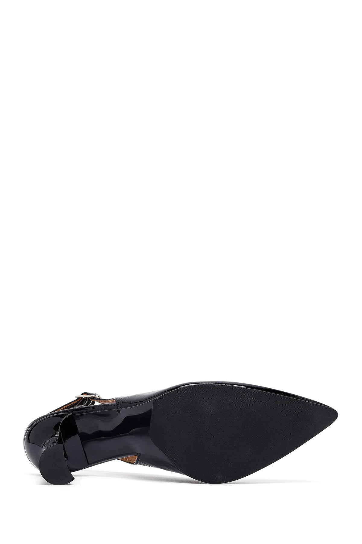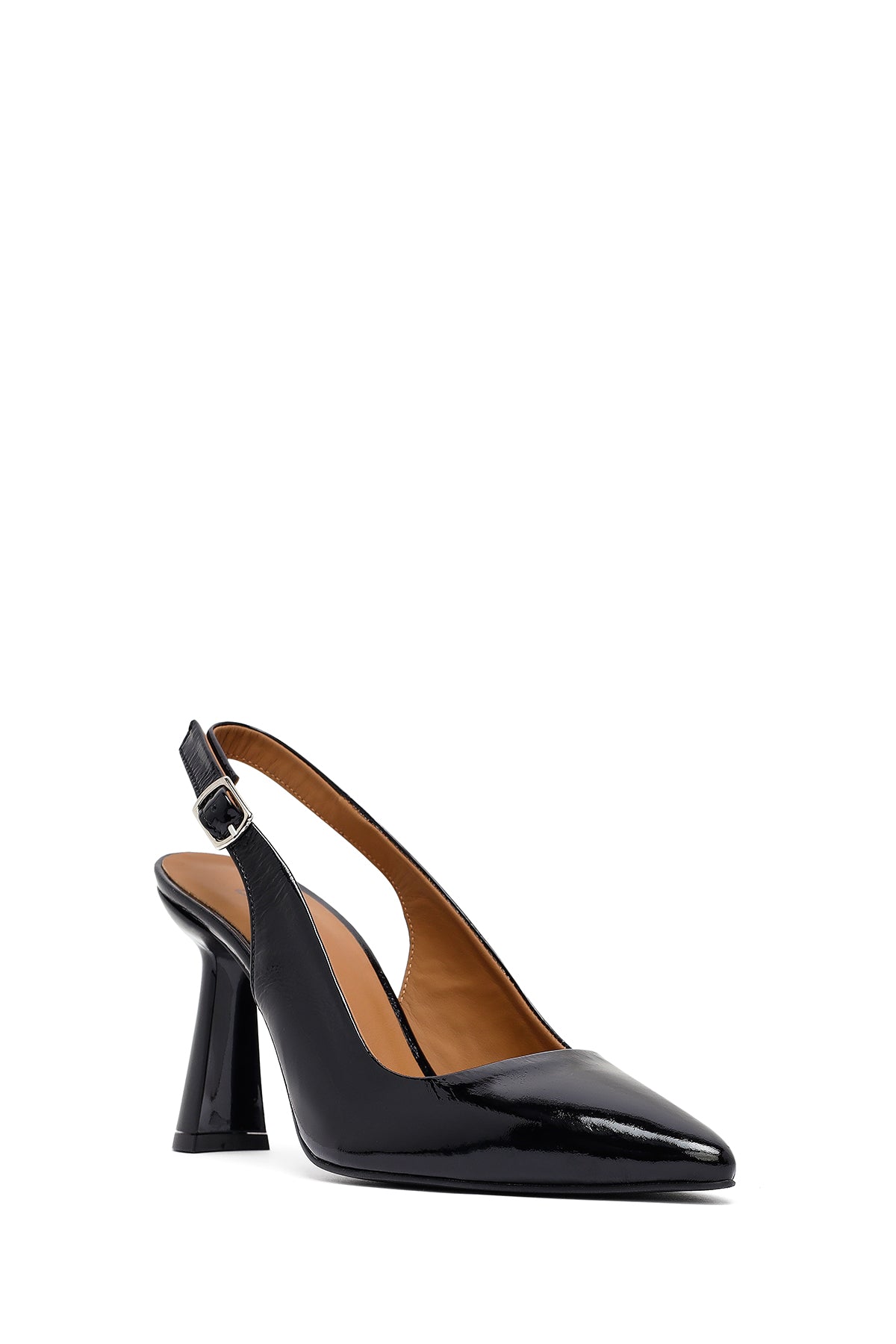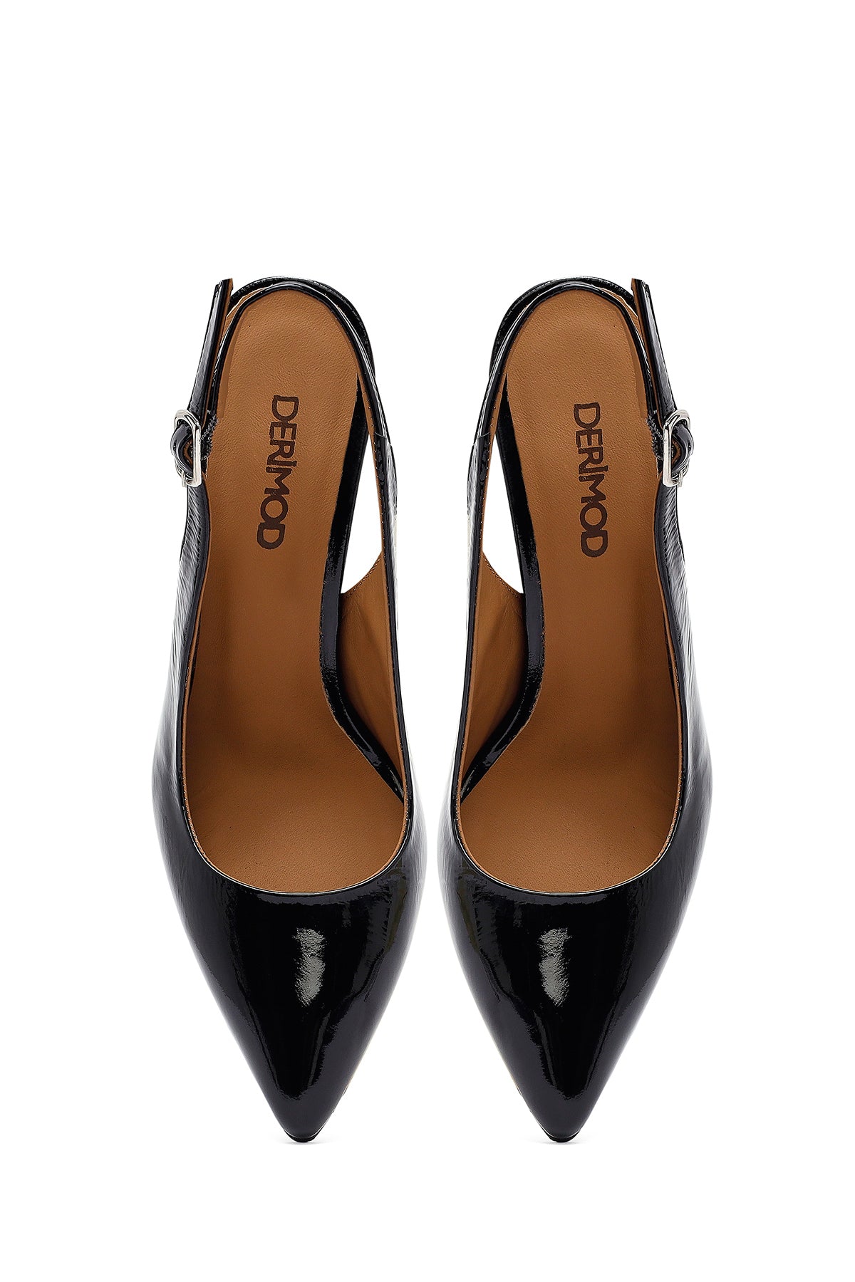 From Derimod's autumn collection, the black open-back shoe model designed with wrinkled patent leather presents an elegant stance with a 9.5 cm heel height. Featuring a pointed toe shape and a silver buckle detail on the back, the model offers a modern look and provides quality use with its leather inner lining. The shoe, which stands out with its classic lines, offers a wide range of use from office outfits to invitation attire. An ideal choice for special invitations, business meetings, and elegant dinners in the autumn season. Product code: 25AFD130216