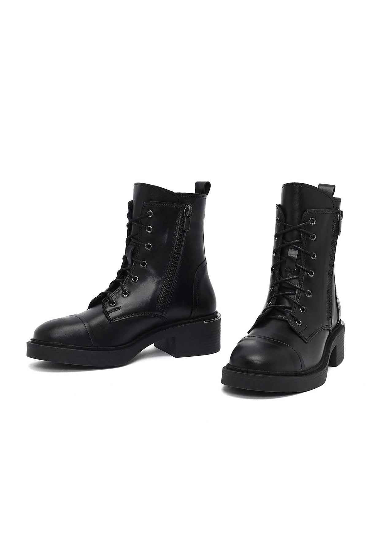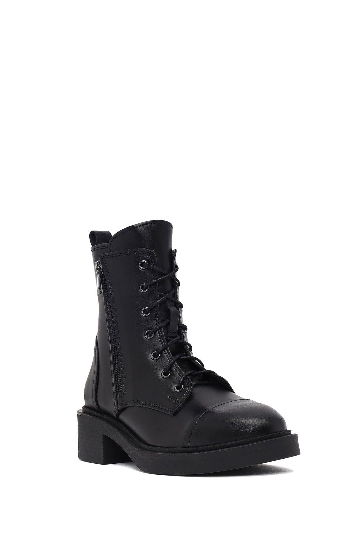 Express your style with the Women's Black Lace-Up Zipper Leather Combat Boot that combines Derimod's Elegance and Sophistication. Product code: 25WFD185618 11