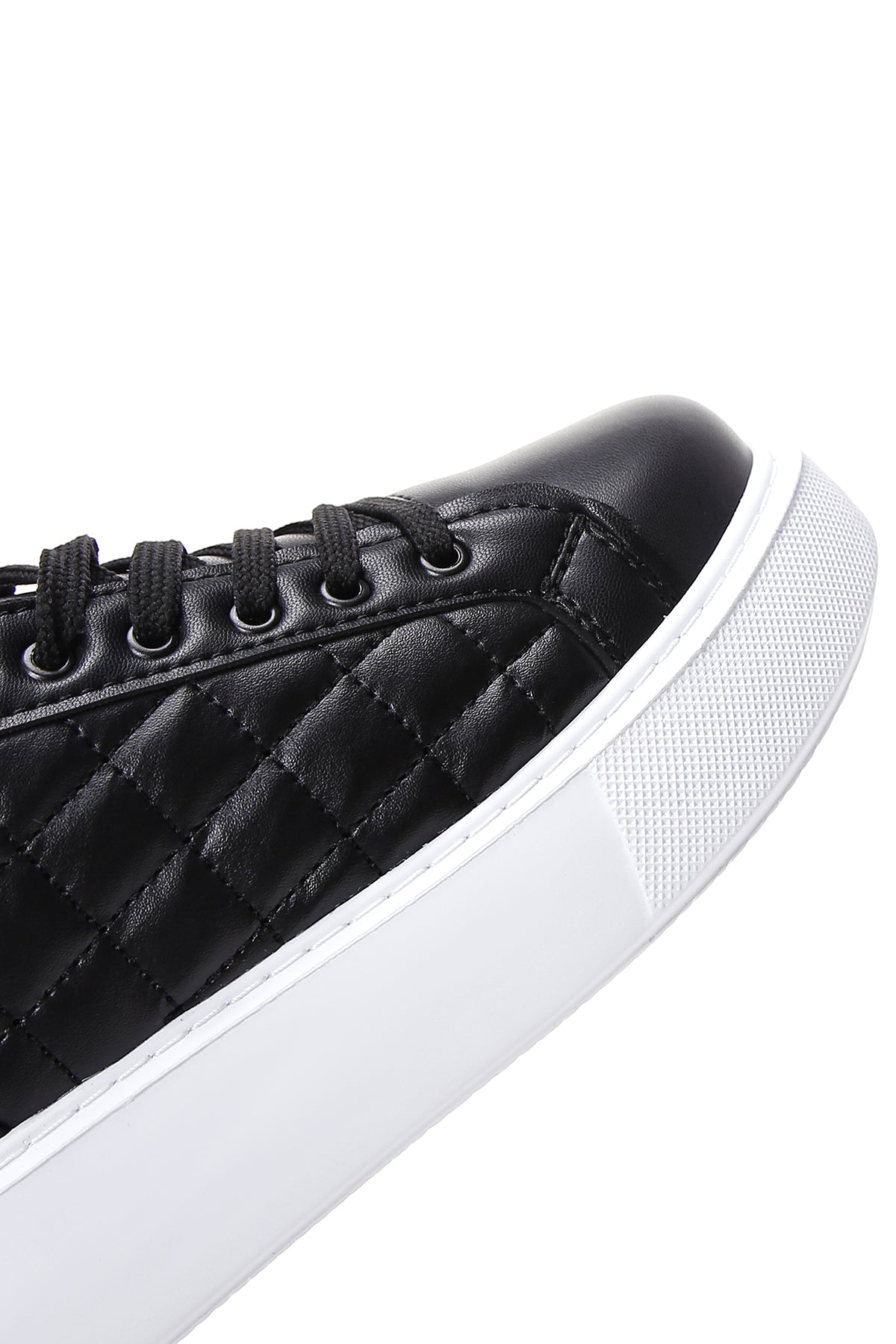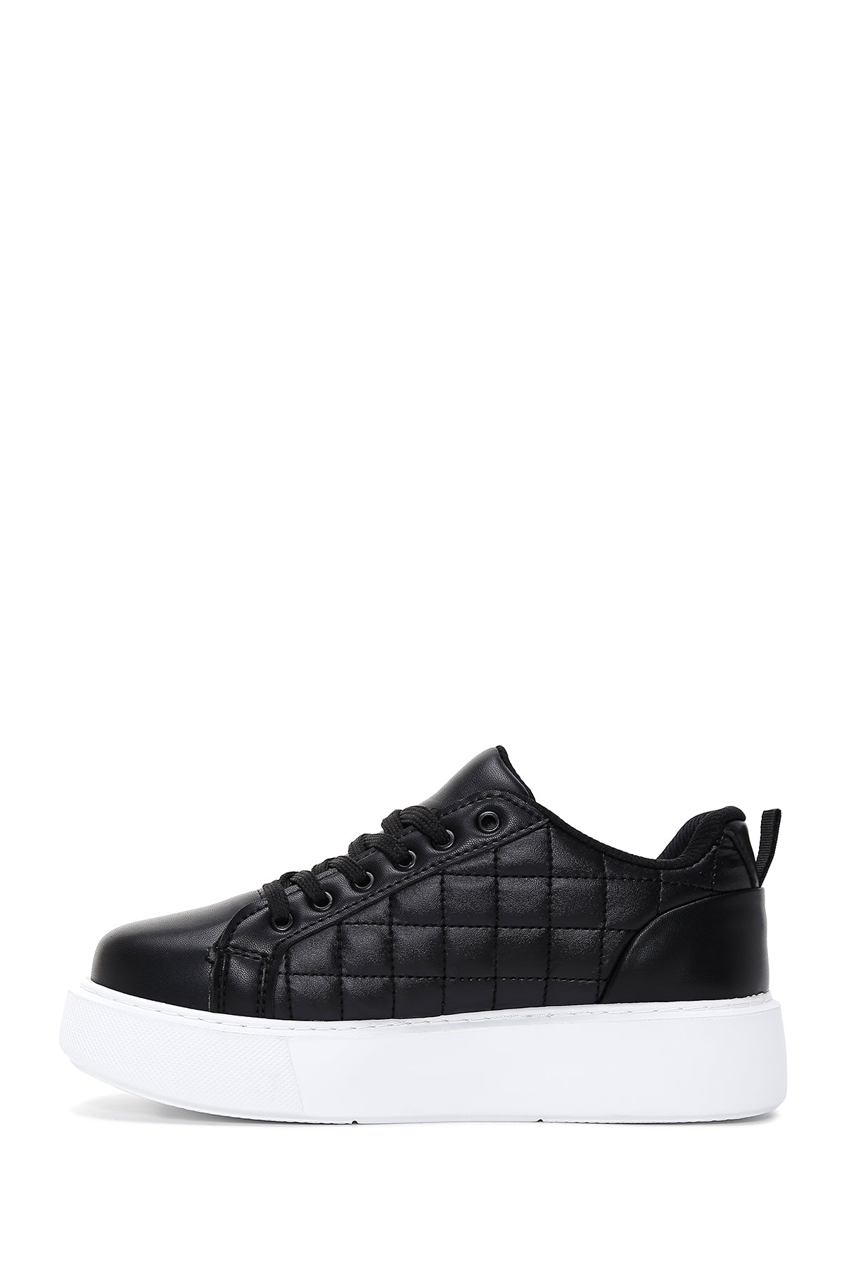This sneaker, which stands out with its quilted details, is one of the modern and stylish sports shoes of the winter season. The model, which offers an adjustable use with its lace-up design, provides a balanced stance with its 3 cm platform height. The design, which offers a comfortable use with its artificial leather inner lining and quilted outer surface, exhibits a contemporary look with its white thick sole. The sneaker, which adapts to both sports and casual combinations with its black color and contemporary design, can be preferred in autumn and winter. Areas of use: Ideal for daily life, sports activities, city walks and casual style combinations. Product code: 24WFE1452KP