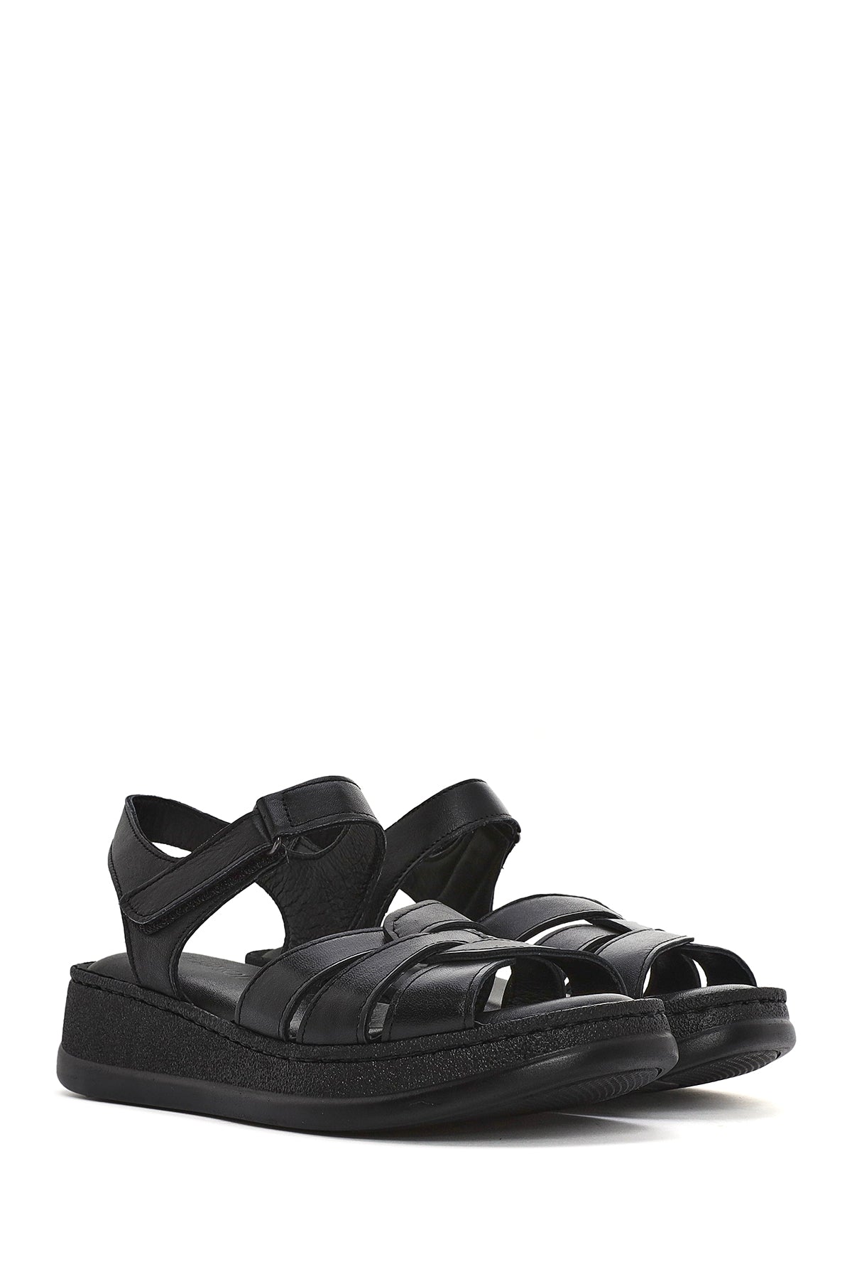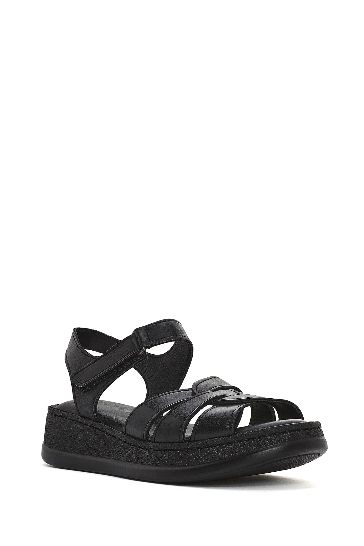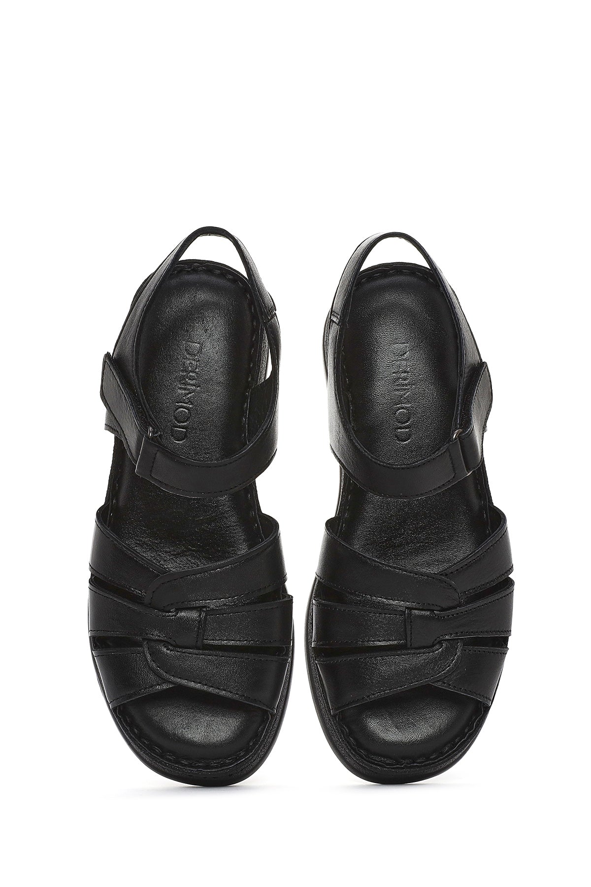 Derimod's elegance and style together Woman Black Banded Thick Sole Leather Show off your style with Comfort Sandals. Product code: 25SFD321418 11