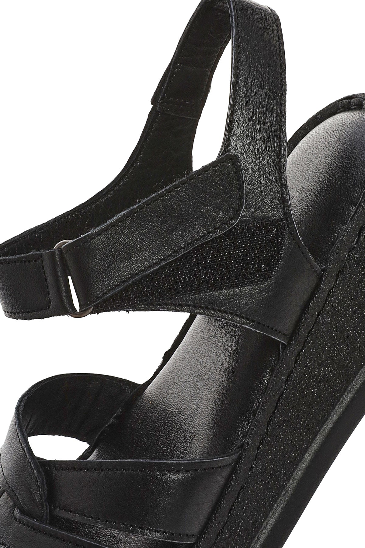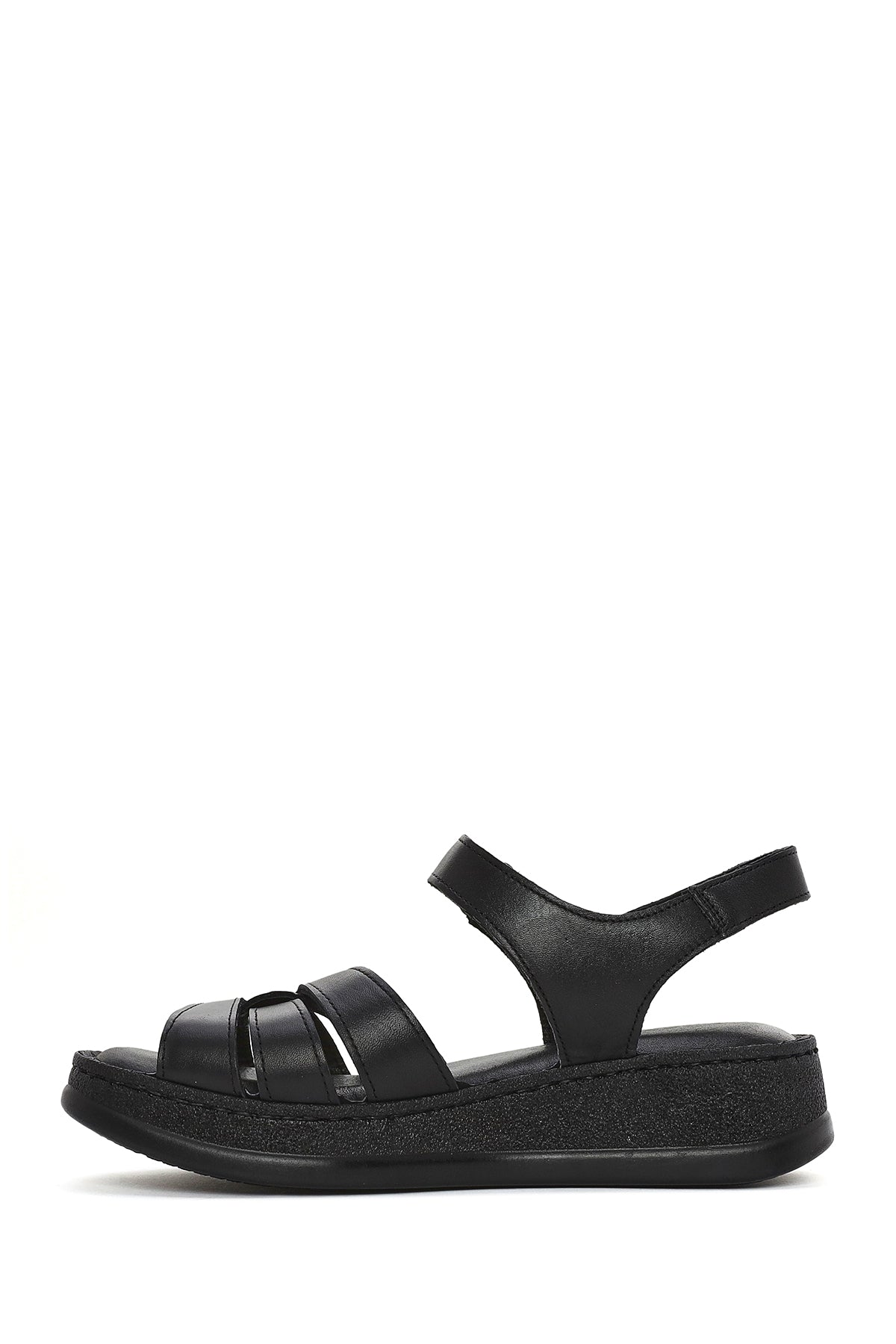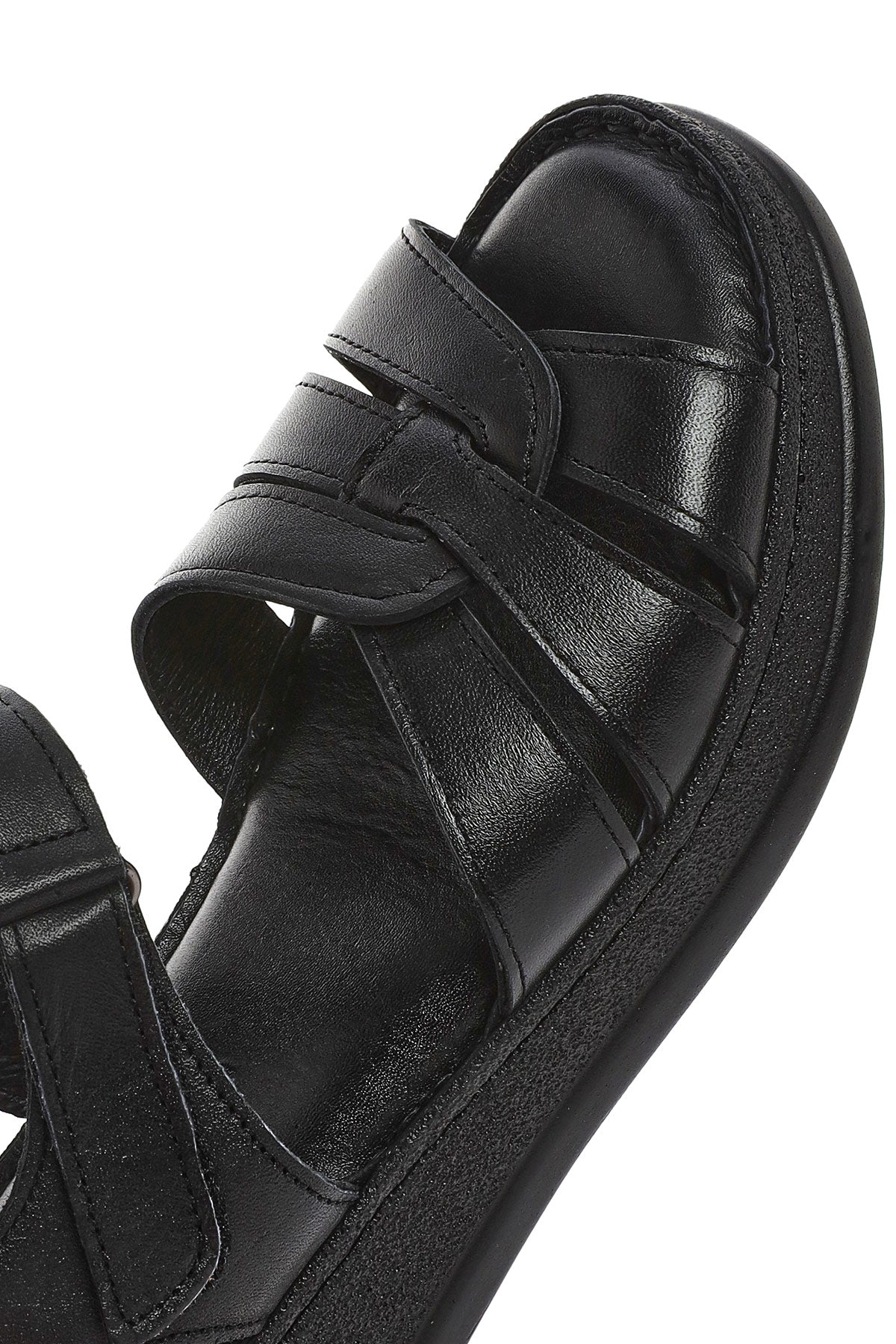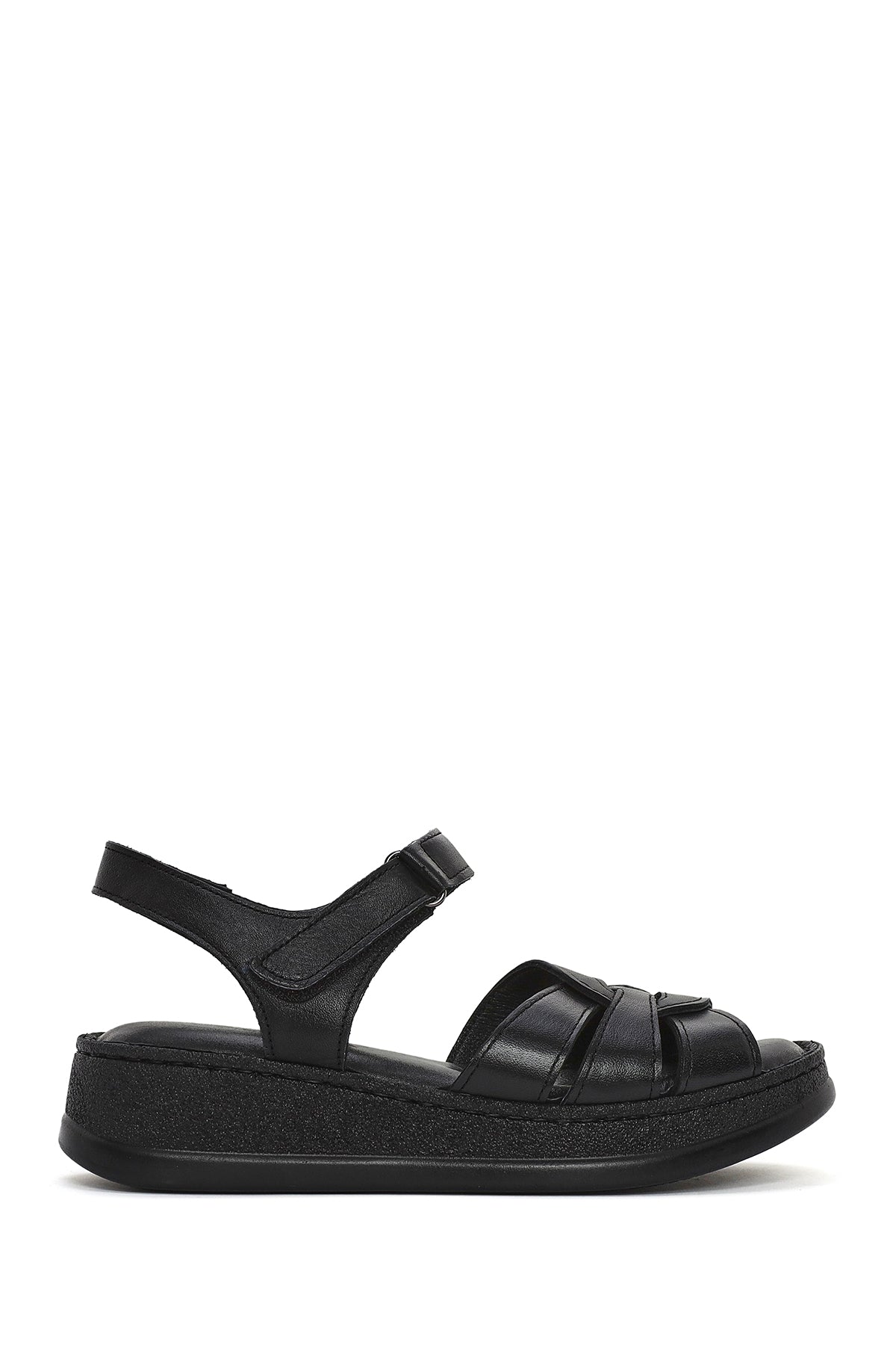Derimod's elegance and style together Woman Black Banded Thick Sole Leather Show off your style with Comfort Sandals. Product code: 25SFD321418 11