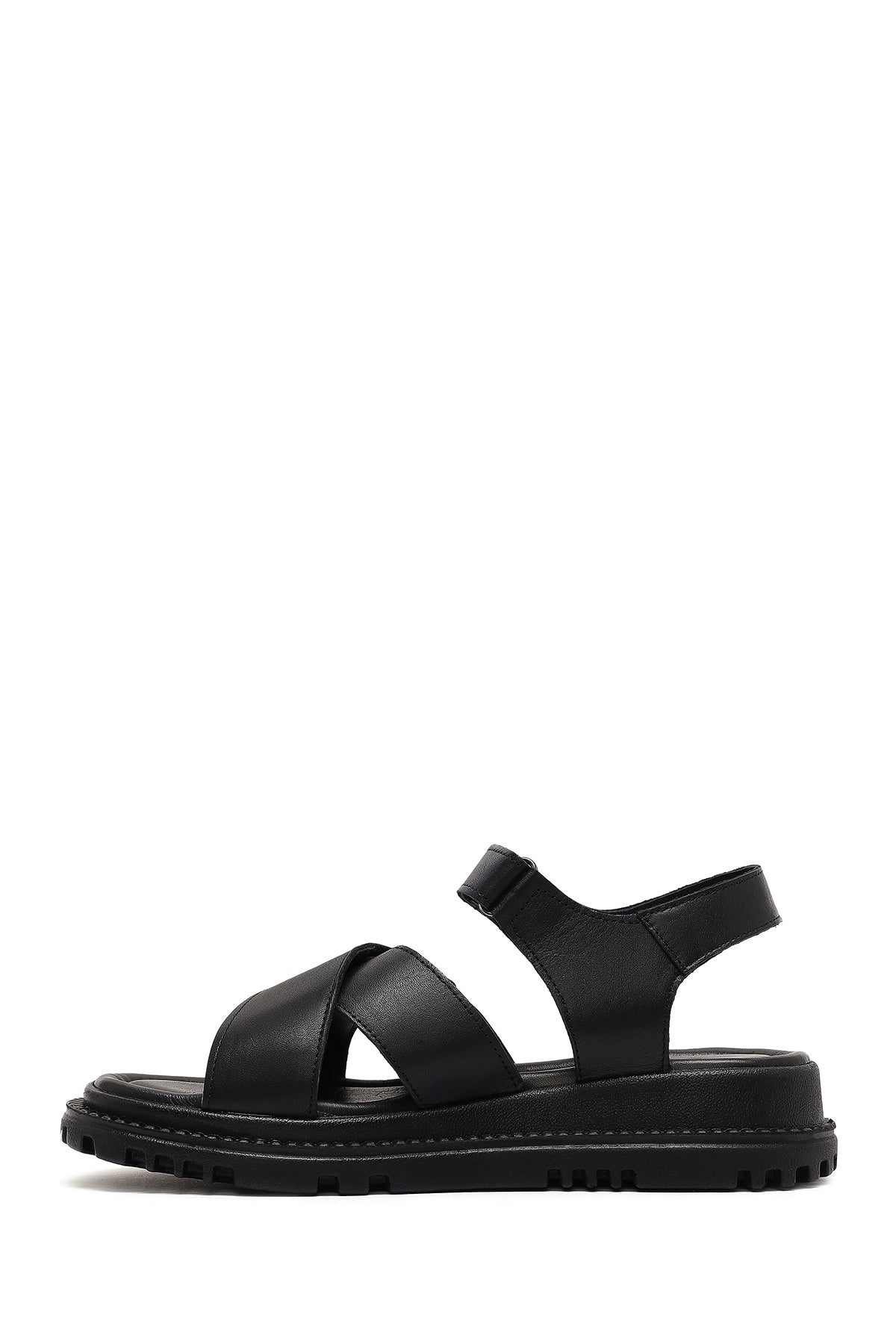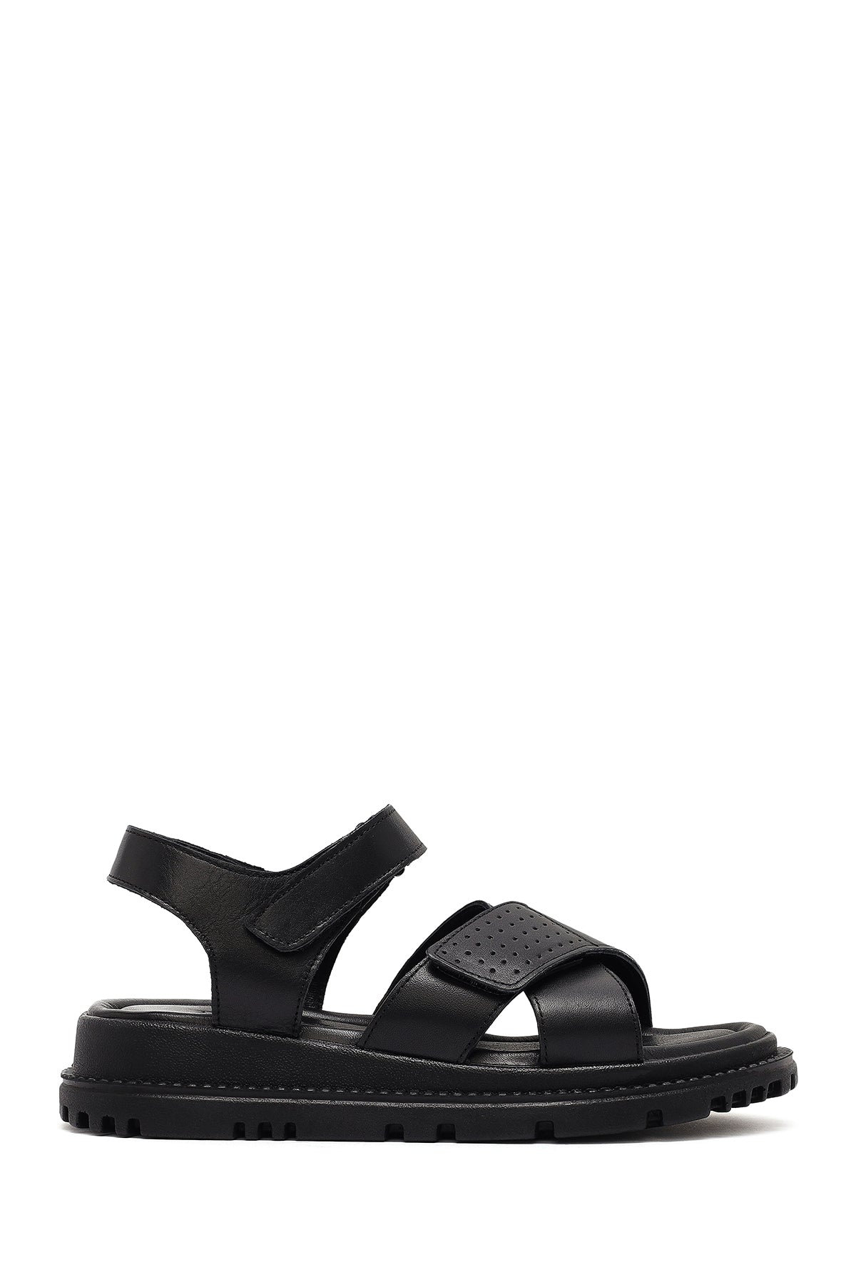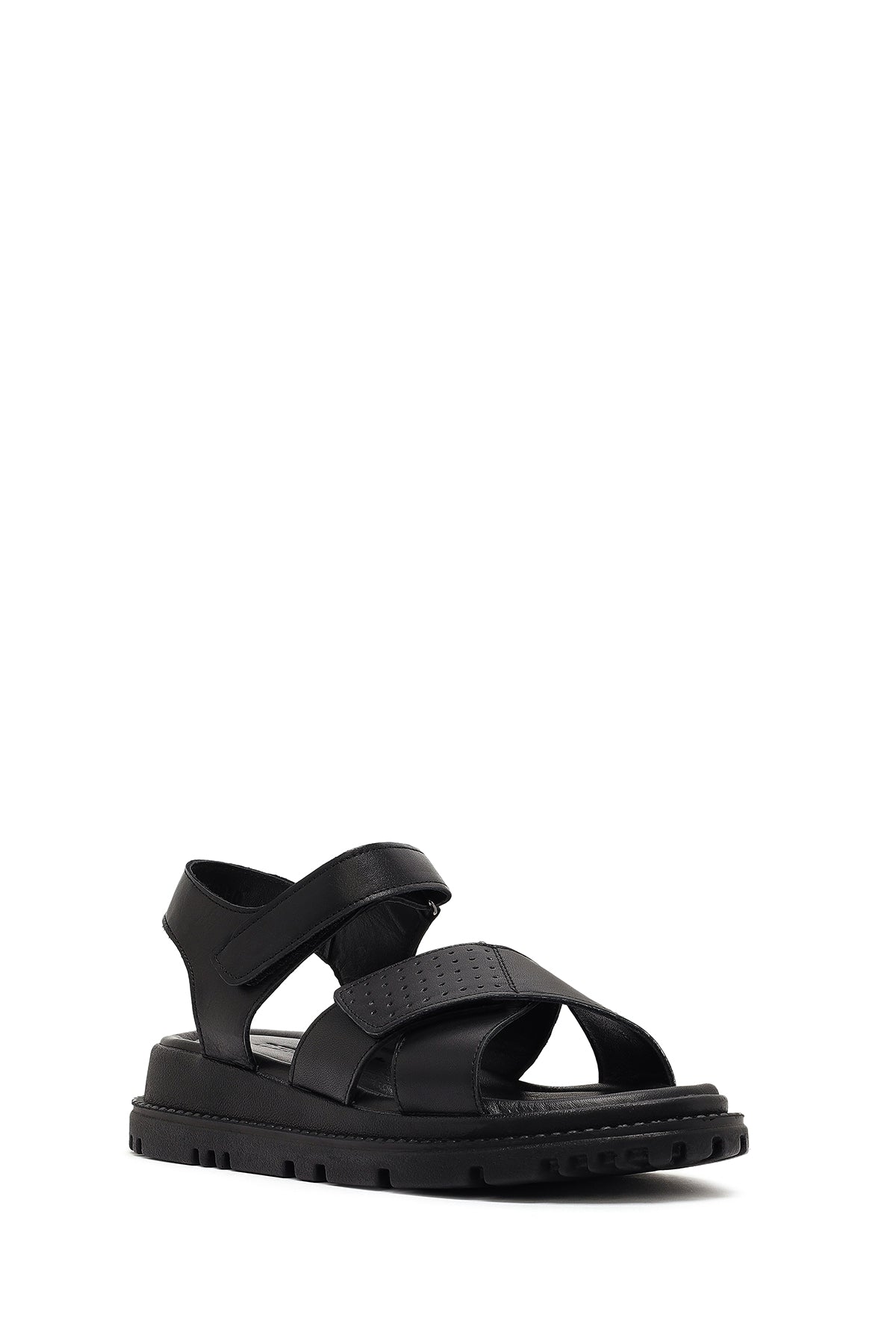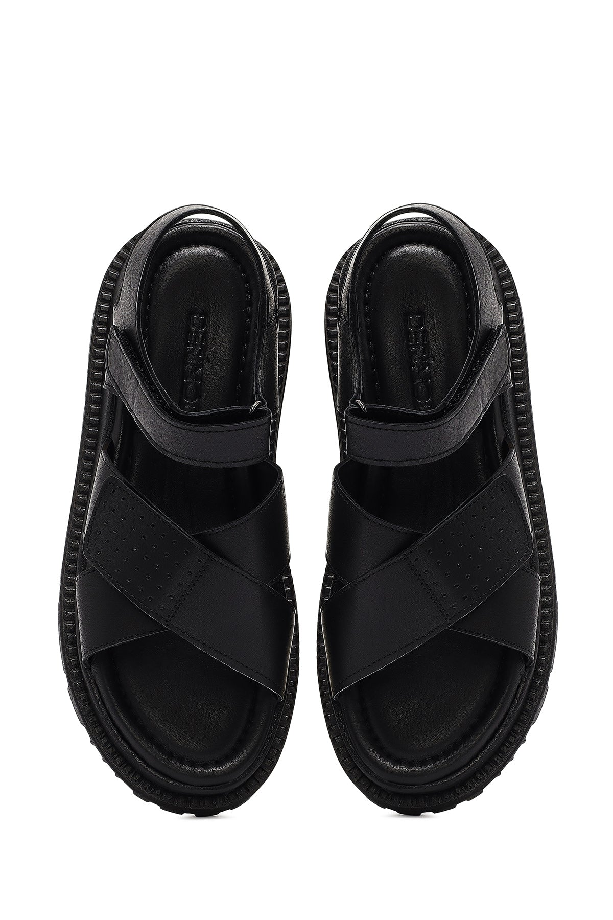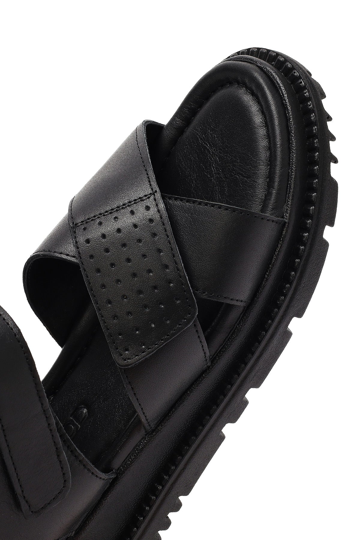 Derimod's elegance and style together Woman Black Banded Thick Sole Leather Show off your style with sandals. Product code: 25SFD300818 11