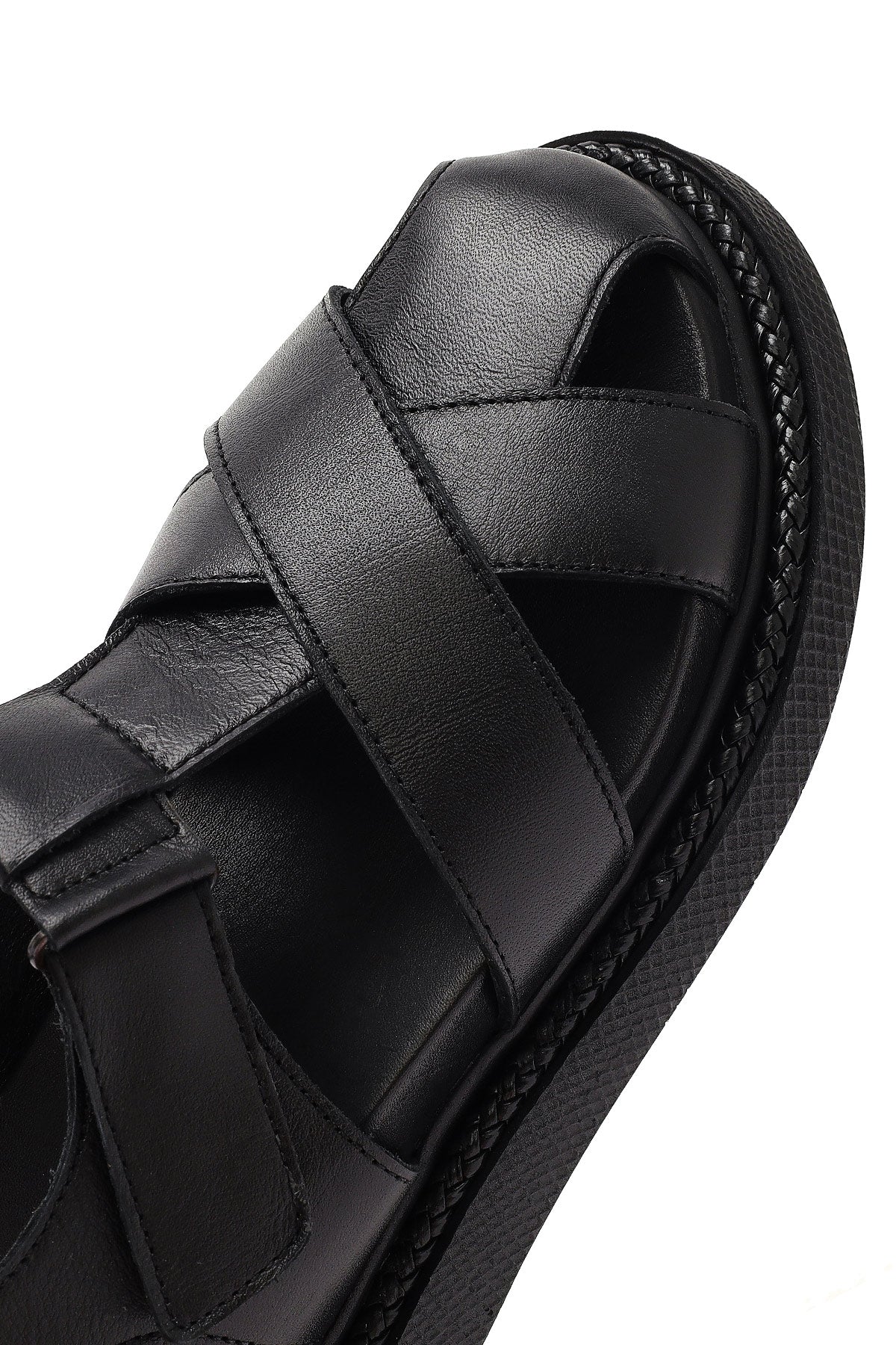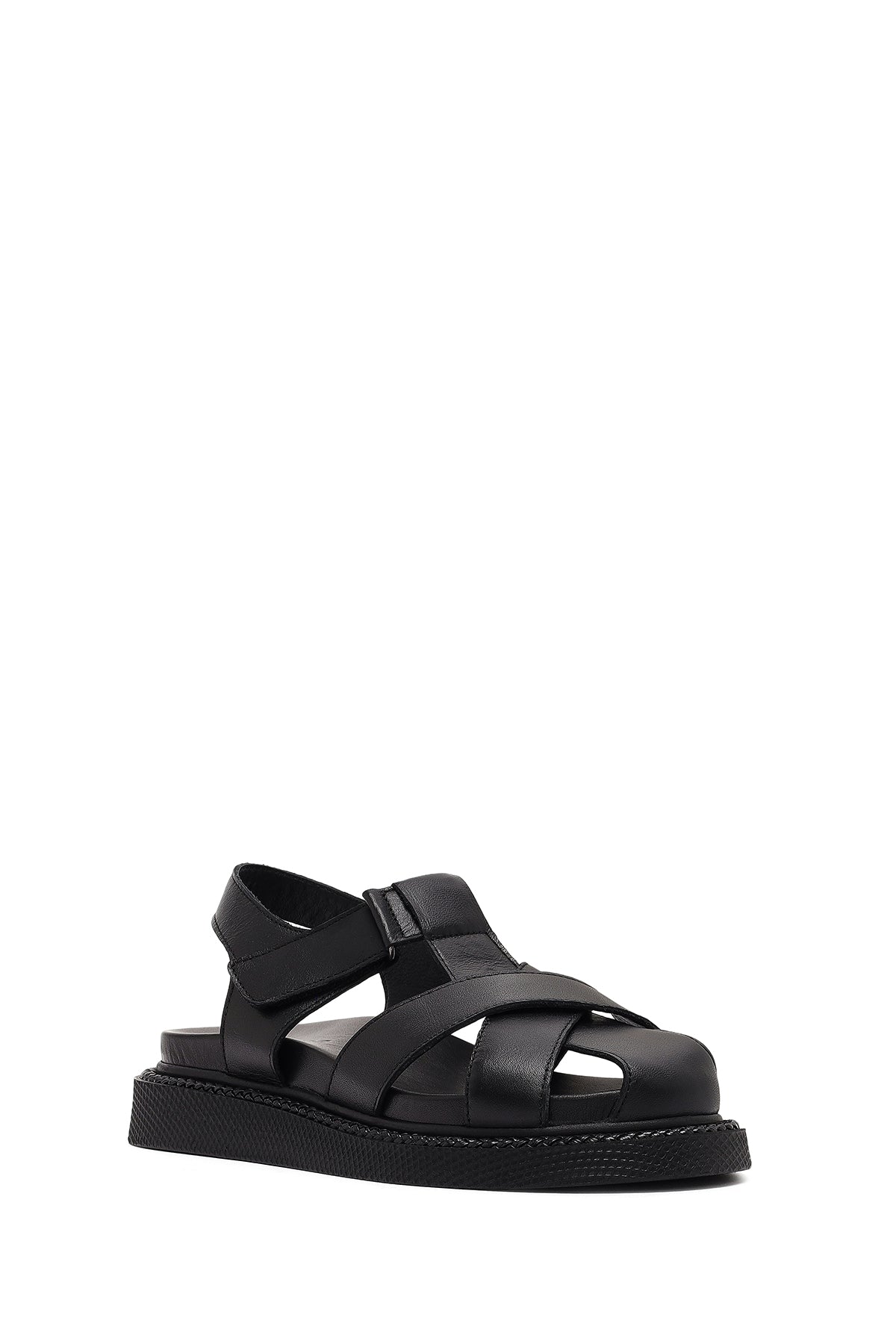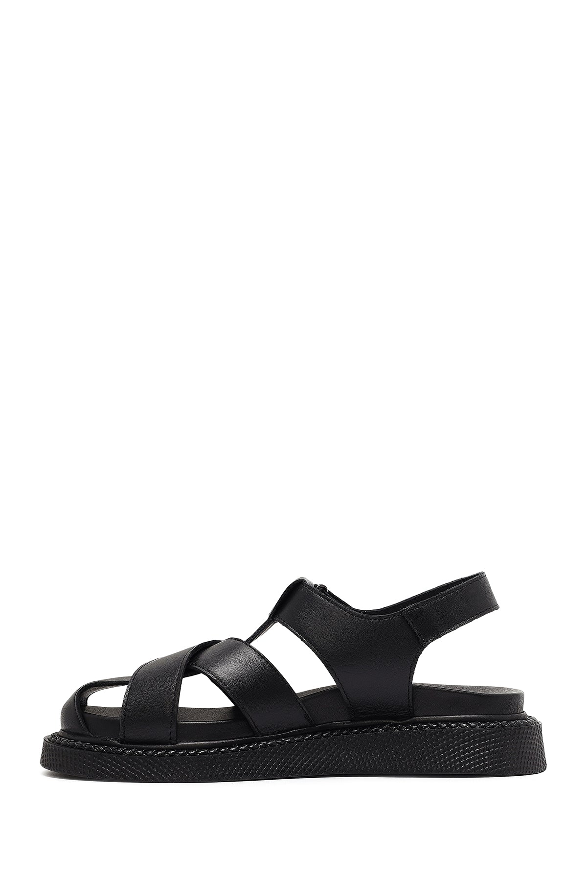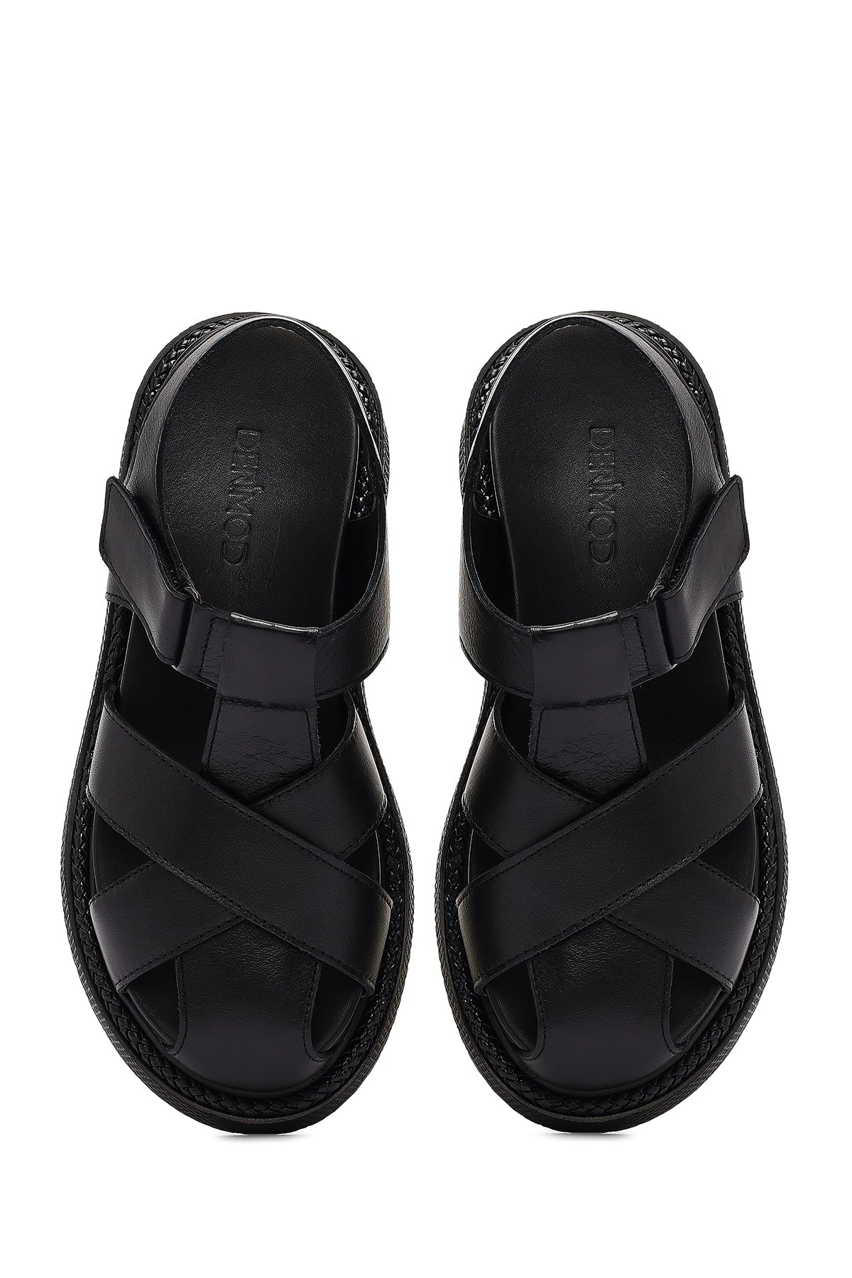 Derimod's elegance and style together Woman Black Banded Thick Sole Leather Show off your style with sandals. Product code: 25SFD300918 11