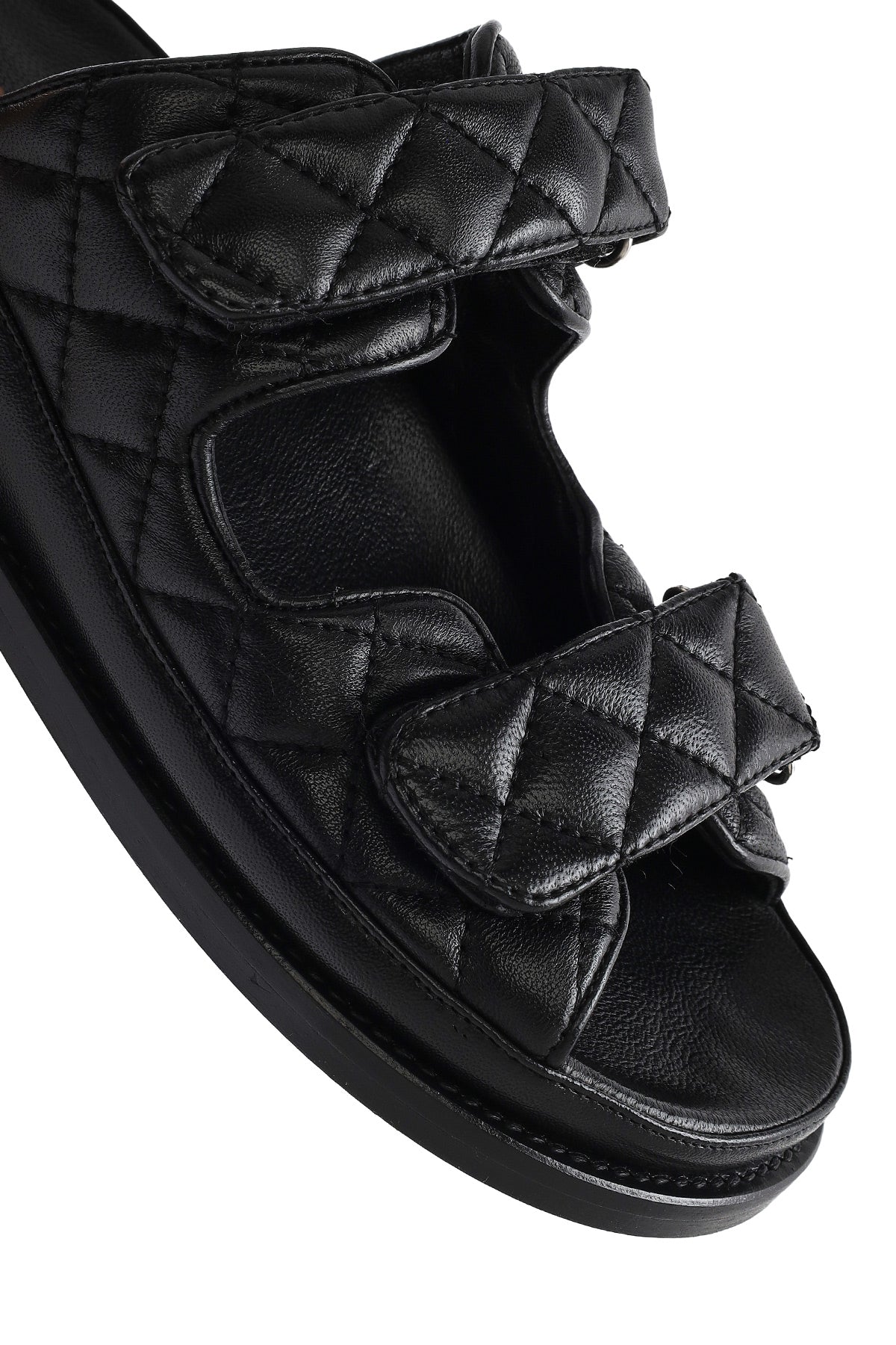 Show off your style with Derimod's Women's Black Banded Quilted Patterned Leather Slippers, which offer elegance and style together. Product code: 25SFD2301KP 11