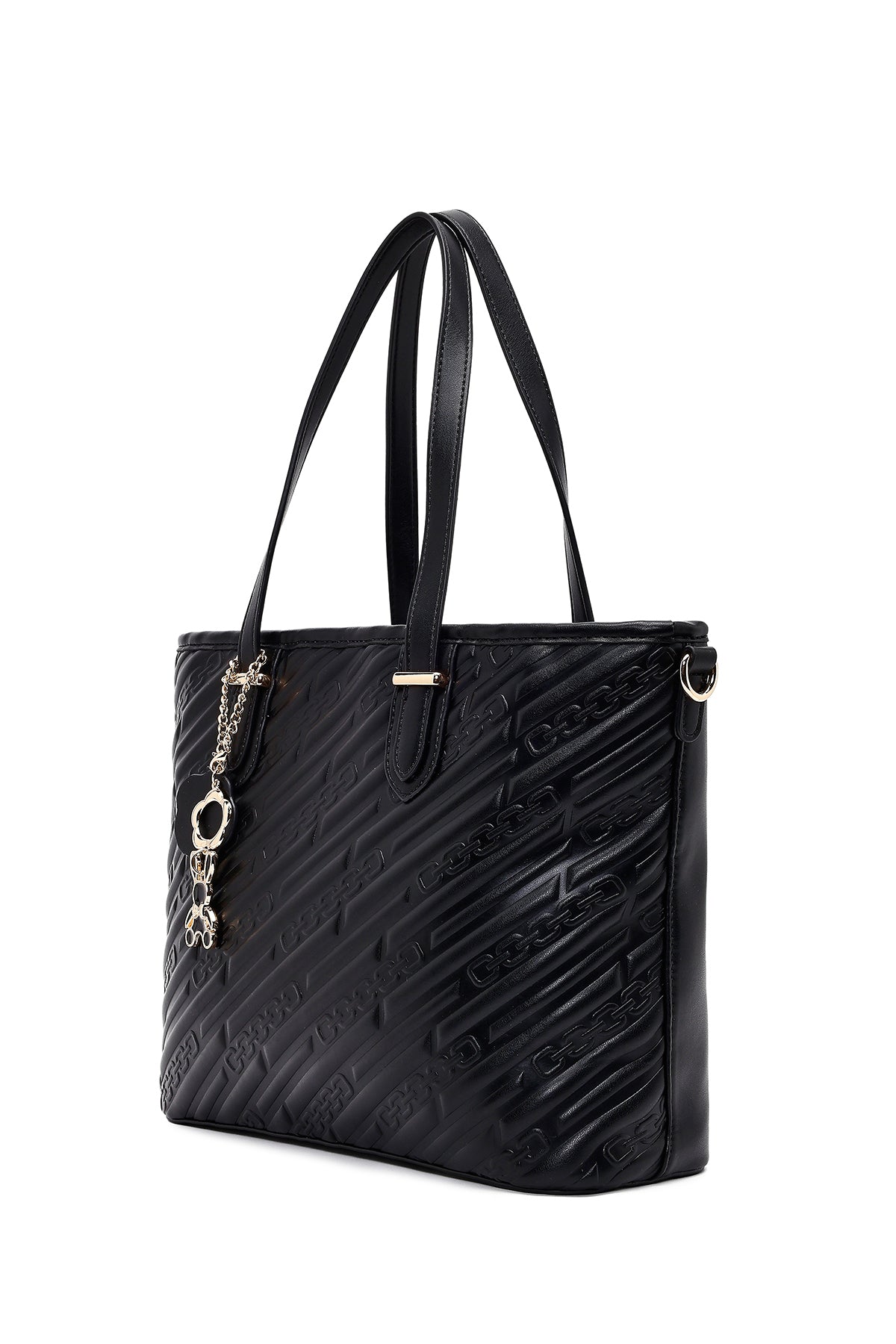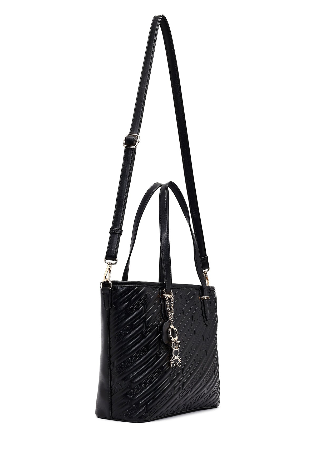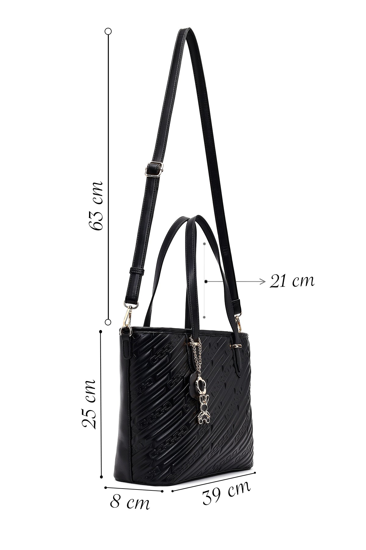 Women's Black Printed Long Strapped Charm Classic Shoulder Bag