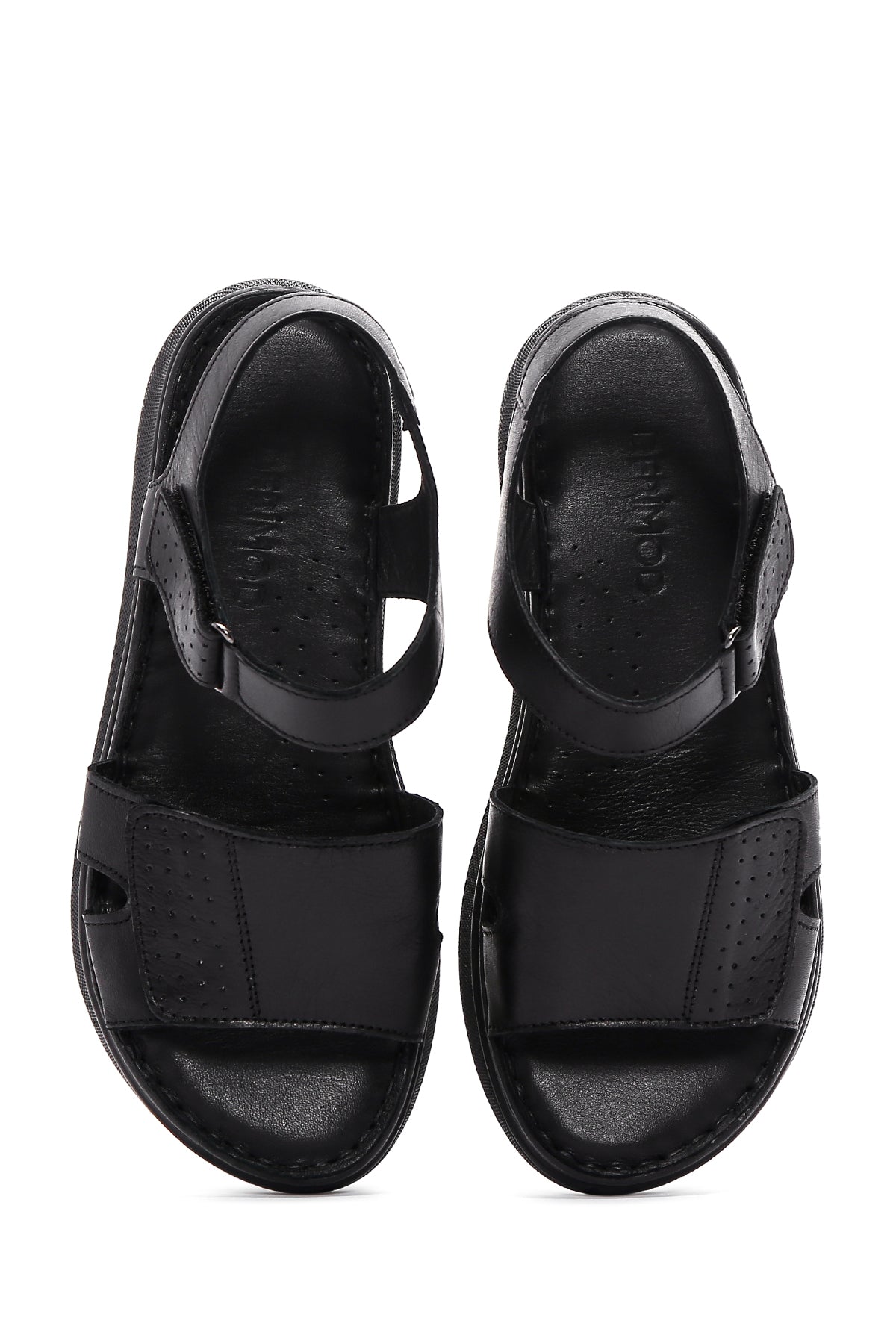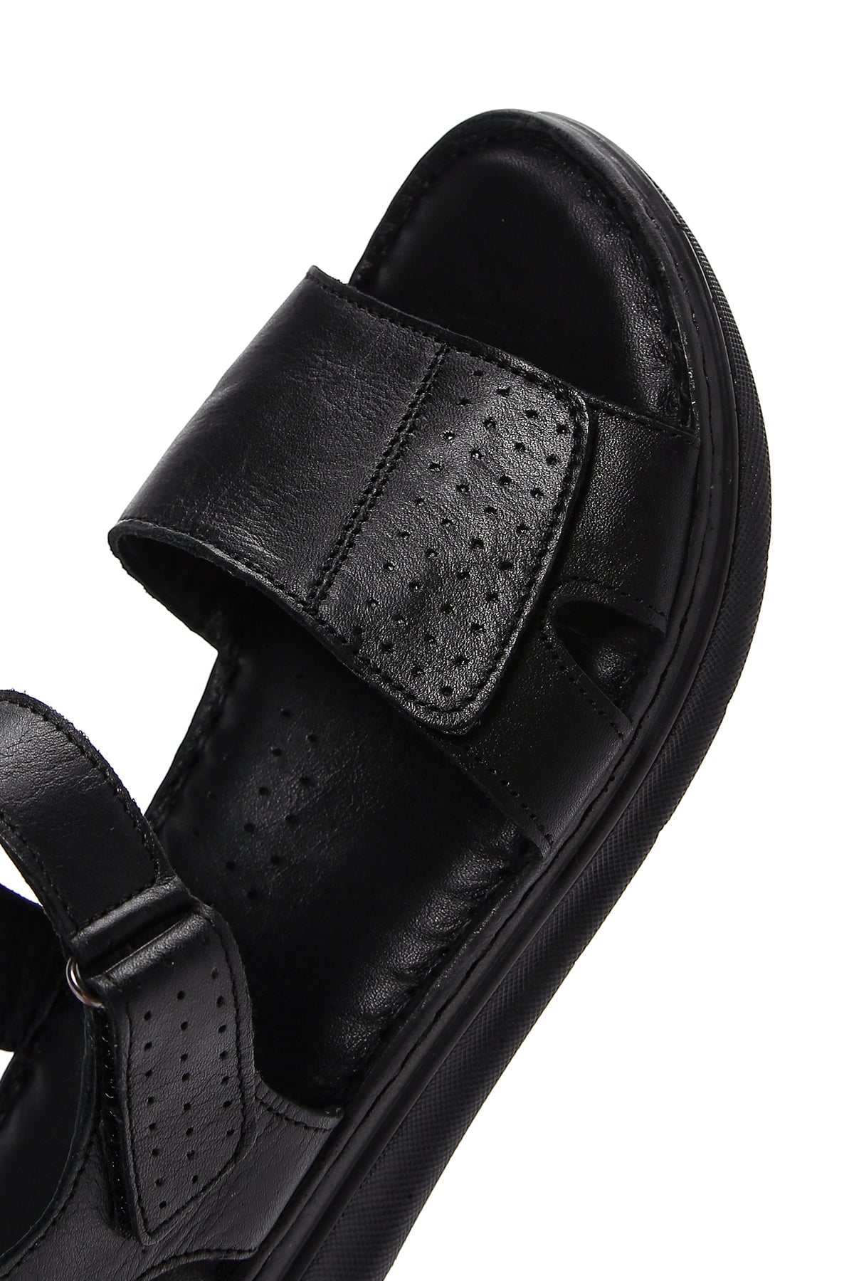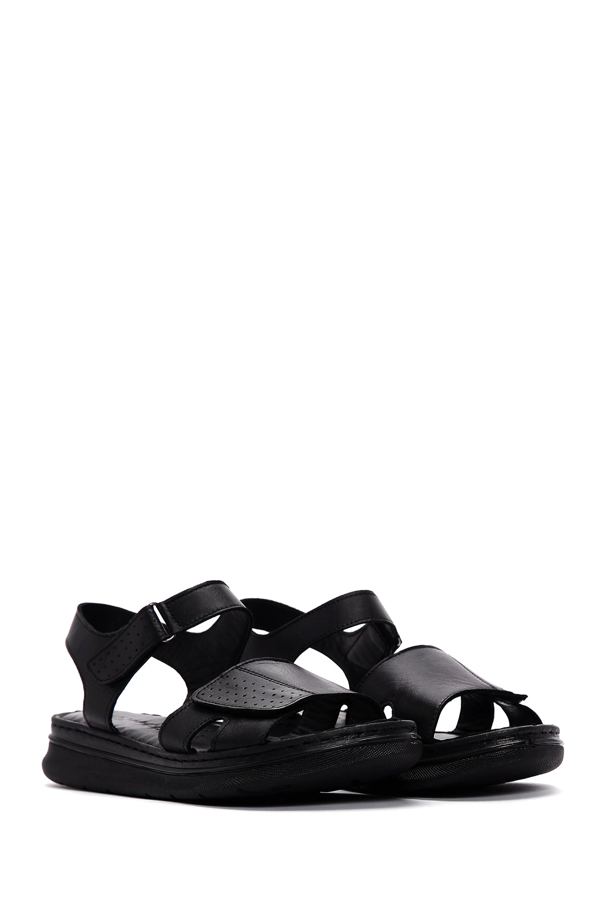 Women's Black Ankle Strap Leather Comfort Sandals