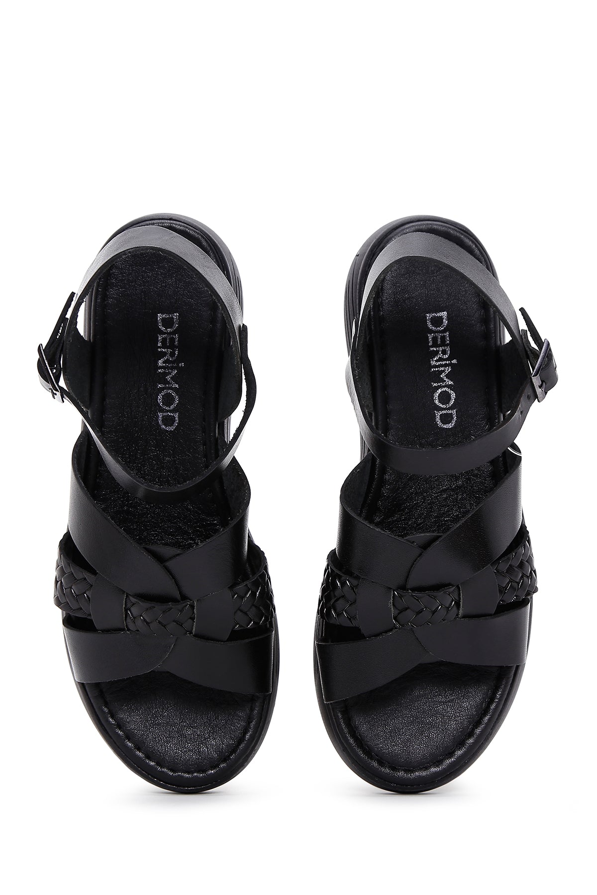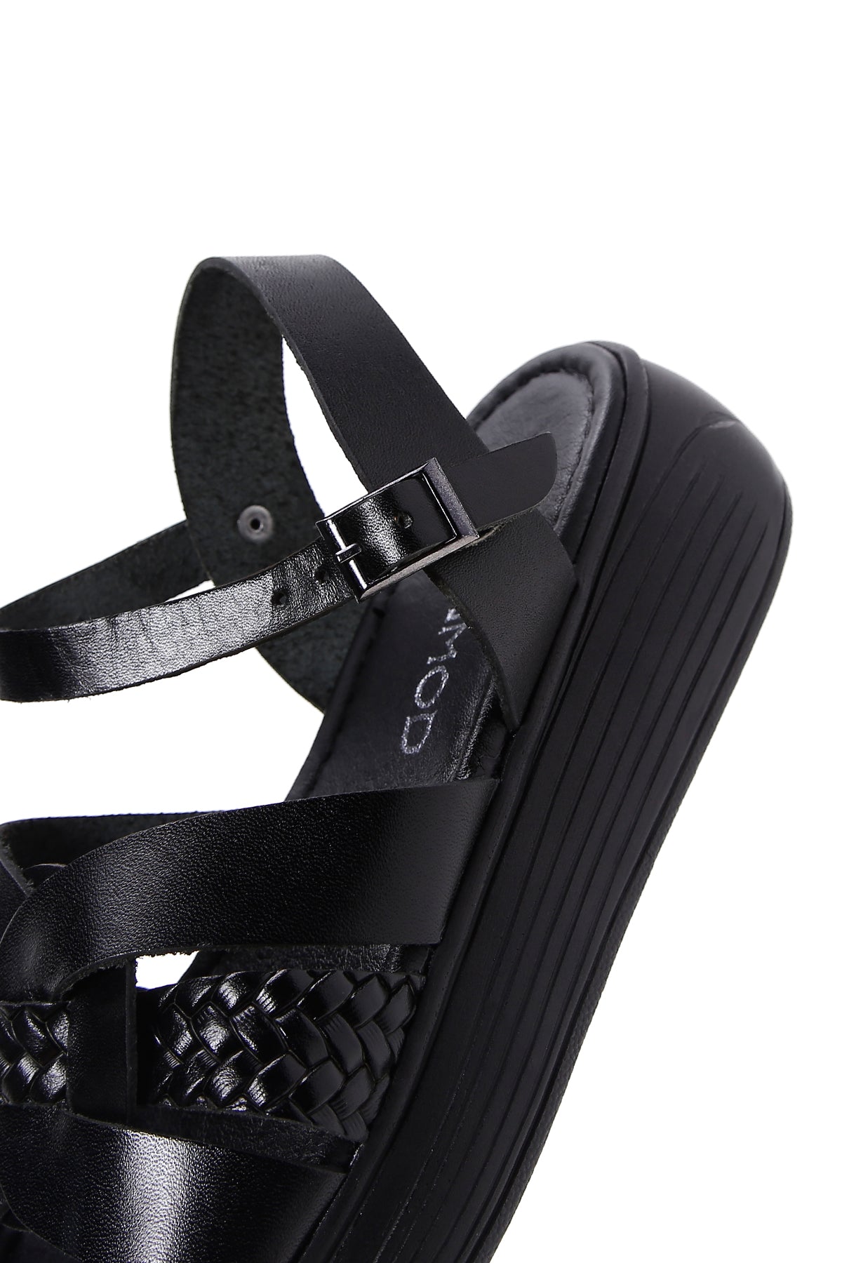 Women's Black Ankle Strap Leather Sandals