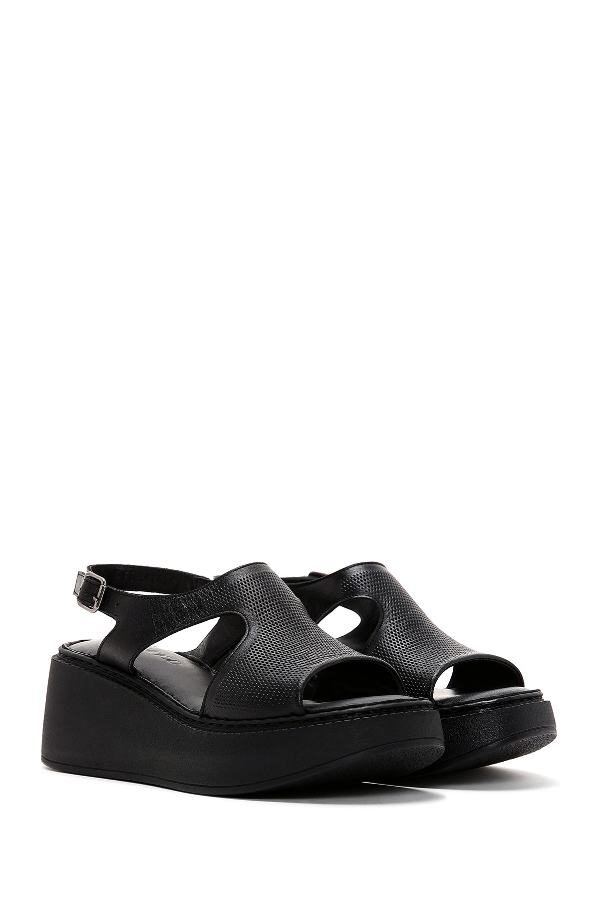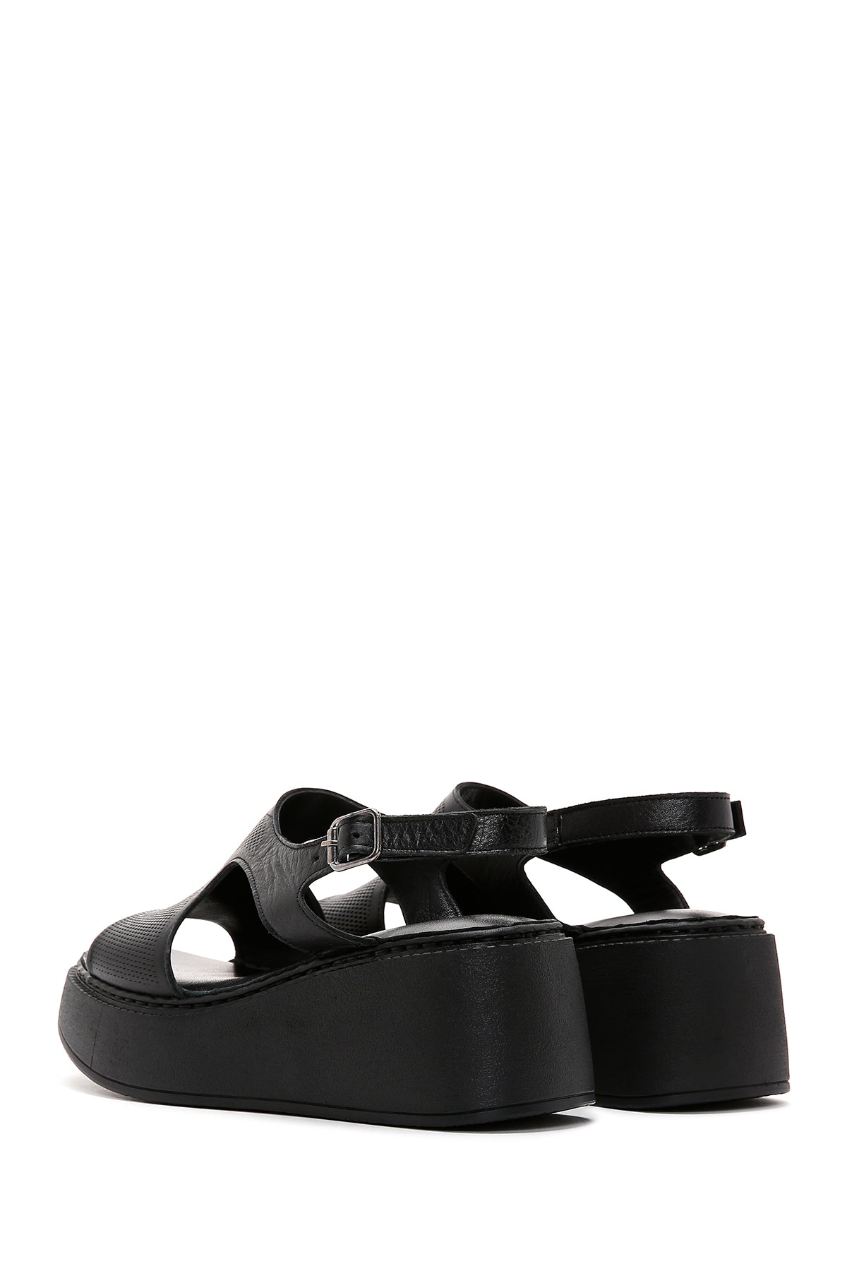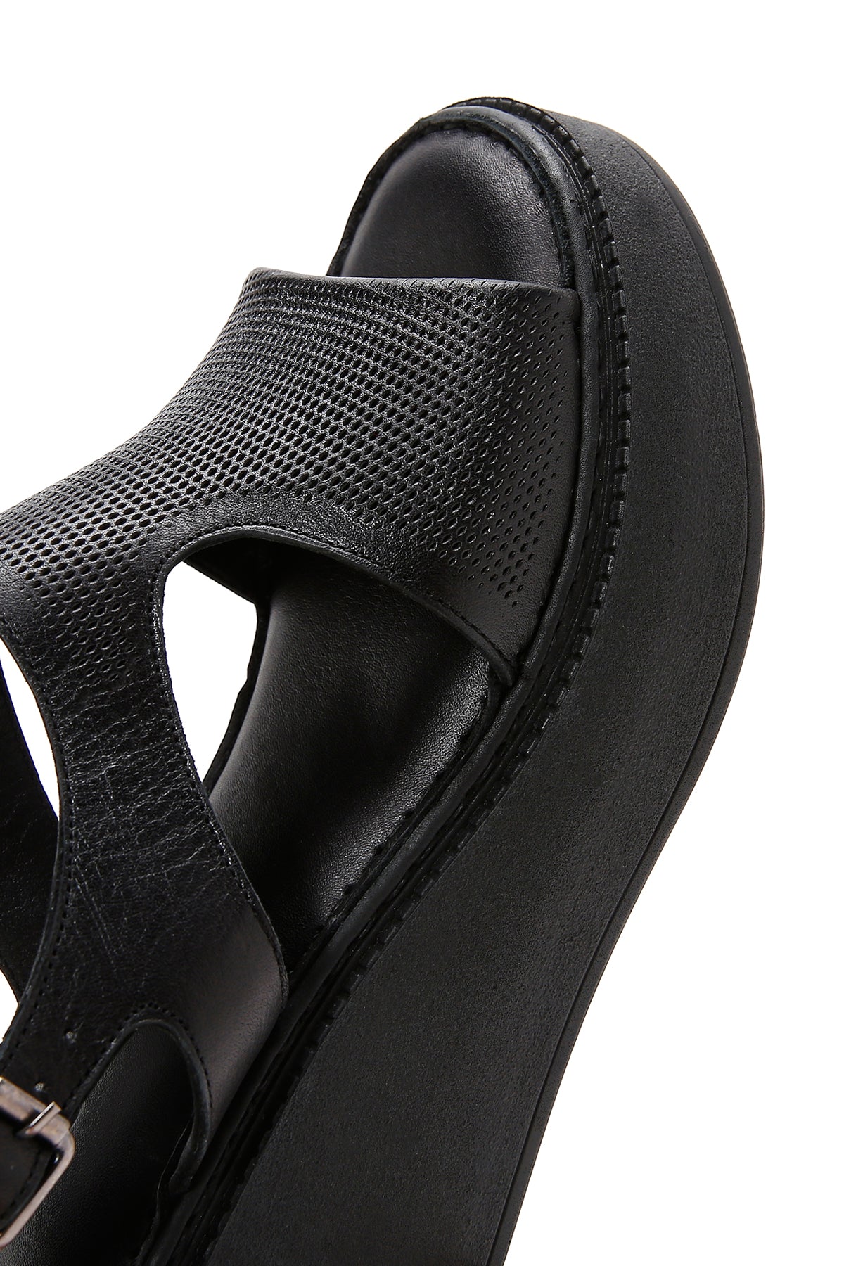 Women's Black Ankle Strap Wedge Heeled Leather Comfort Sandals