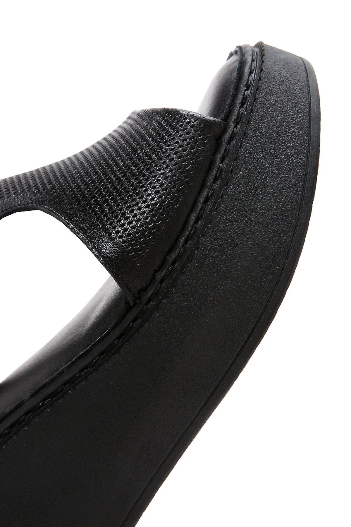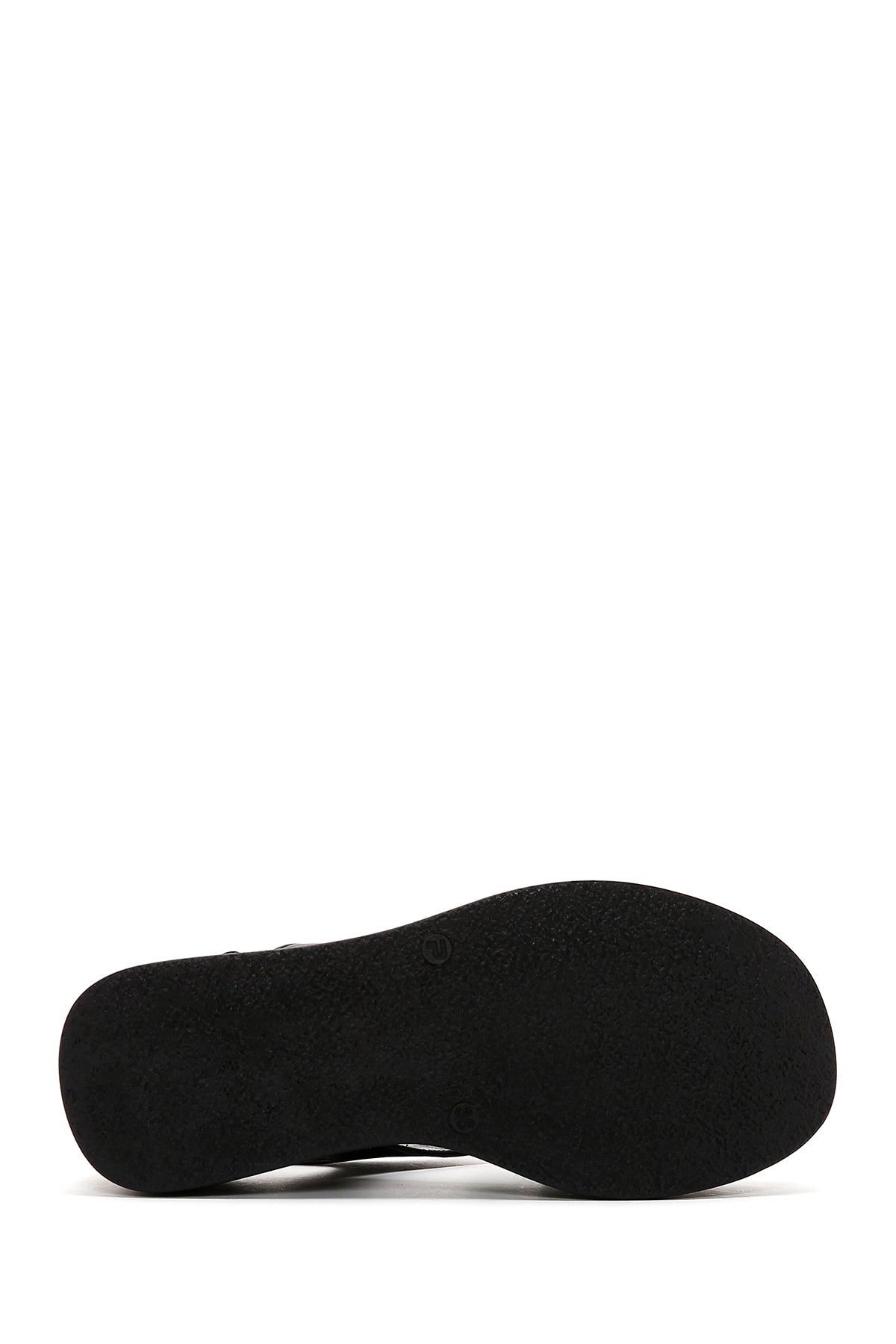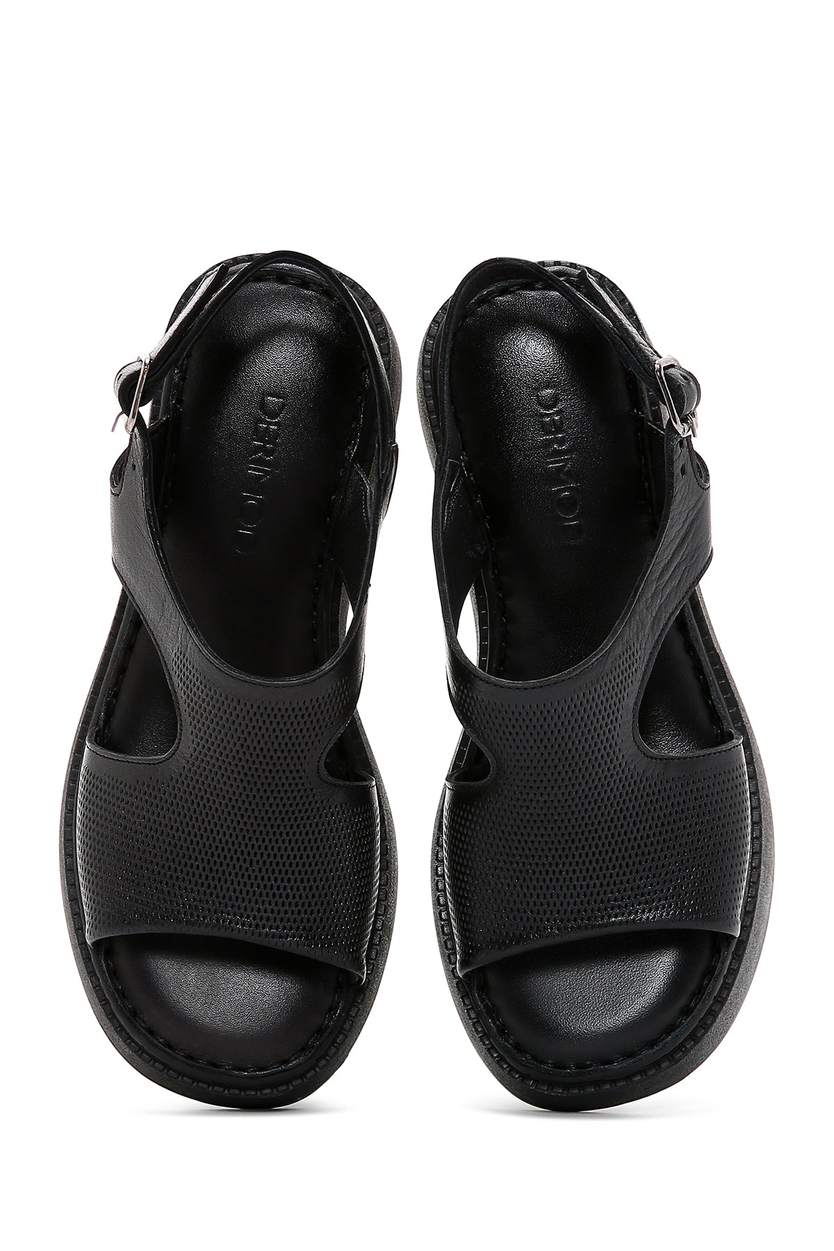 Women's Black Ankle Strap Wedge Heeled Leather Comfort Sandals