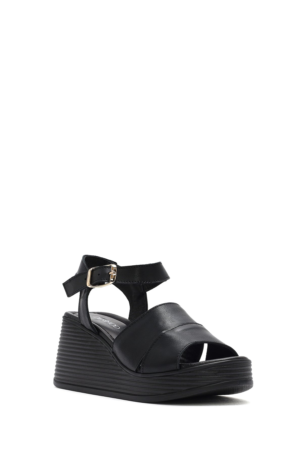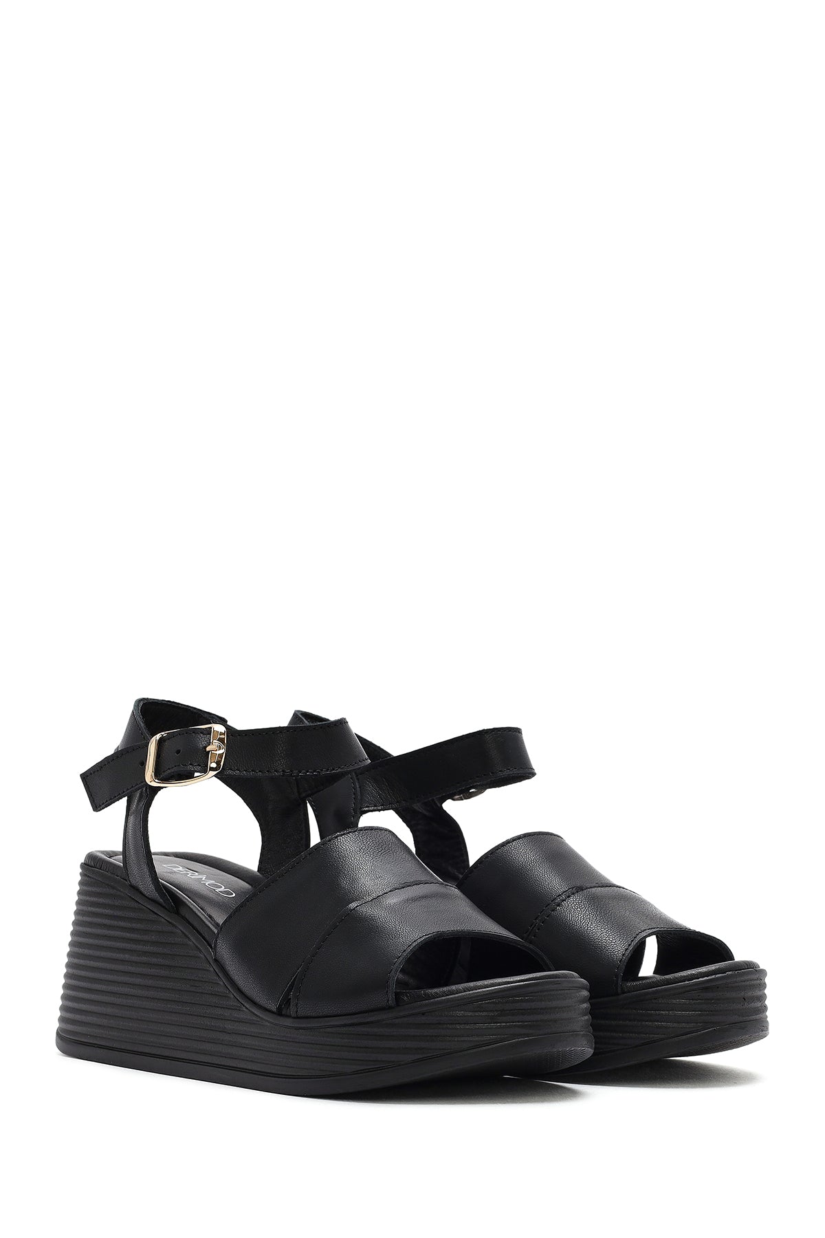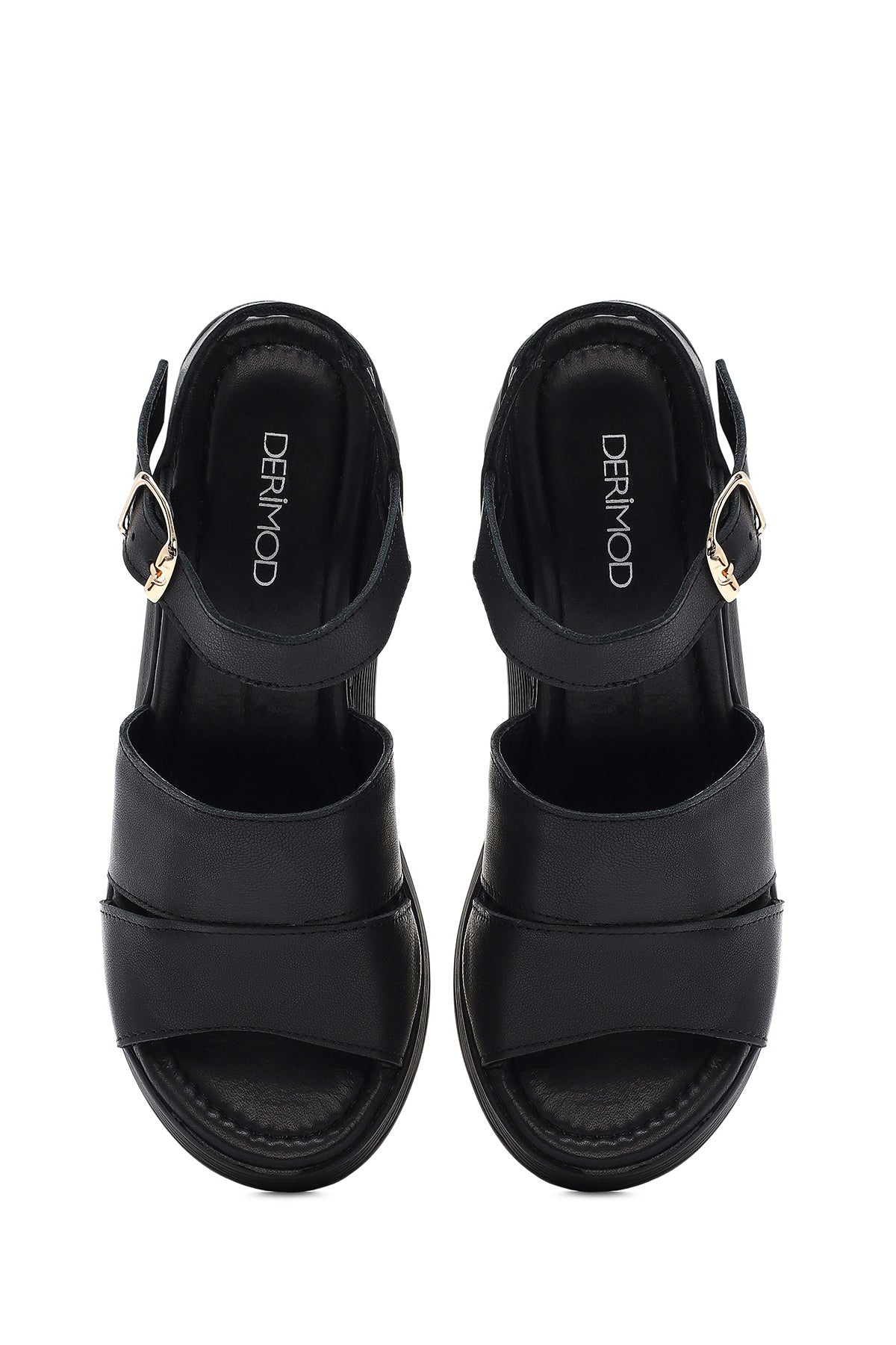 Show off your style with Derimod's Women's Black Ankle Strap Wedge Heeled Leather Sandals, which offer elegance and style together. Product code: 25SFD181118 11