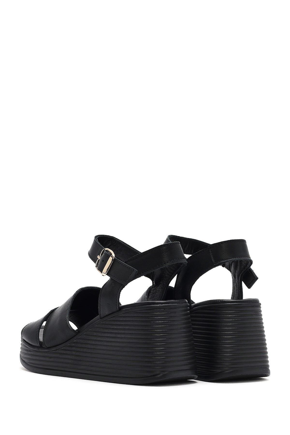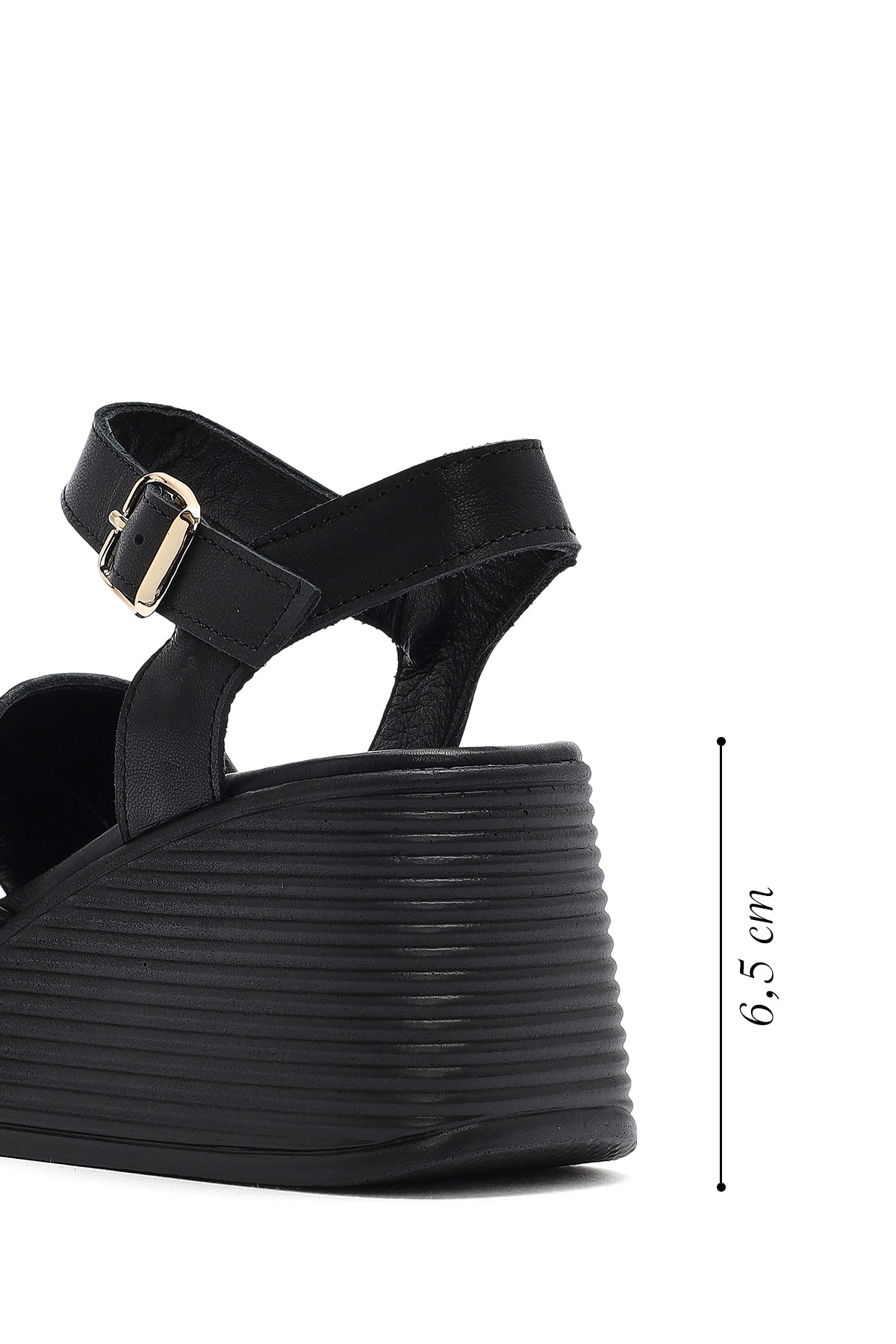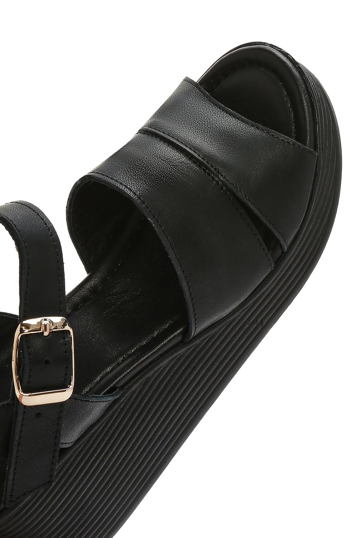 Show off your style with Derimod's Women's Black Ankle Strap Wedge Heeled Leather Sandals, which offer elegance and style together. Product code: 25SFD181118 11