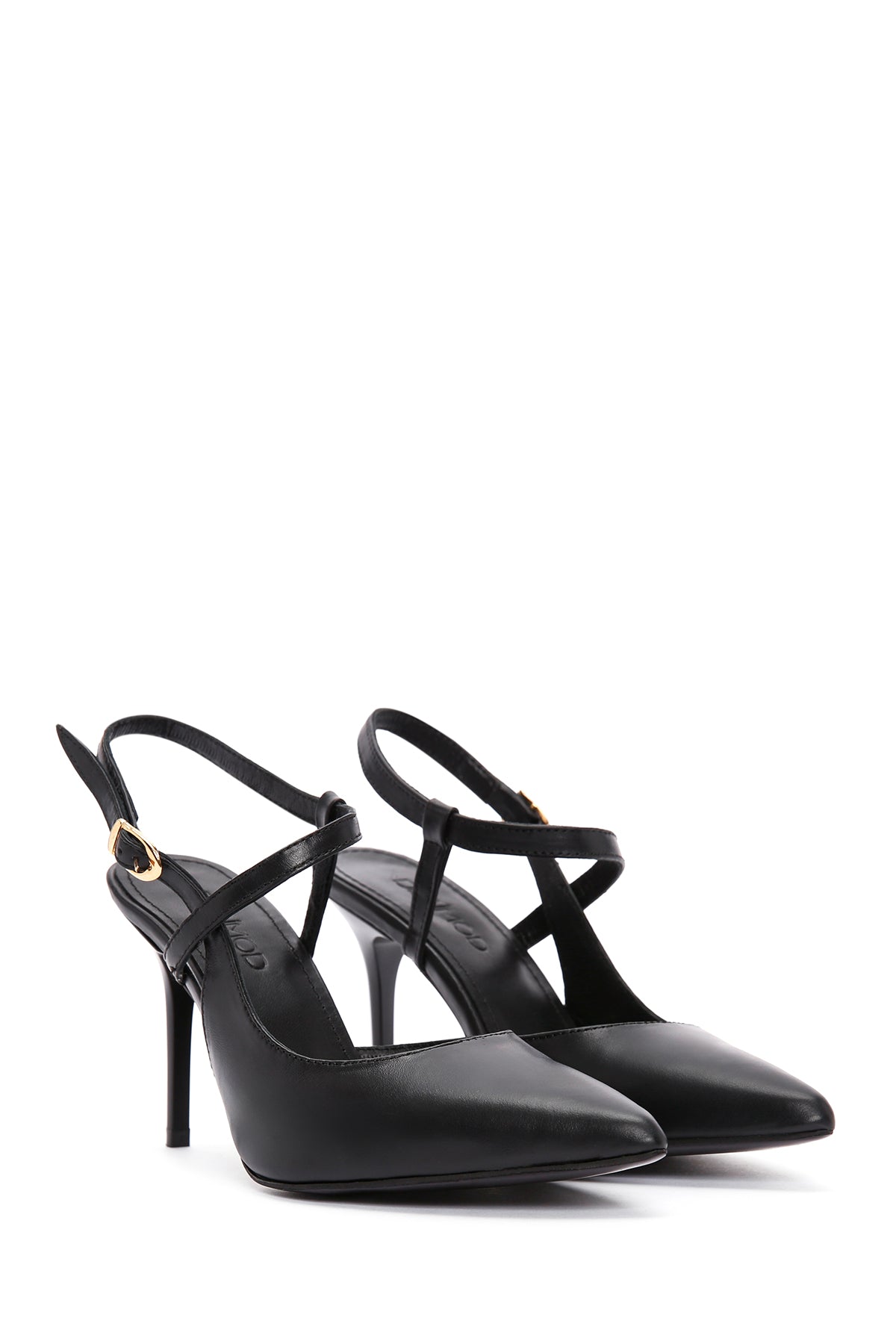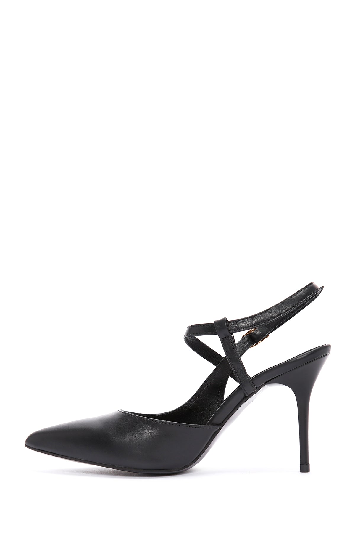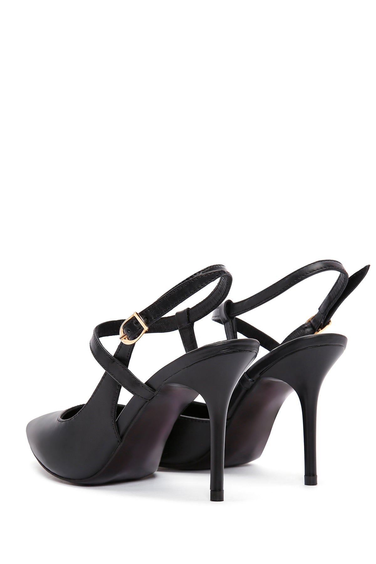Women's Black Ankle Strap Thin Heeled Leather Shoes