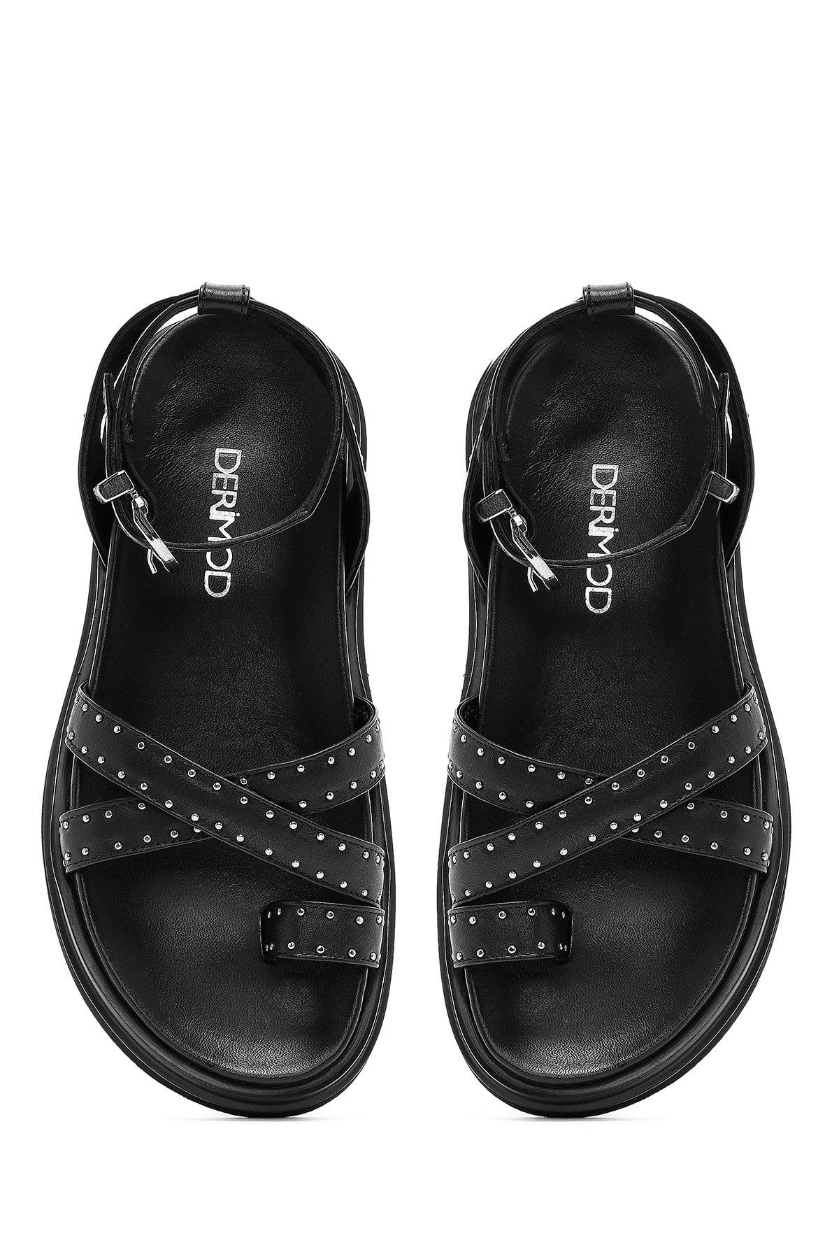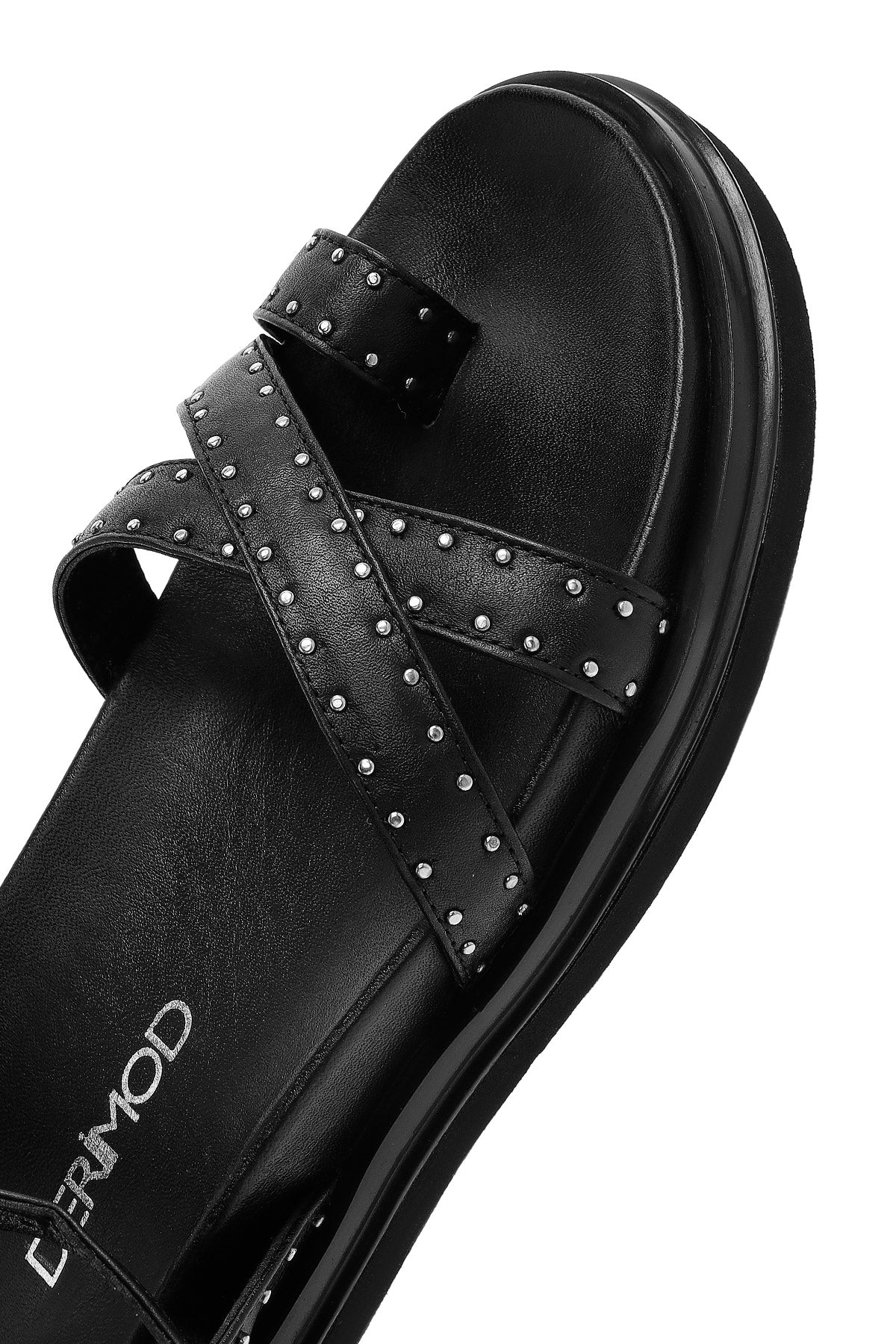 Derimod's elegance and style together Woman Black Wrist Buckle with Metal Detail Leather Show off your style with sandals. Product code: 25SFD270418 11