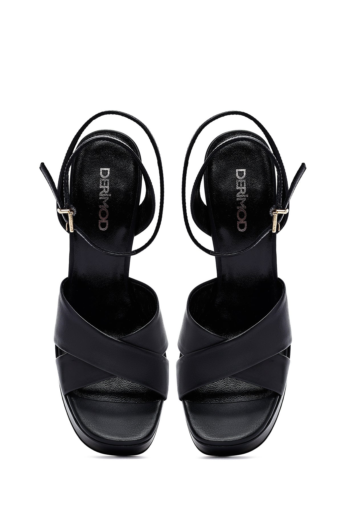 Derimod's elegance and style together Woman Black Platform High Heels with Ankle Buckle Leather Show off your style with sandals. Product code: 25SFD120418 11