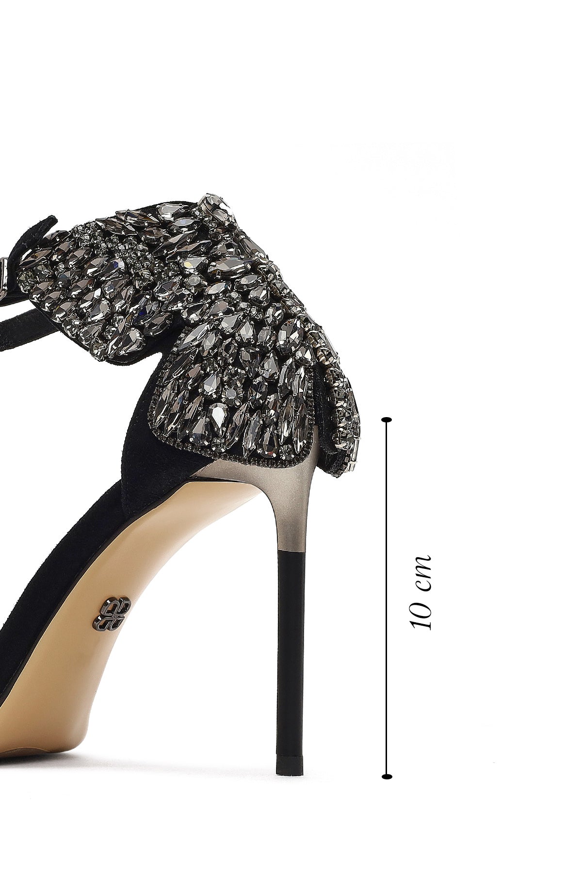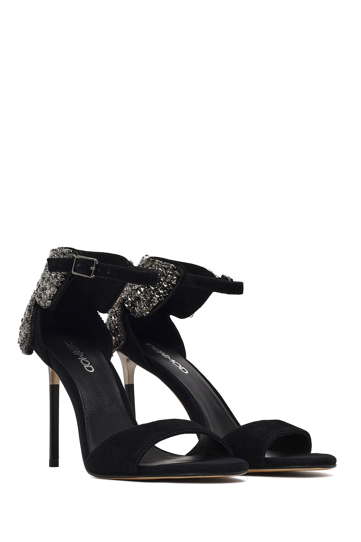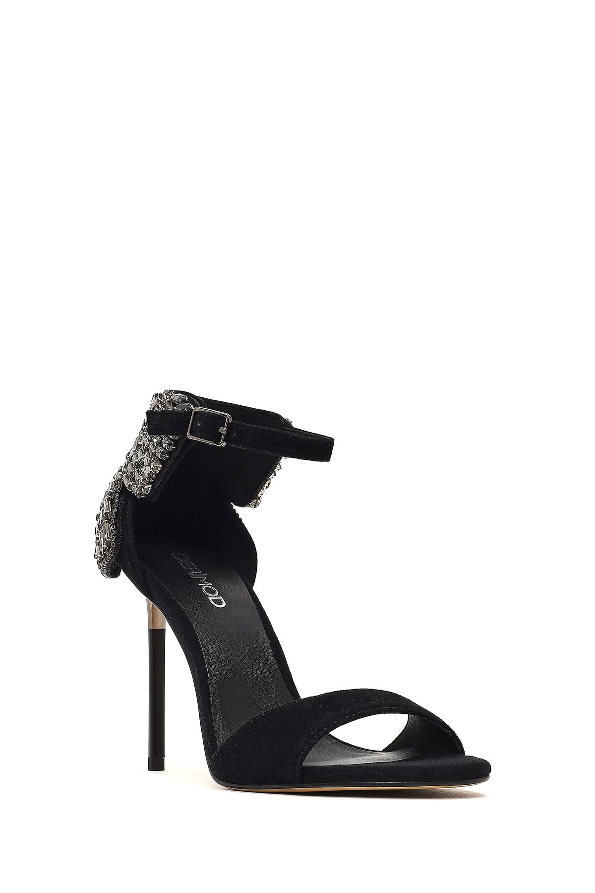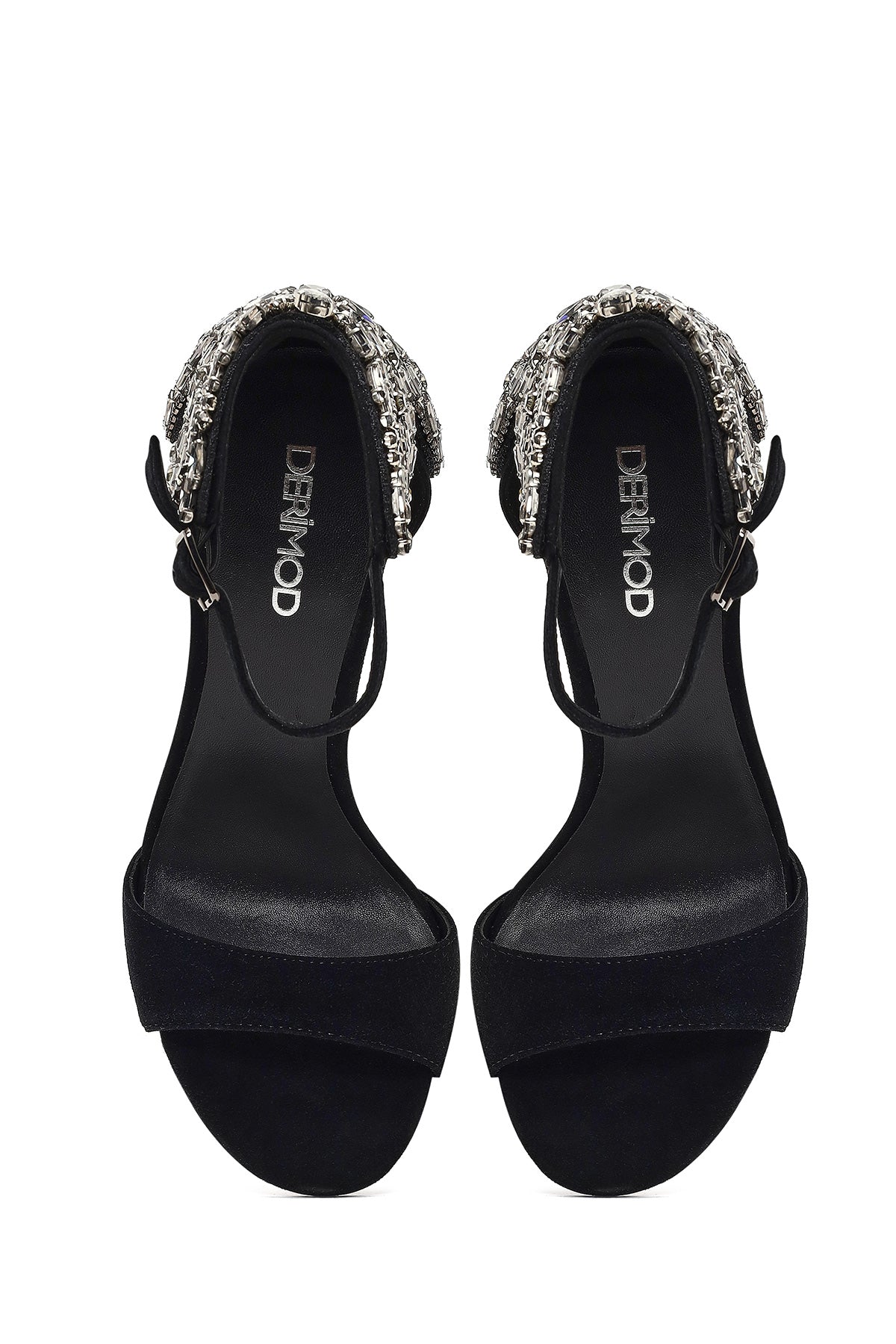 Express your style with the Women's Black Ankle Buckle Stone High Thin Heel Suede Leather Shoe that combines Derimod's Elegance and Sophistication. Product code: 25WFD490810 11