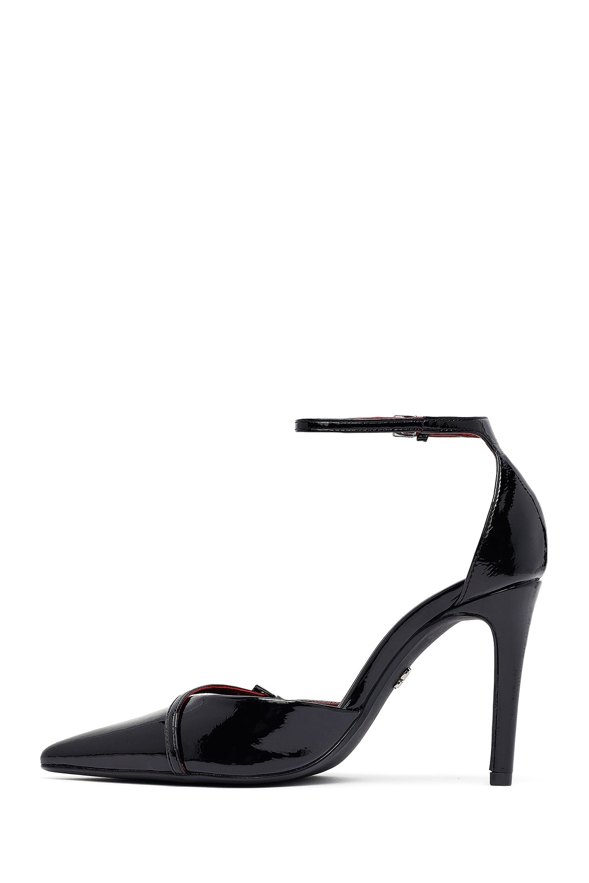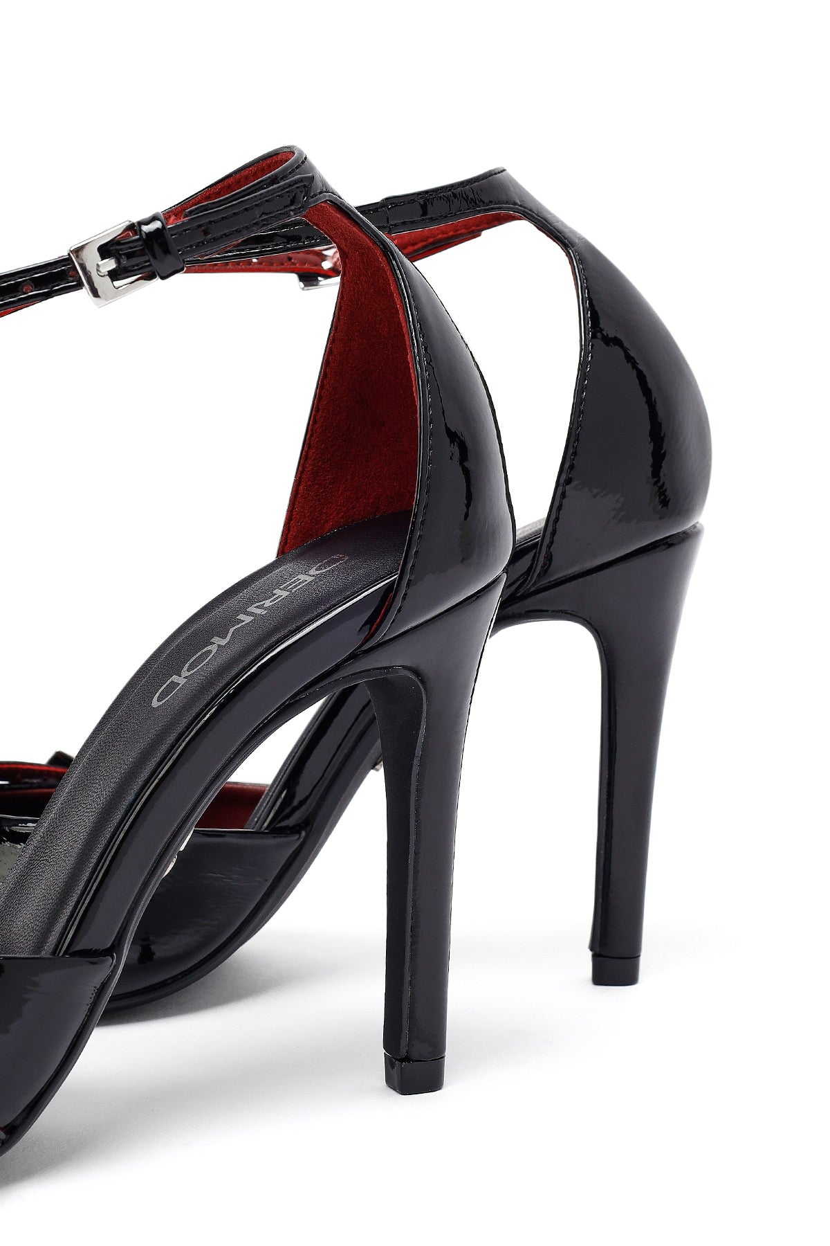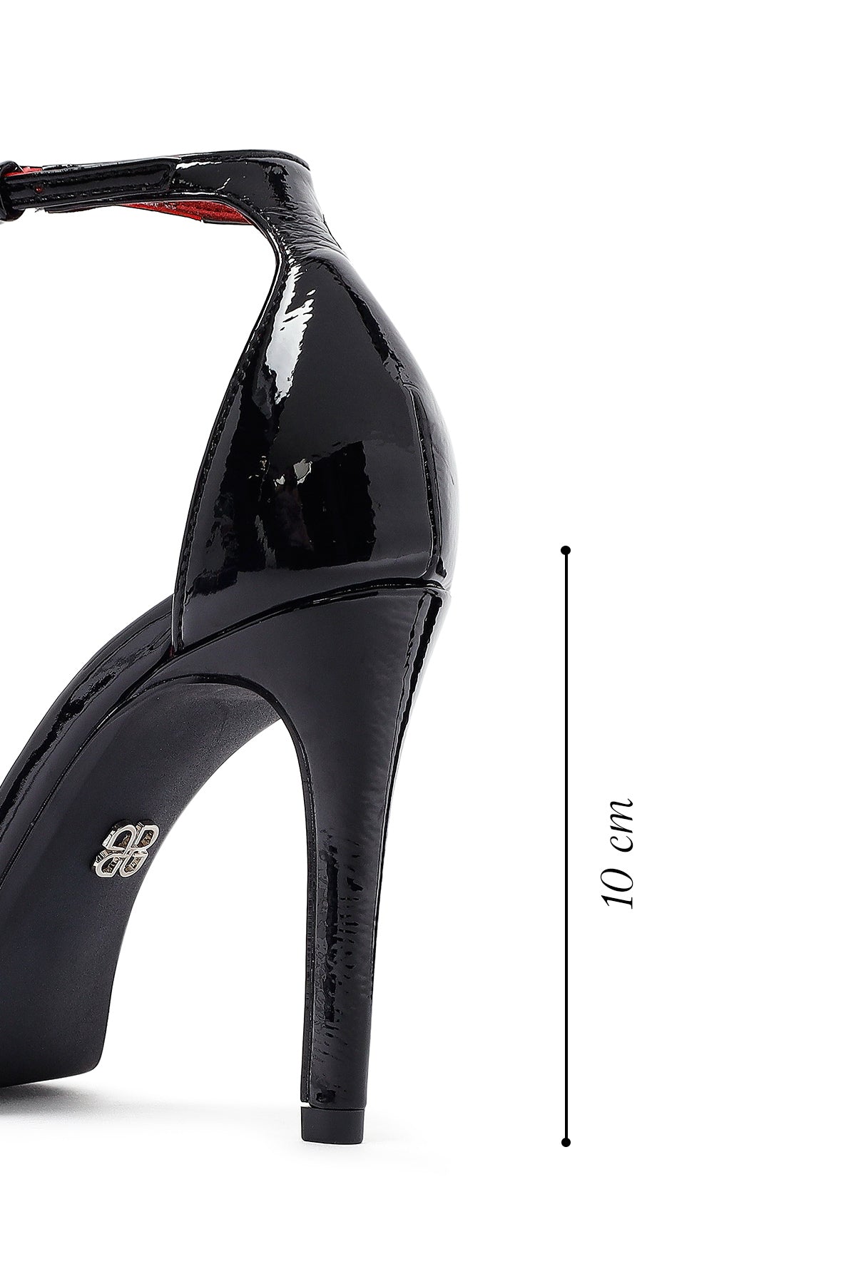 From Derimod's autumn collection, the black stiletto model designed with patent leather offers an elegant look with its 10 cm high thin heel. The model, which shows a feminine stance with its thin ankle strap and minimal buckle detail, promises quality use with its leather inner lining. The stiletto, which has modern lines with its pointed toe shape, offers a wide range of use from office outfits to invitation dresses, from classic suits to special occasion dresses. It can be used indoors during autumn and winter seasons. Product code: 25AFD440316