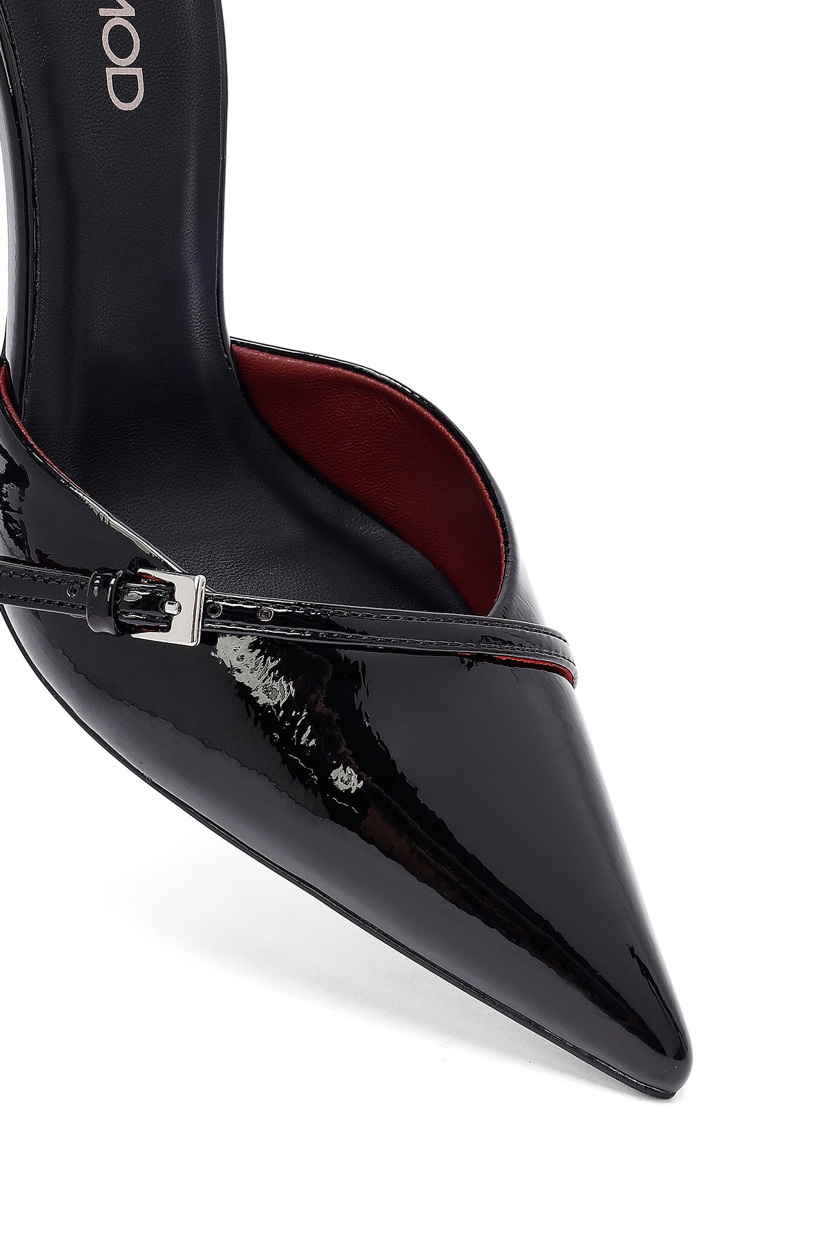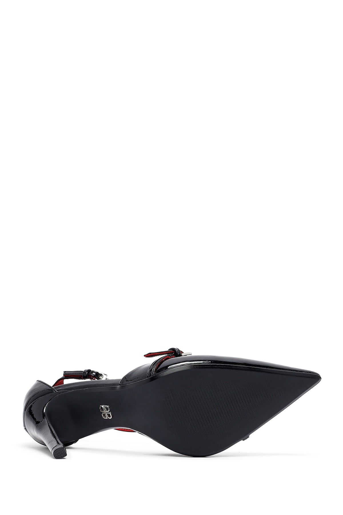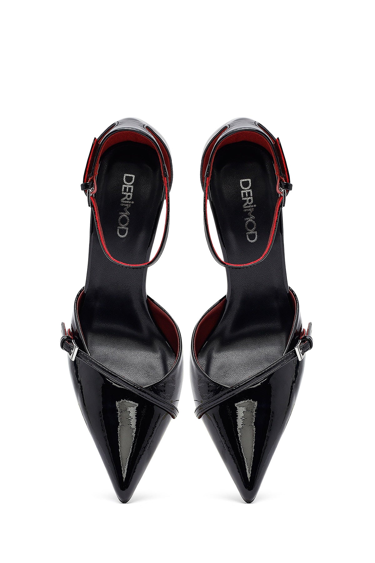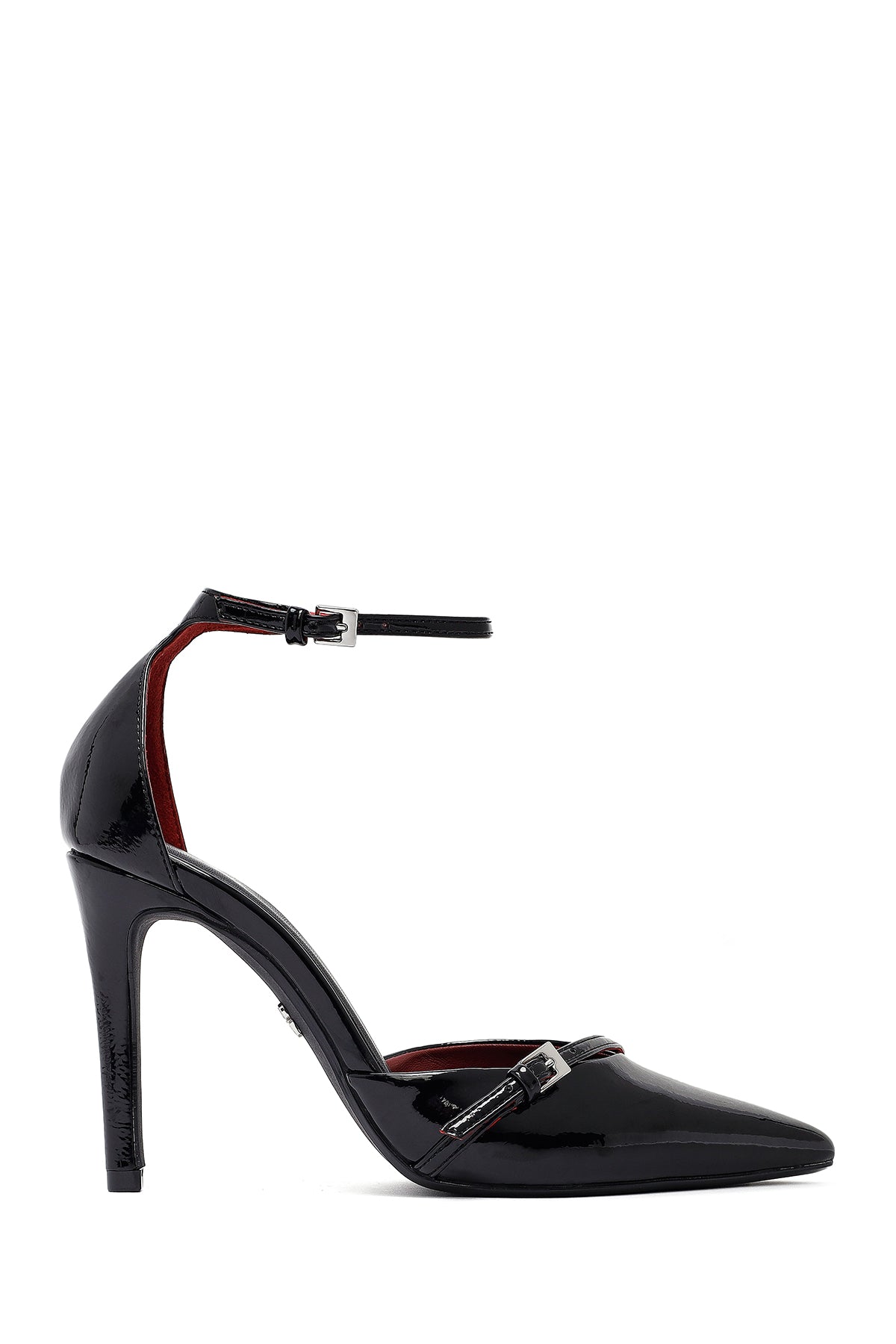 From Derimod's autumn collection, the black stiletto model designed with patent leather offers an elegant look with its 10 cm high thin heel. The model, which shows a feminine stance with its thin ankle strap and minimal buckle detail, promises quality use with its leather inner lining. The stiletto, which has modern lines with its pointed toe shape, offers a wide range of use from office outfits to invitation dresses, from classic suits to special occasion dresses. It can be used indoors during autumn and winter seasons. Product code: 25AFD440316
