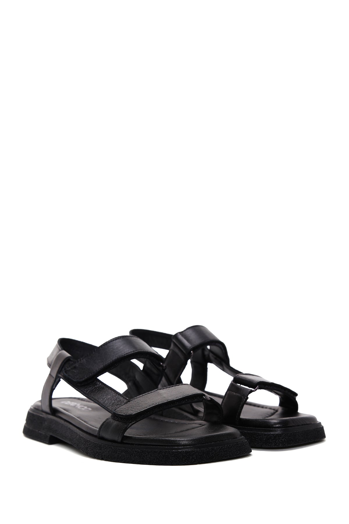 Women's Black Double Strap Leather Comfort Sandals