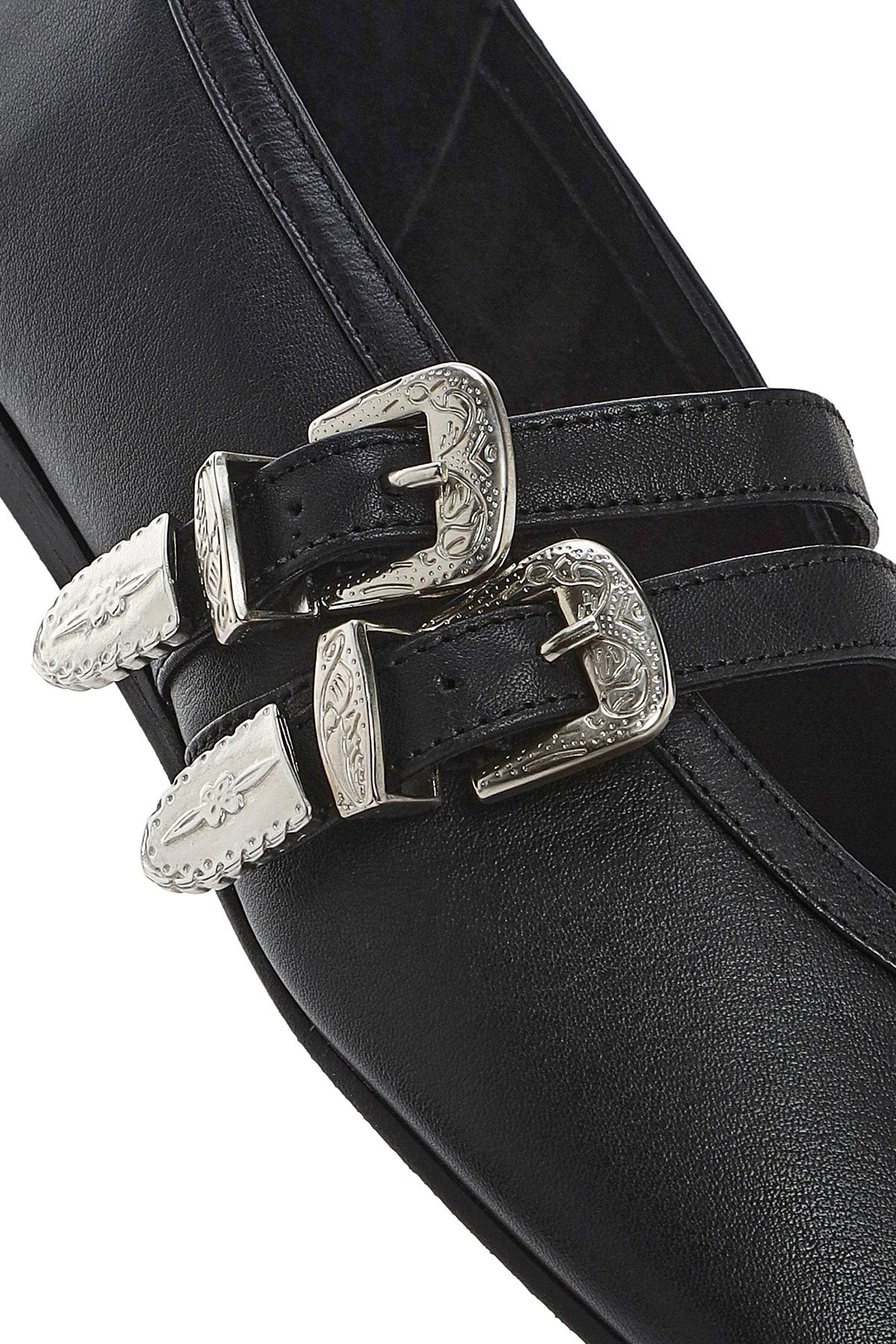 From Derimod's summer collection, the black ballet flat model designed using screwed leather offers a design suitable for daily use with its 1.5 cm high sole. The model, which displays a modern look with the double buckle detail on the upper part, provides a comfortable use with its synthetic inner lining. With its classic lines, it offers a wide range of use from the office to daily life, from business meetings to casual invitations. It can be used at any time of the day in spring and summer seasons. Product code: 25SFD140218