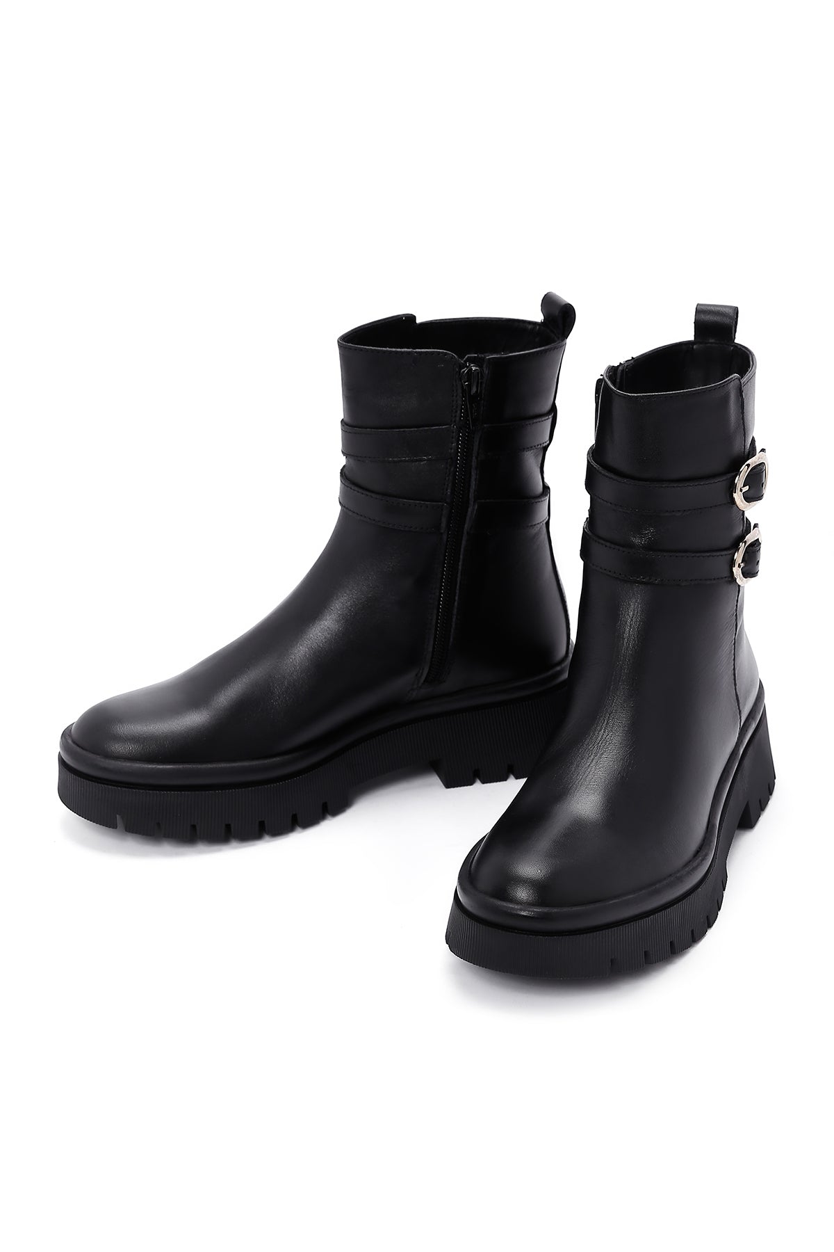 Show off your style with Derimod's Women's Black Double Buckle Zippered Casual Leather Boots, which offer style and elegance together. Product code: 23WFD162518 11