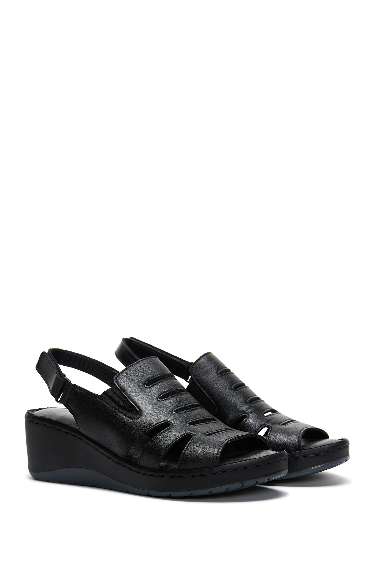 Show off your style with Derimod's Women's Black Leather Wedge Comfort Sandals, which offer elegance and elegance together. Product code: 23SFD340718 11
