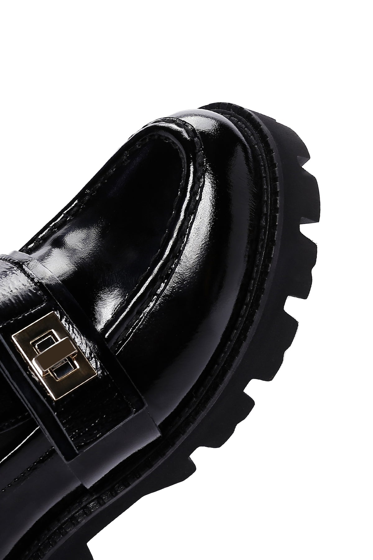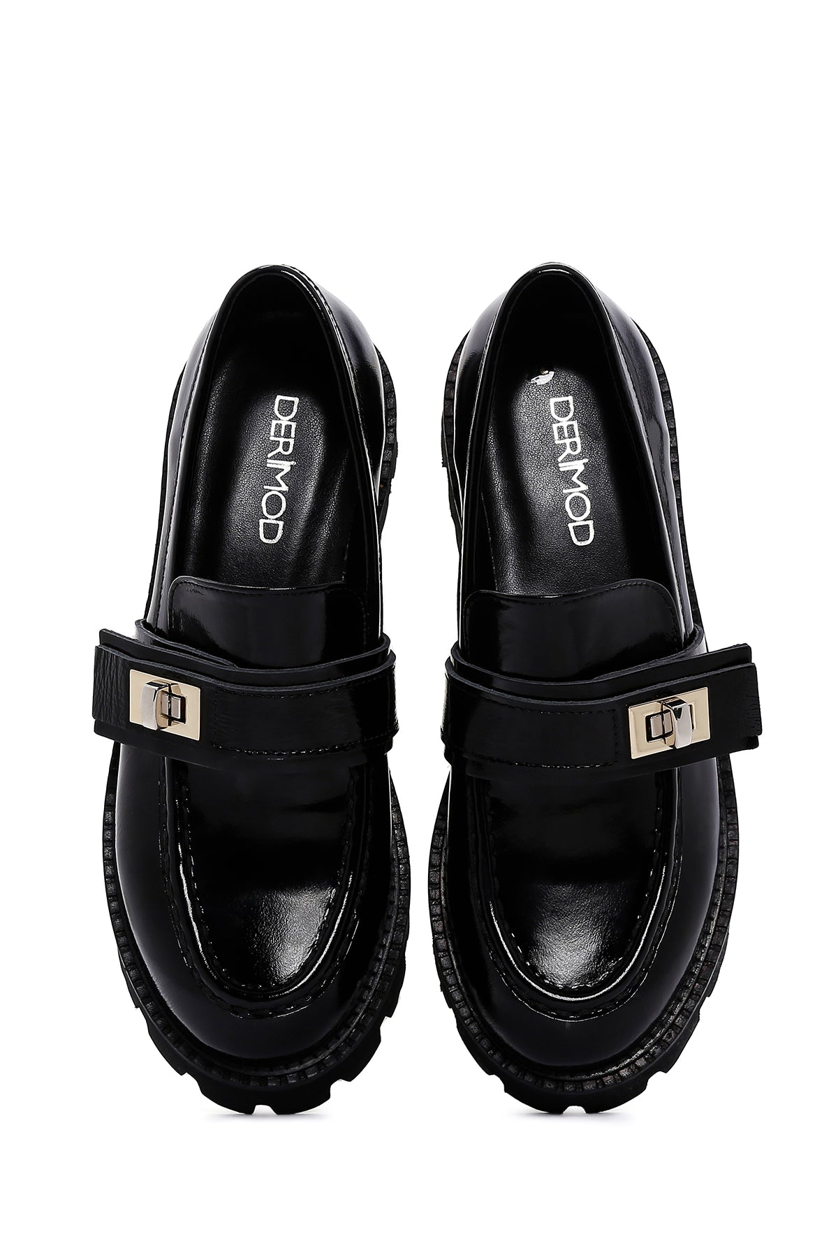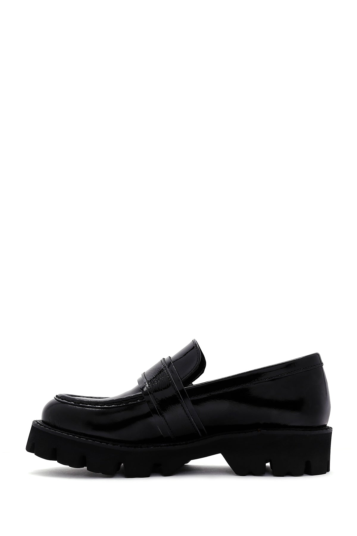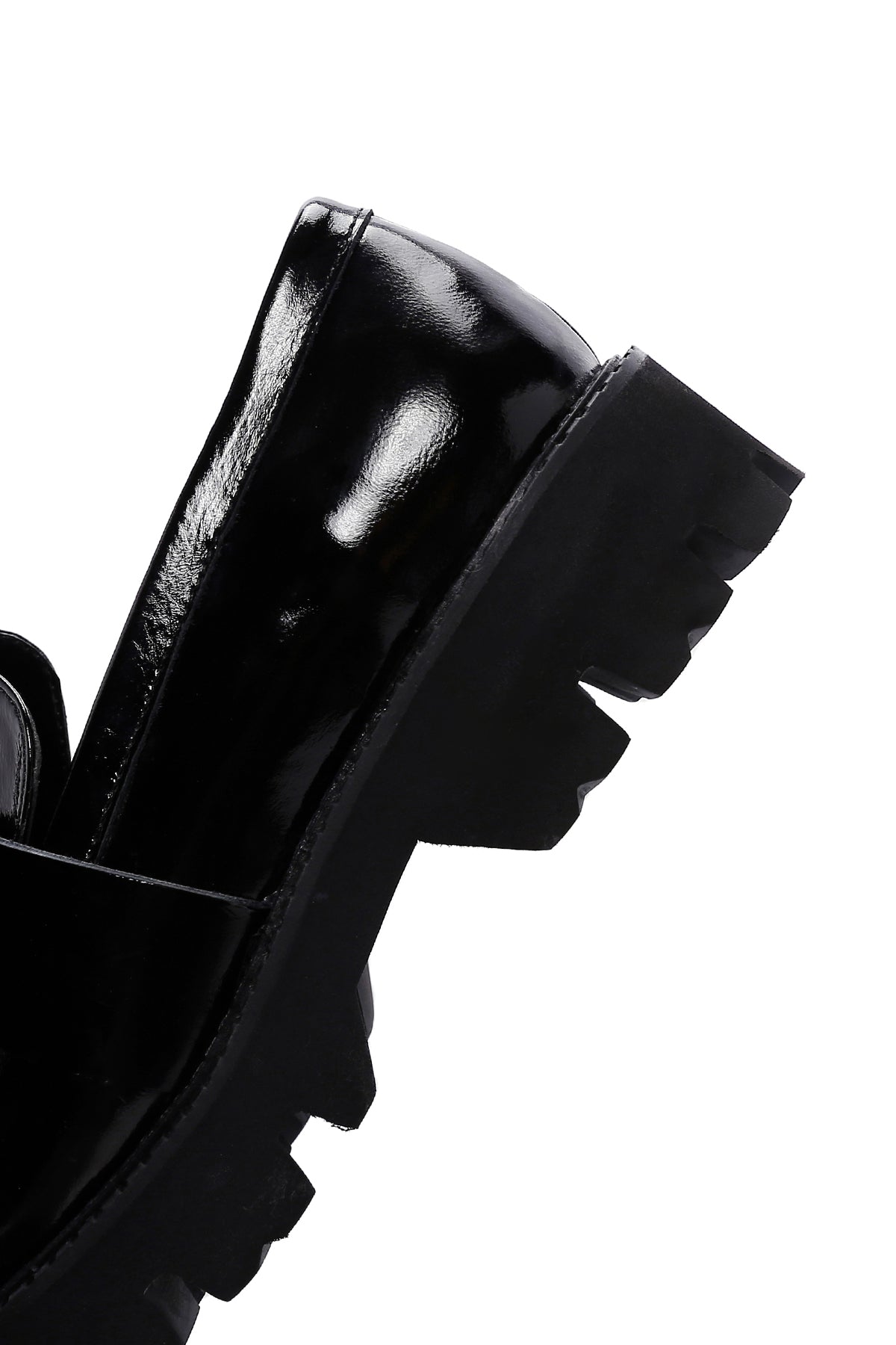 Women's Black Leather Thick Soled Patent Leather Casual Loafer