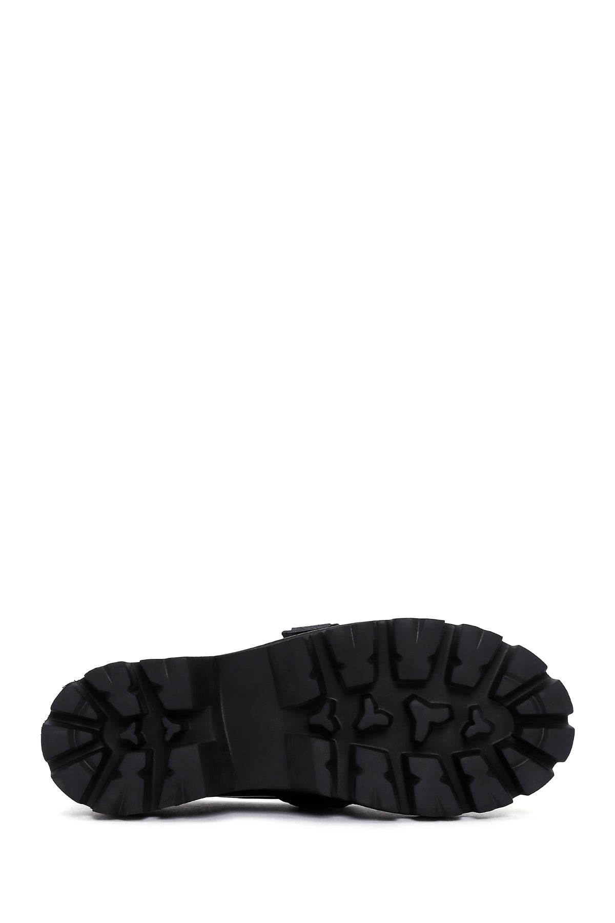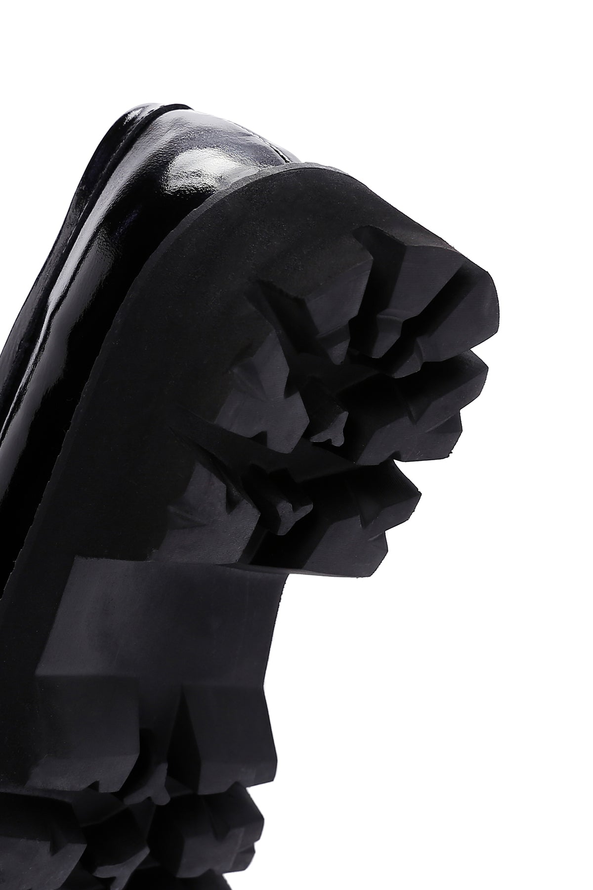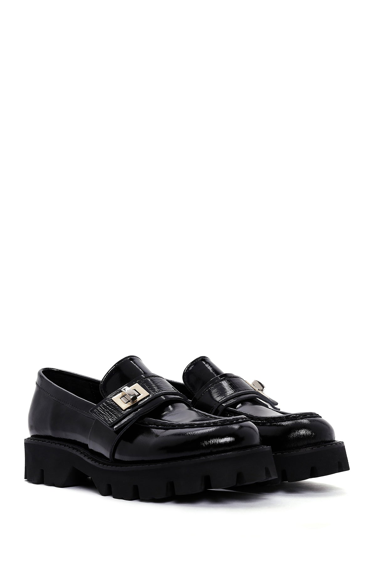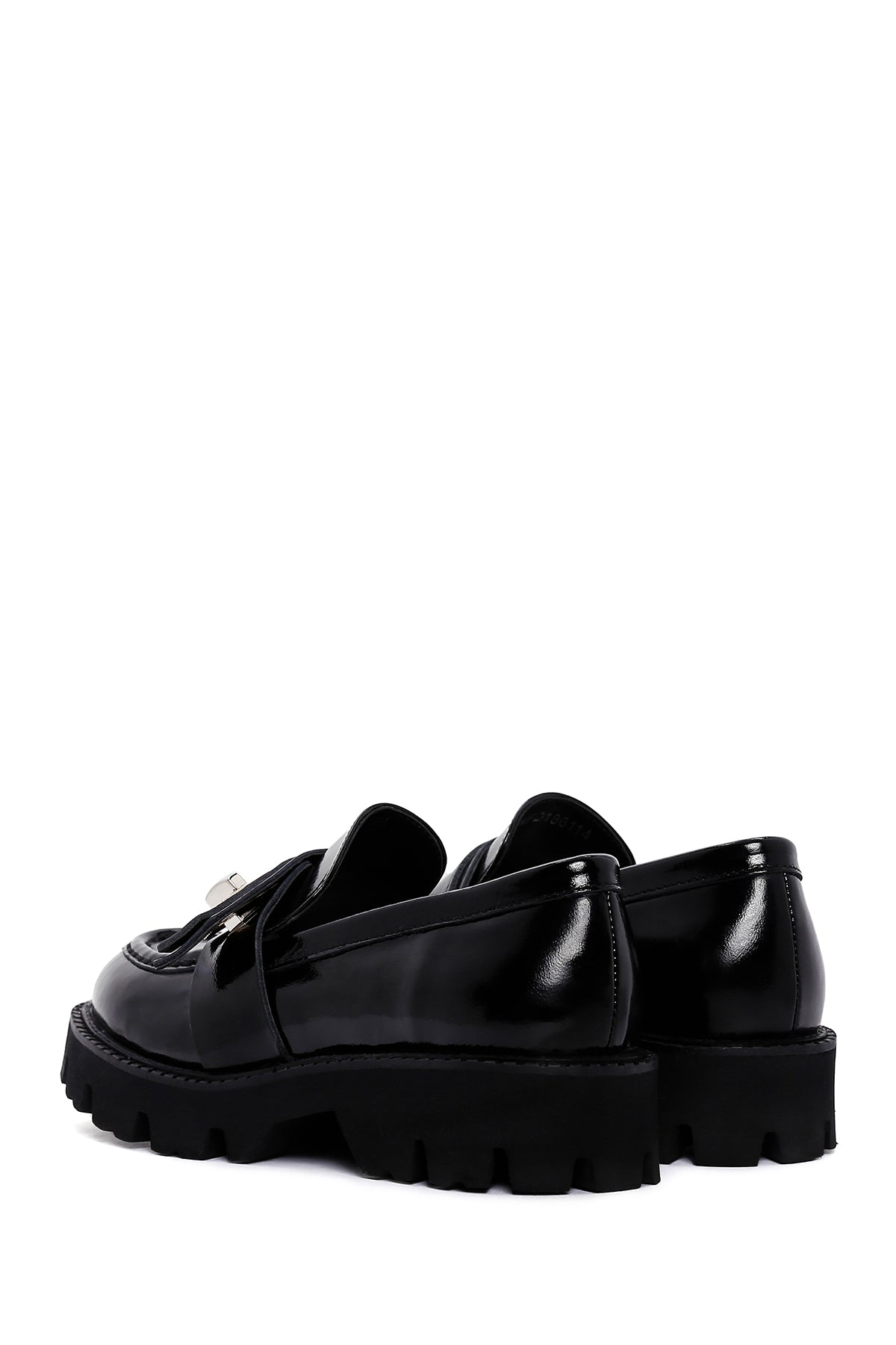 Women's Black Leather Thick Soled Patent Leather Casual Loafer