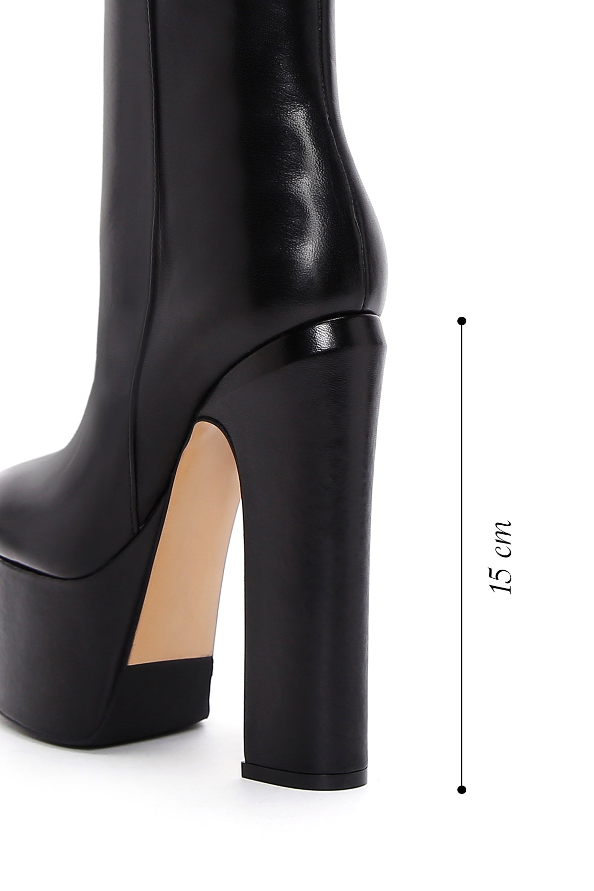 Show off your style with Derimod's Women's Black Leather Platform Heeled Boots, which offer elegance and elegance together. Product code: 22WFD102418 11