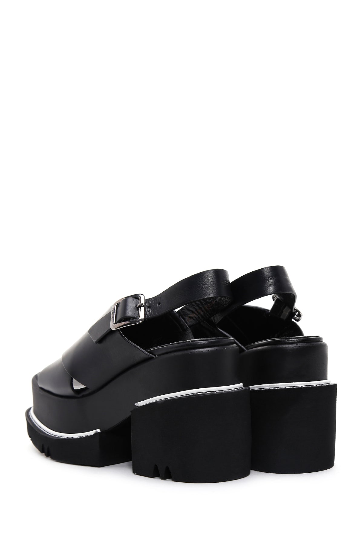 Show off your style with Derimod's Women's Black Leather Platform Heeled Sandals, which offer elegance and elegance together. Product code: 23SFD130818 11