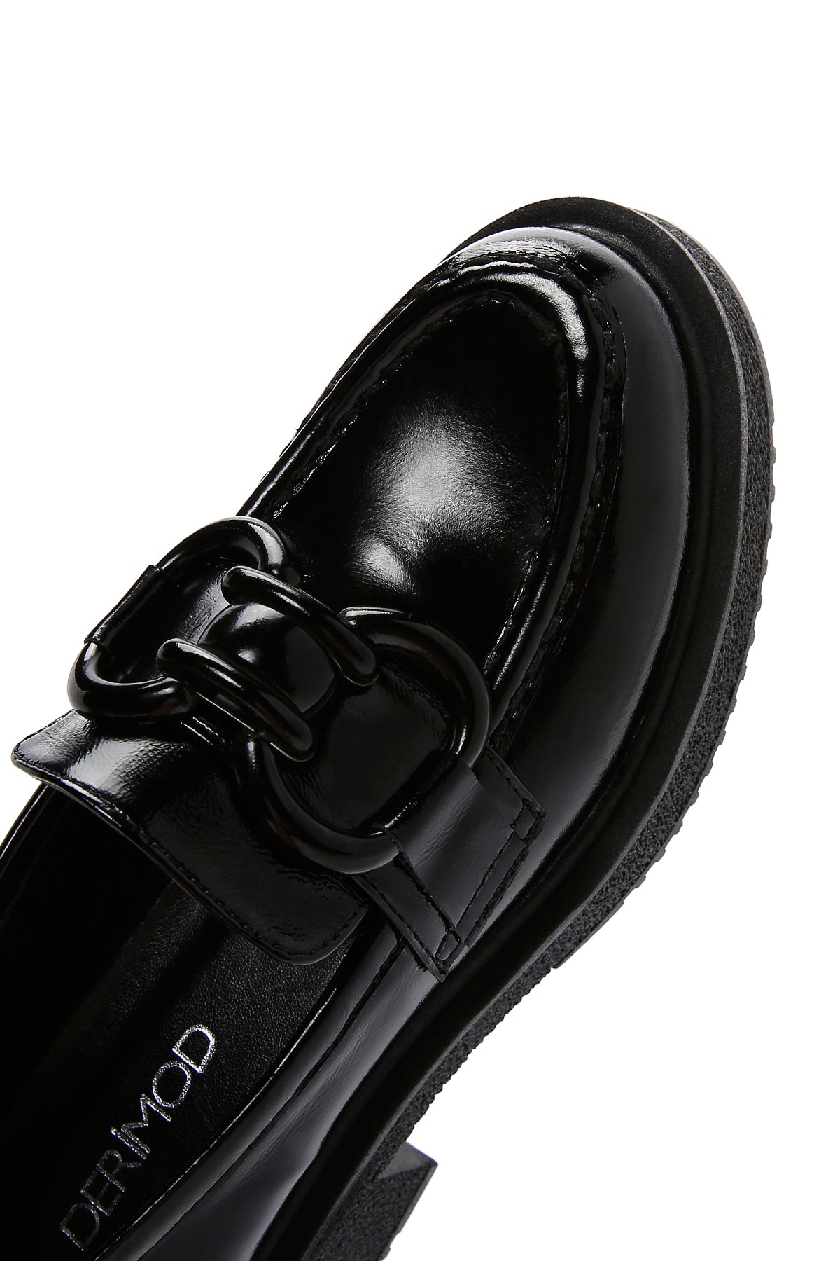 Show off your style with Derimod's Women's Black Leather Patent Leather Masculine Loafer, which offers style and elegance together. Product code: 23WFD191716 11