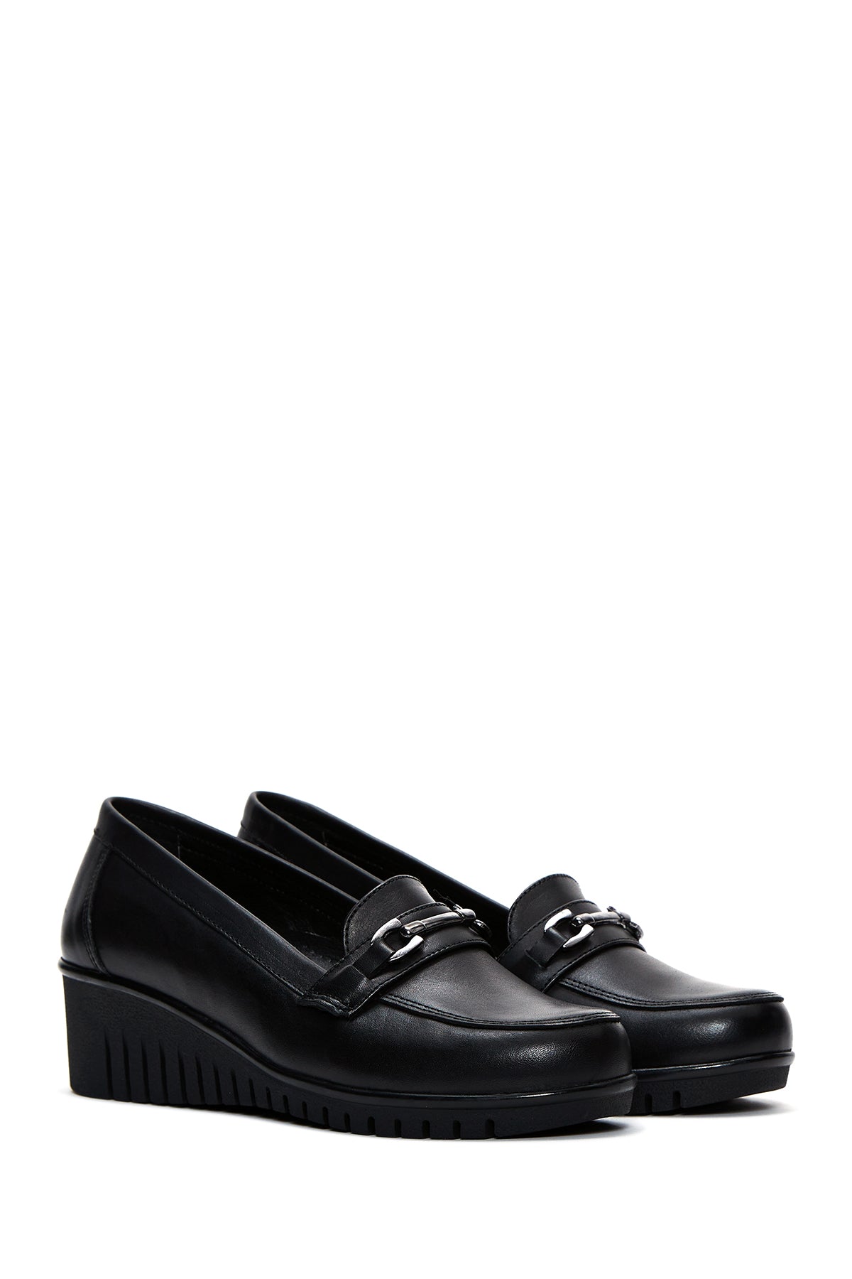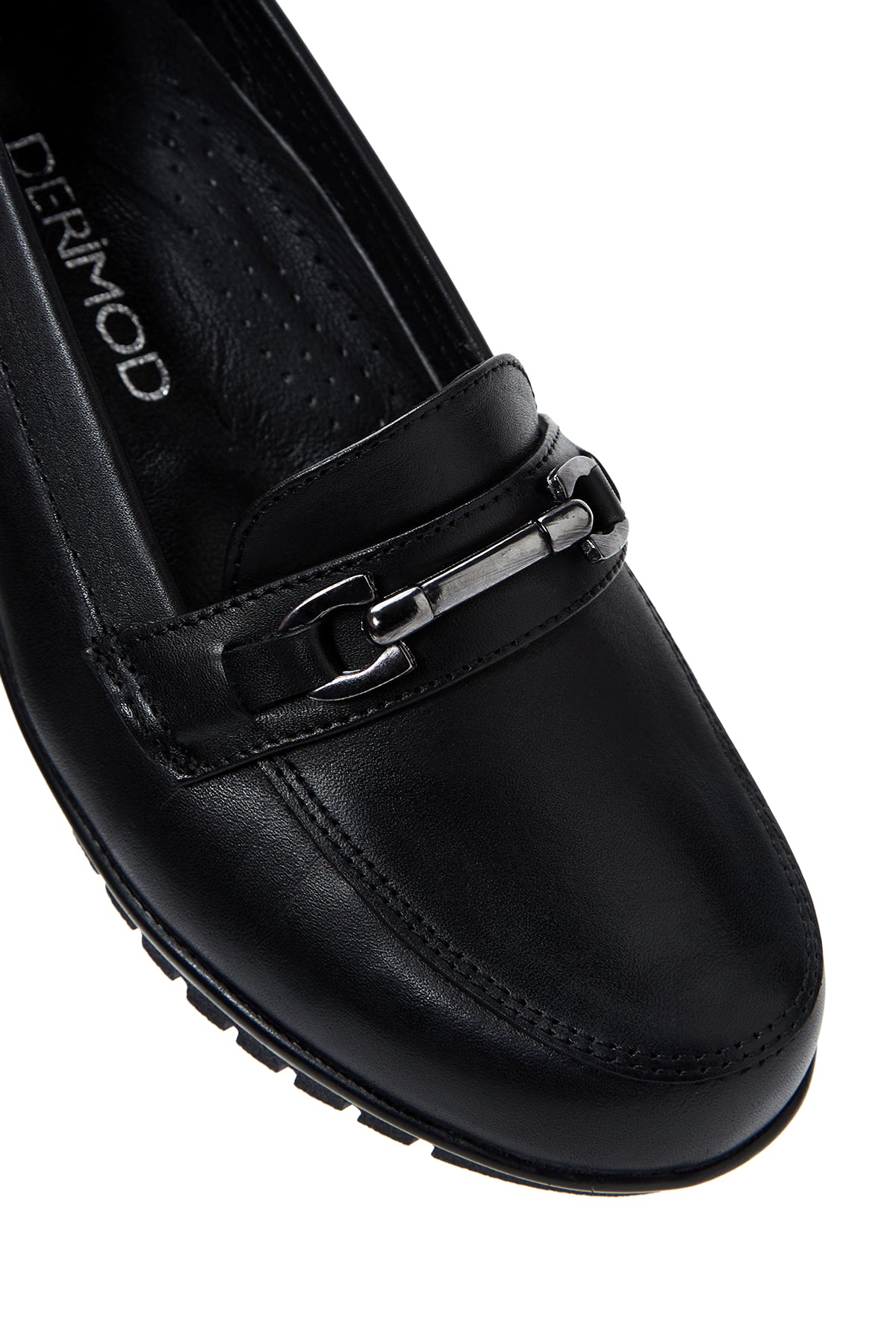 Show off your style with Derimod's Women's Black Leather Buckle Wedge Heeled Loafer, which offers style and elegance together. Product code: 23WFD410918 11