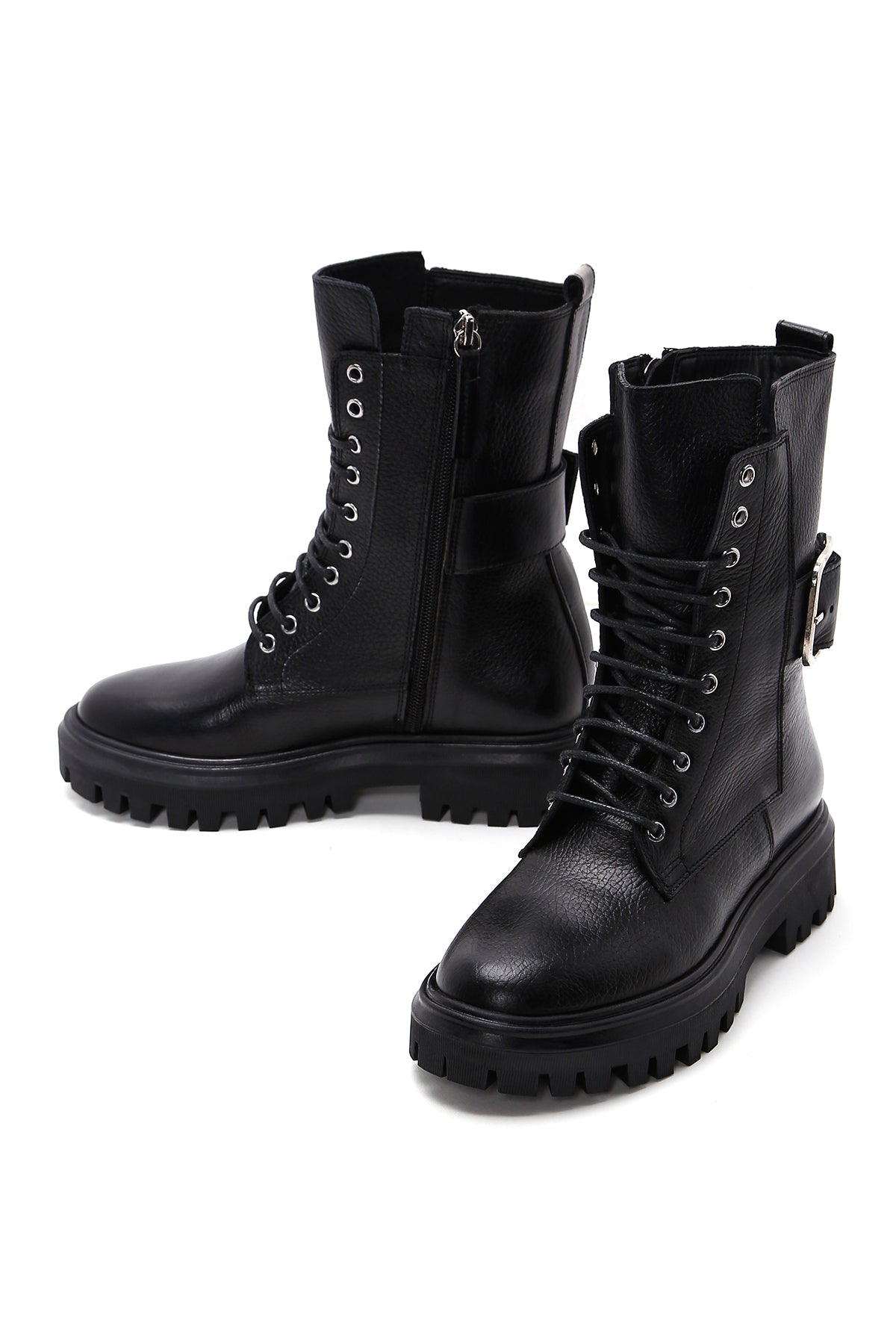 Show off your style with Derimod's Women's Black Leather Buckle Zippered Postal Boots, which offer style and elegance together. Product code: 23WFD1623FT 11