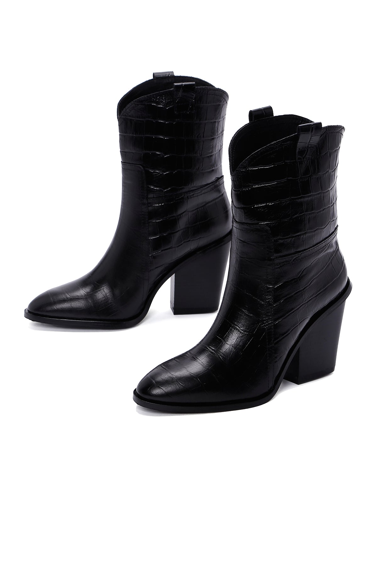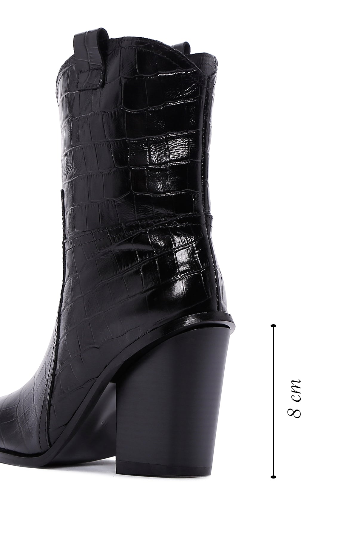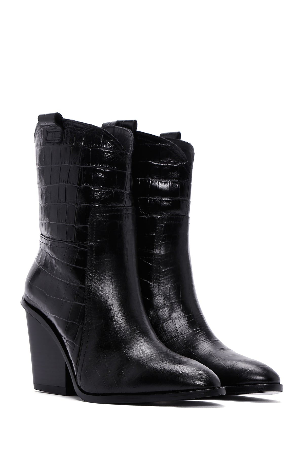 Show off your style with Derimod's Women's Black Leather Heeled Cowboy Boots, which offer style and elegance together. Product code: 23WFD1629E3 11