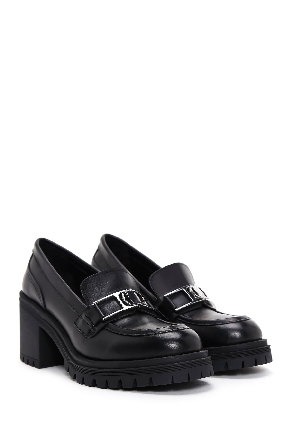 Show off your style with Derimod's Women's Black Leather Heeled Loafer, which offers elegance and elegance together. Product code: 23SFD180818 11