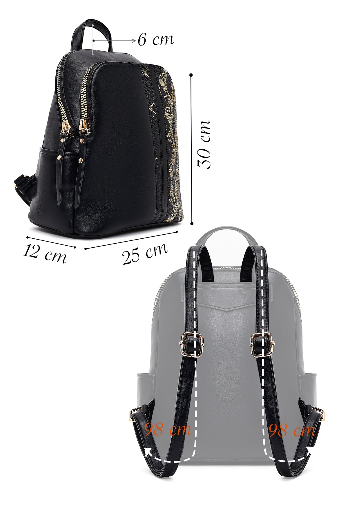Women's Black Patterned Backpack