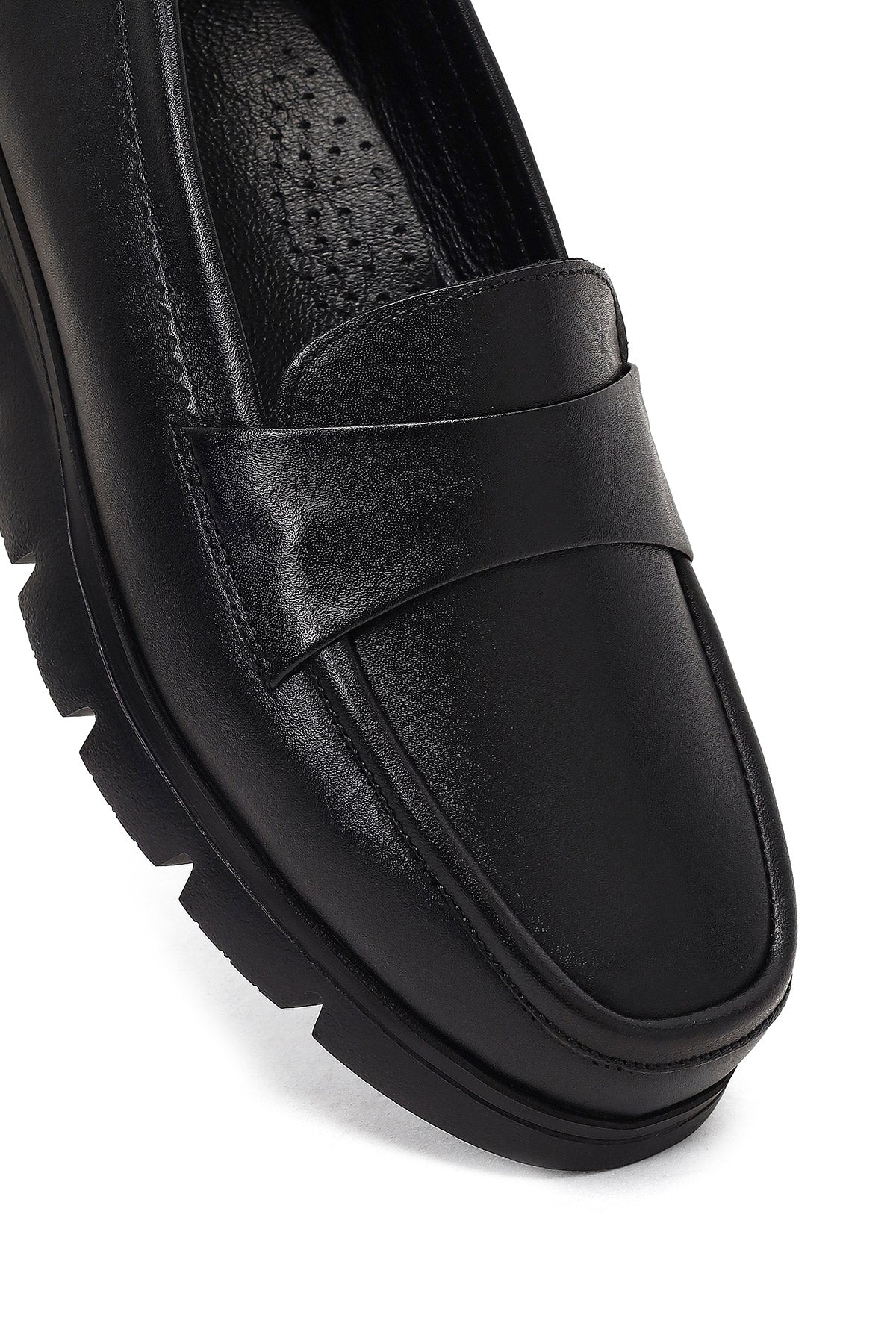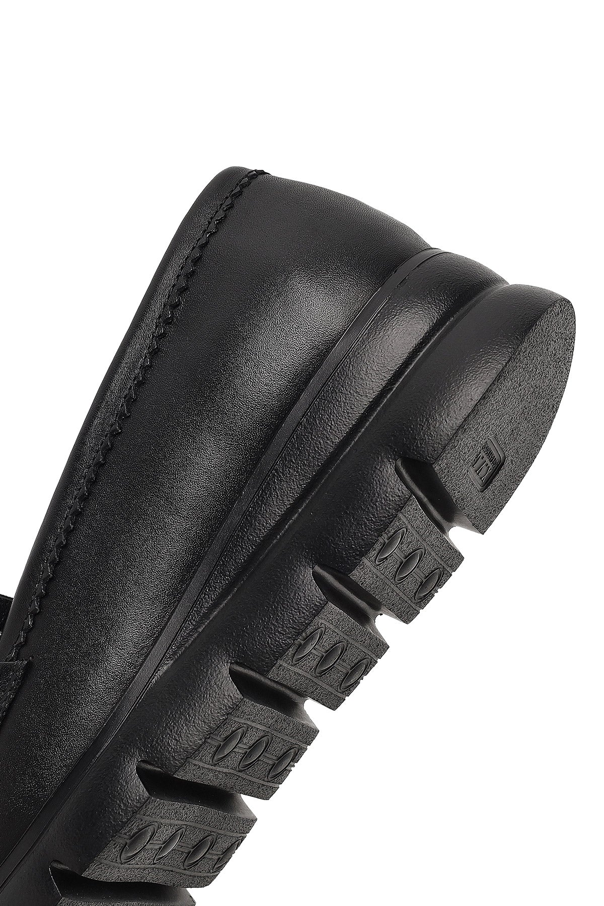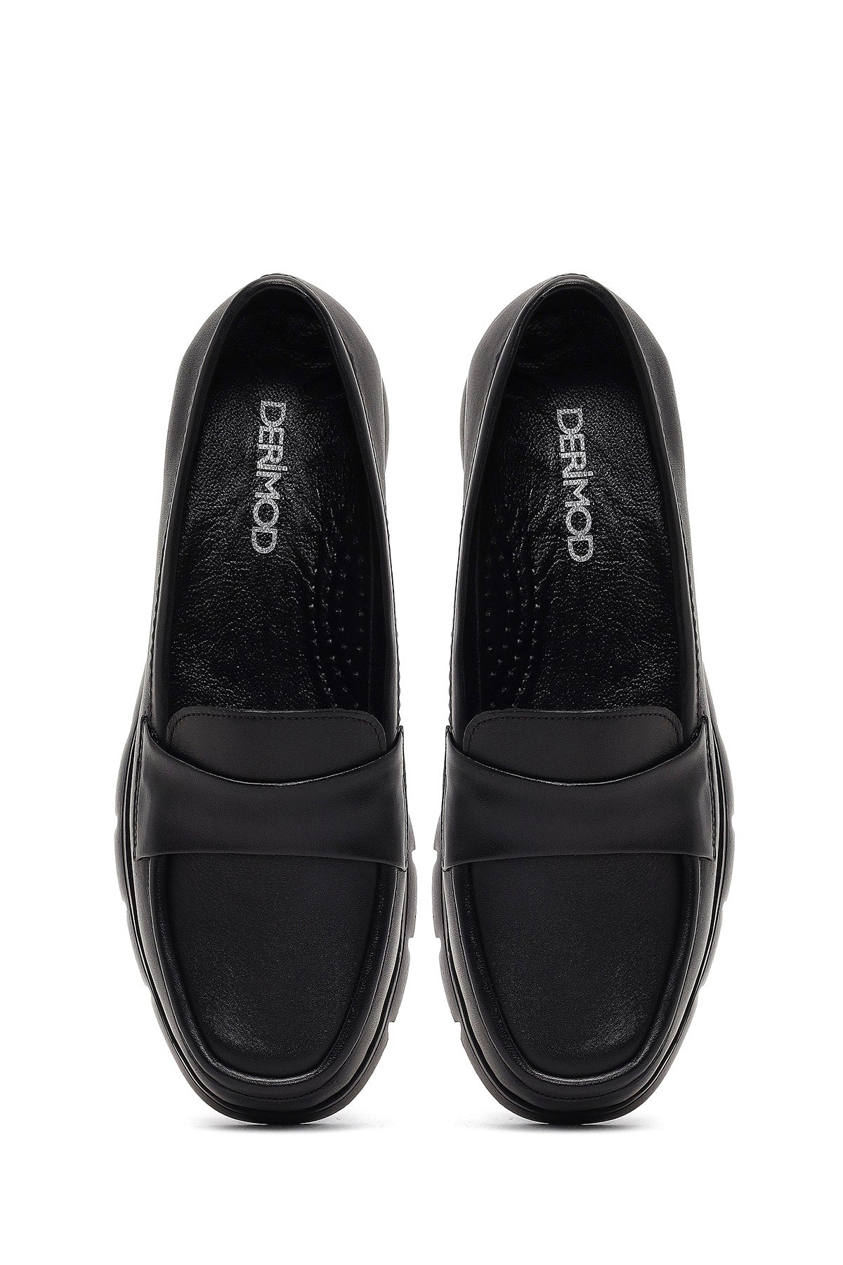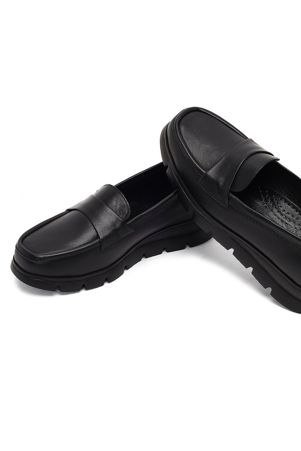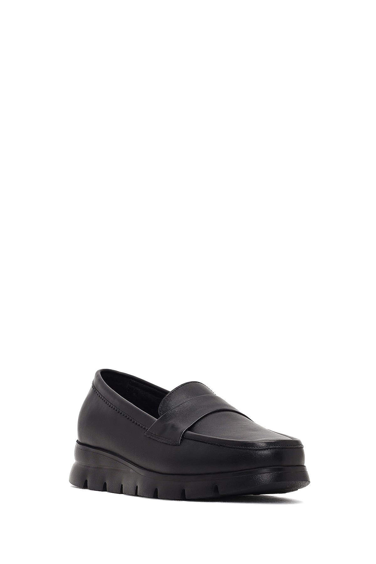 From Derimod's autumn collection, the black loafer model designed using screwed leather offers a design suitable for daily use with its 2 cm high wedge sole. The model, which combines the classic loafer form with modern lines, makes your foot comfortable thanks to its leather inner lining. The loafer, which presents both a stylish and practical look with its thick sole detail, offers a wide range of use from office outfits to daily wear, from casual suits to elegant dresses. It can be used at any time of the day in spring and autumn seasons. Product code: 25AFD154118