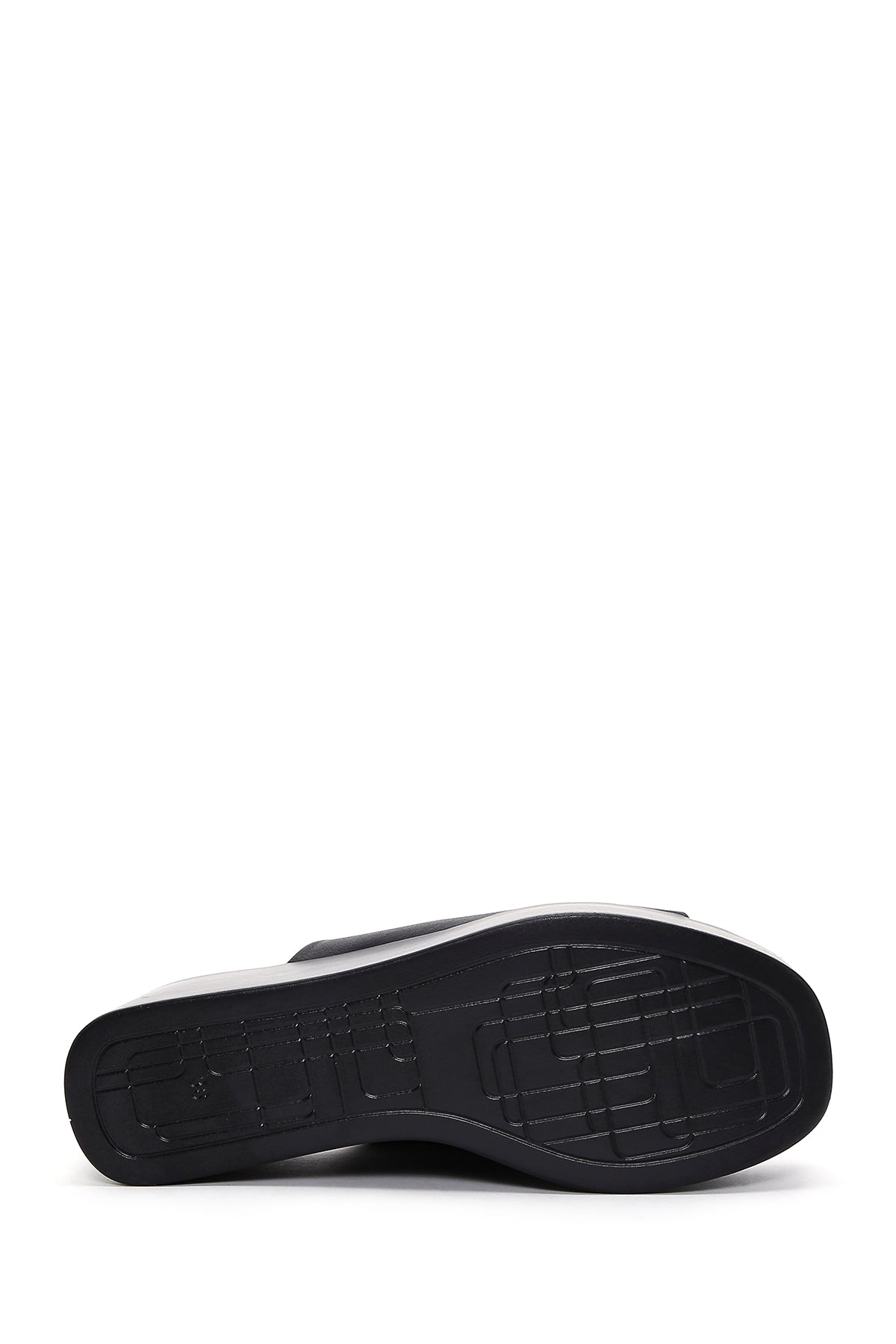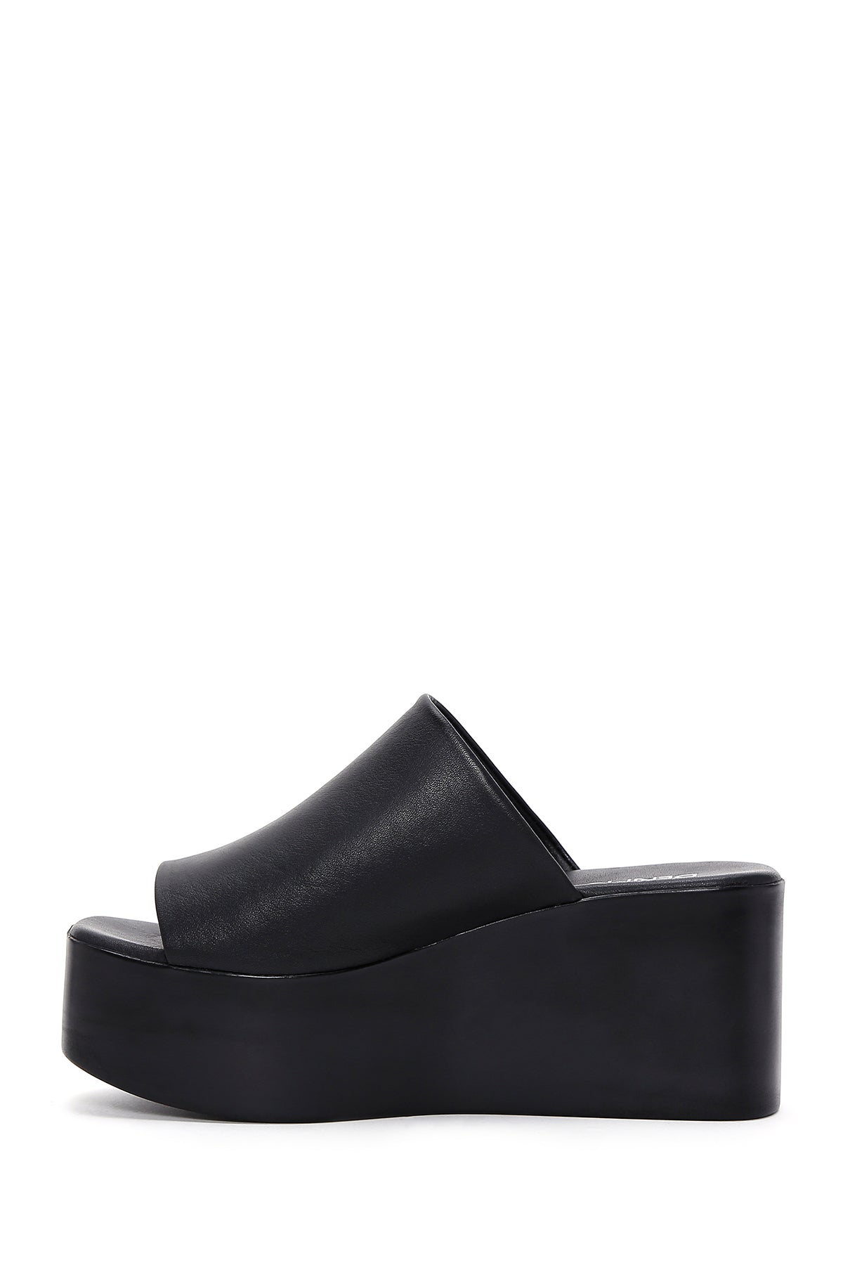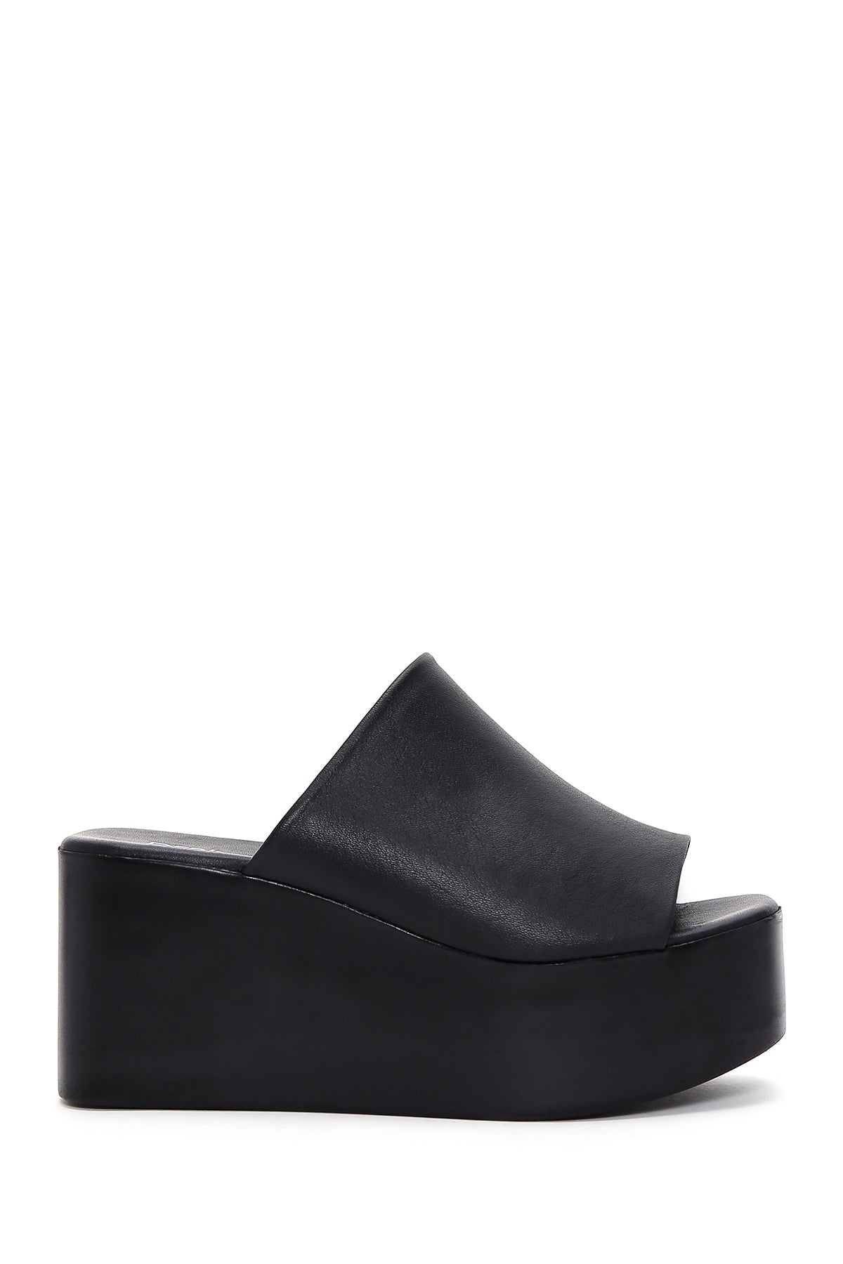 Kadın Siyah Dolgu Topuklu Deri Terlik