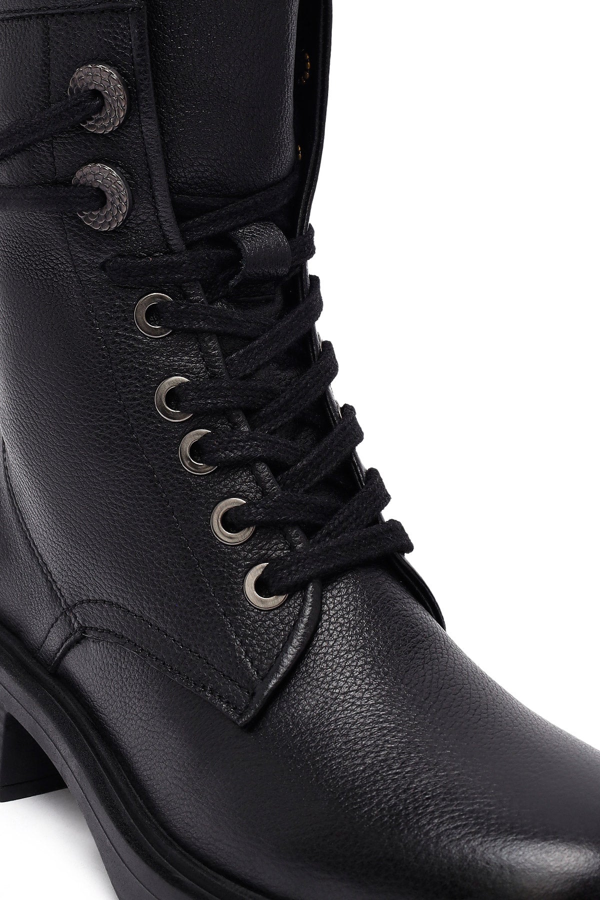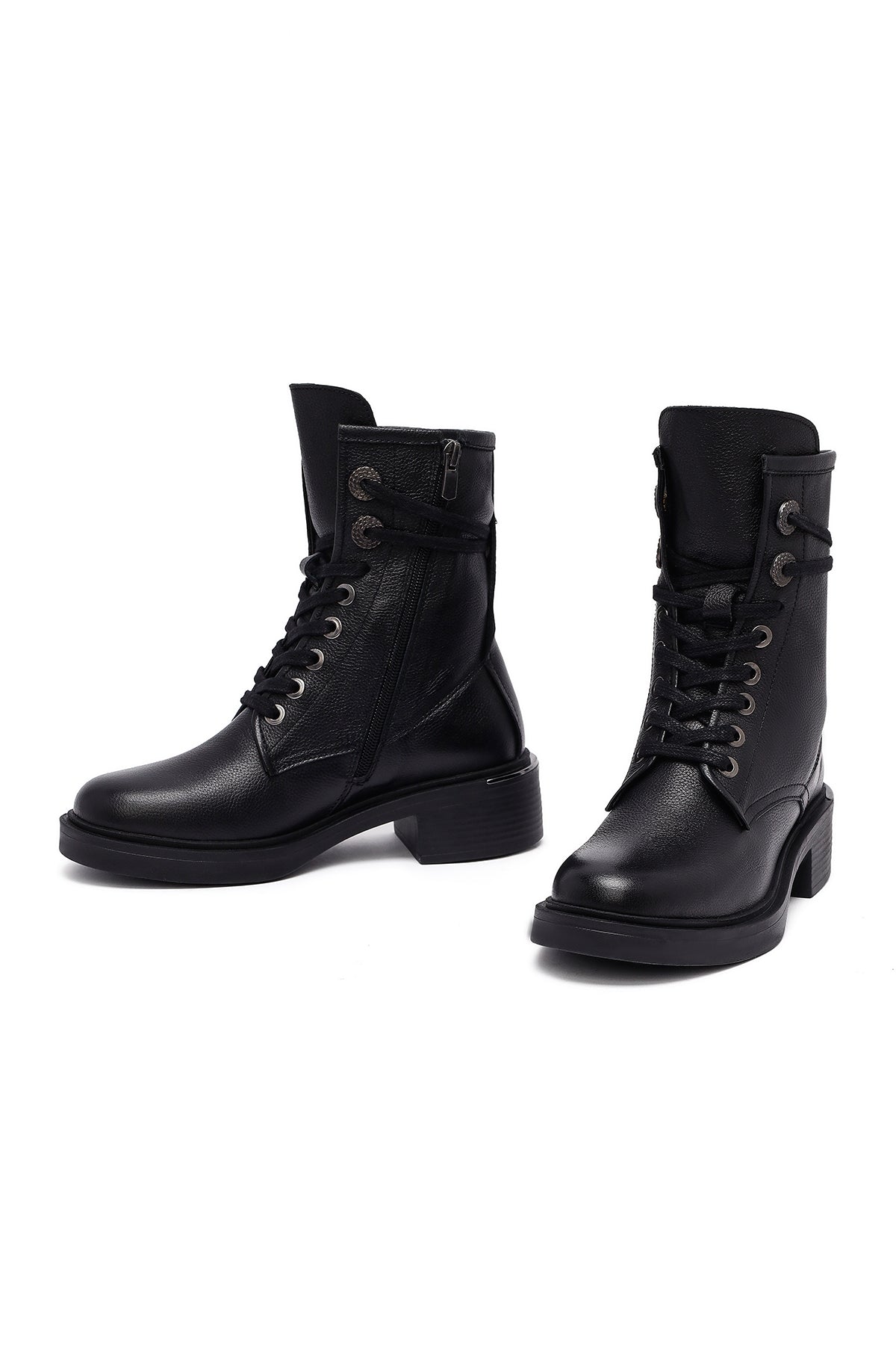 Express your style with the Women's Black Zippered Lace-Up Leather Ankle Boots that combine Derimod's Elegance and Sophistication. Product code: 25WFD2027FT 11